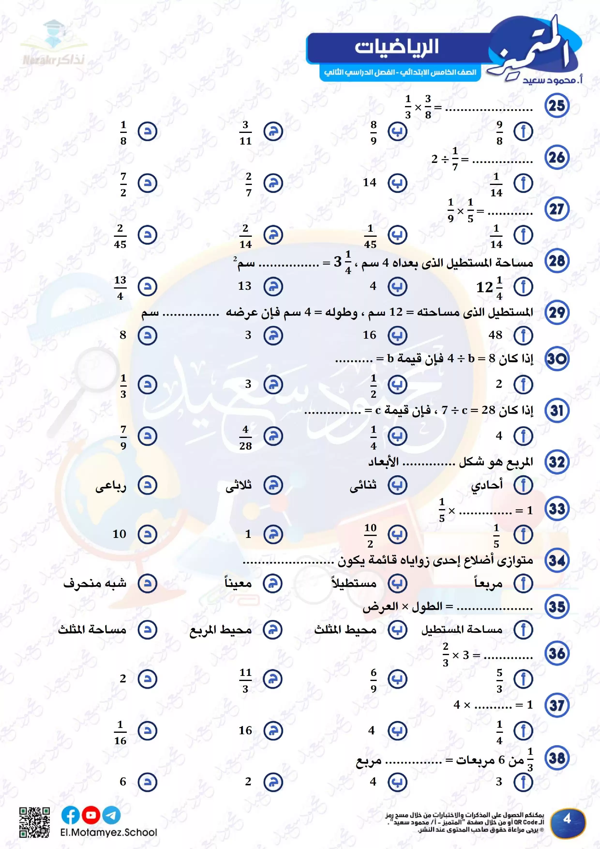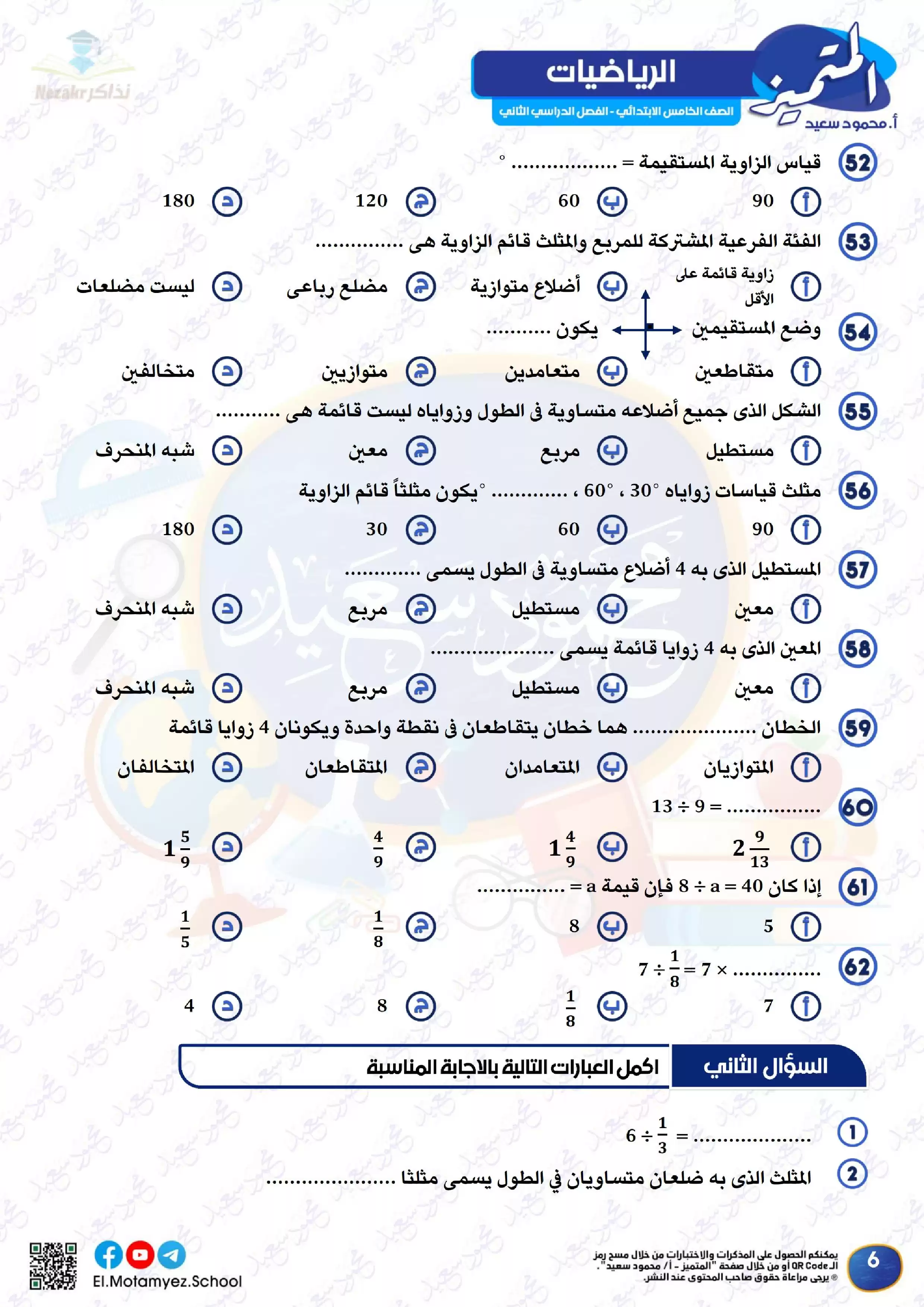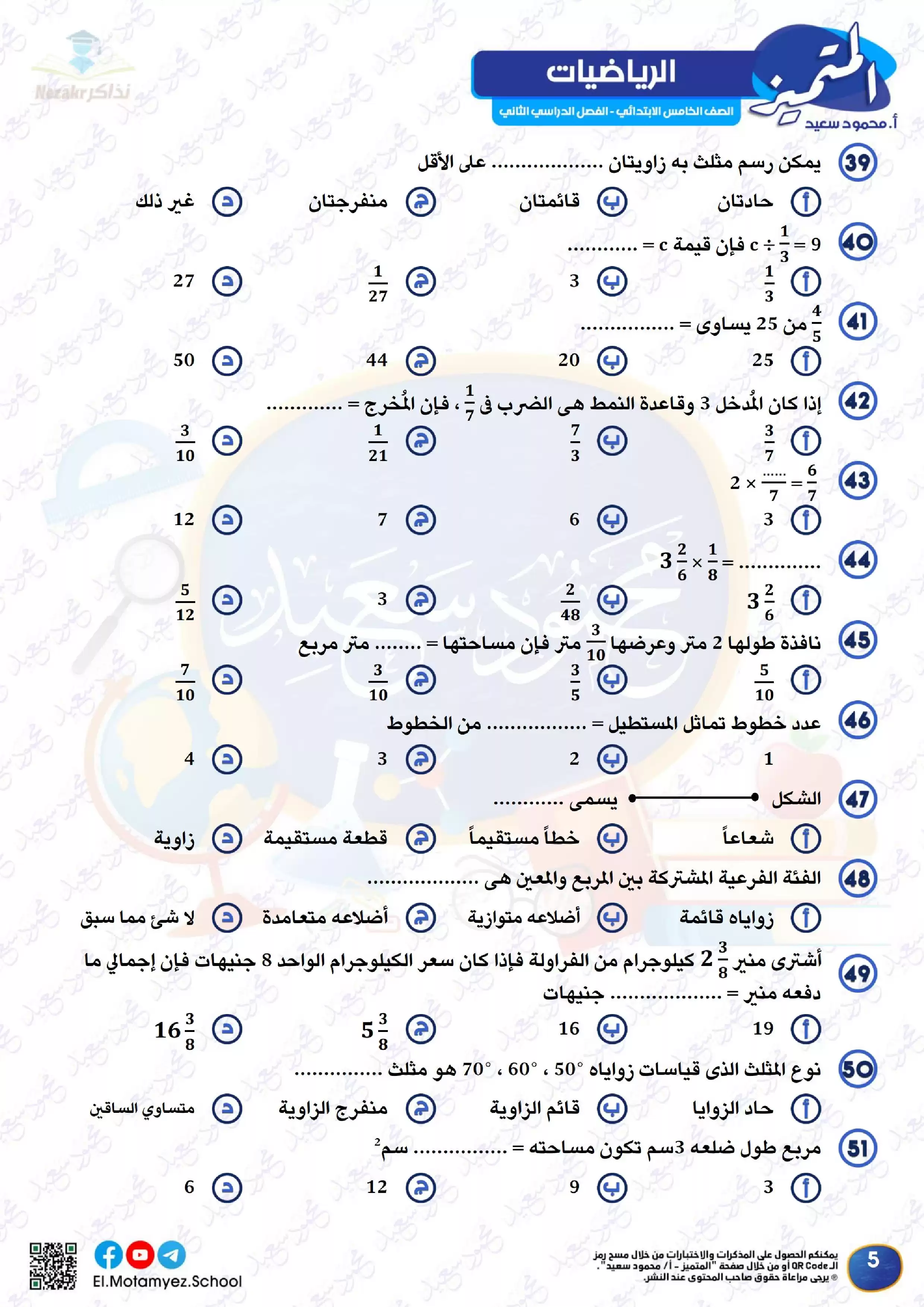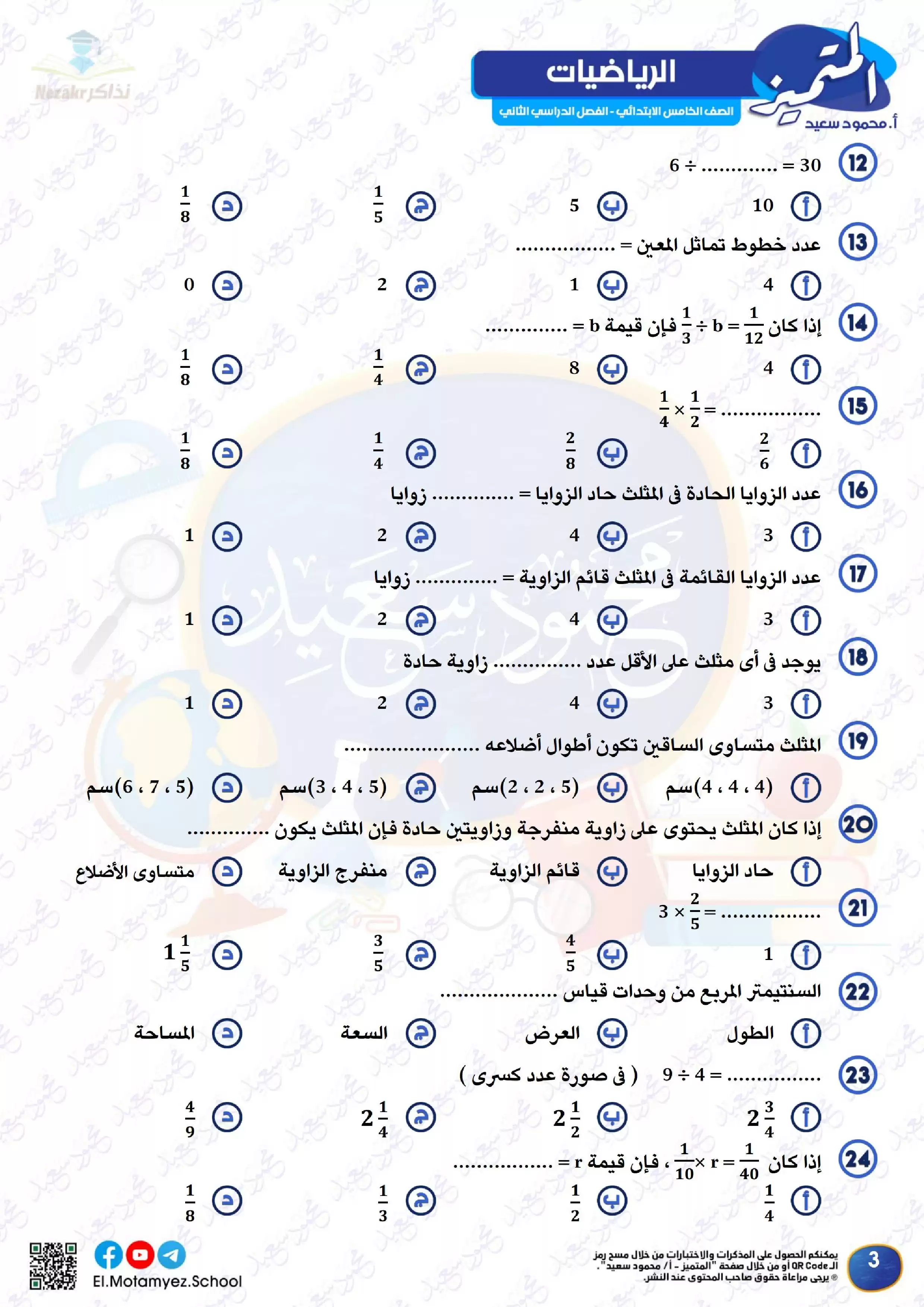 يحتوى الملف المرفق في المقال على ملف مراجعة مادة الرياضيات من كتاب المتميز الخاص بالصف الخامس الابتدائي الفصل الدراسي الثاني لشهر مارس, وذلك لتتمكن من تشغيله على جهاز الموبايل أو من خلال جهاز الكمبيوتر أو عبر اللابتوب أو التابلت لضمان سهولة الوصول الى الكتاب والمذاكرة عليه.