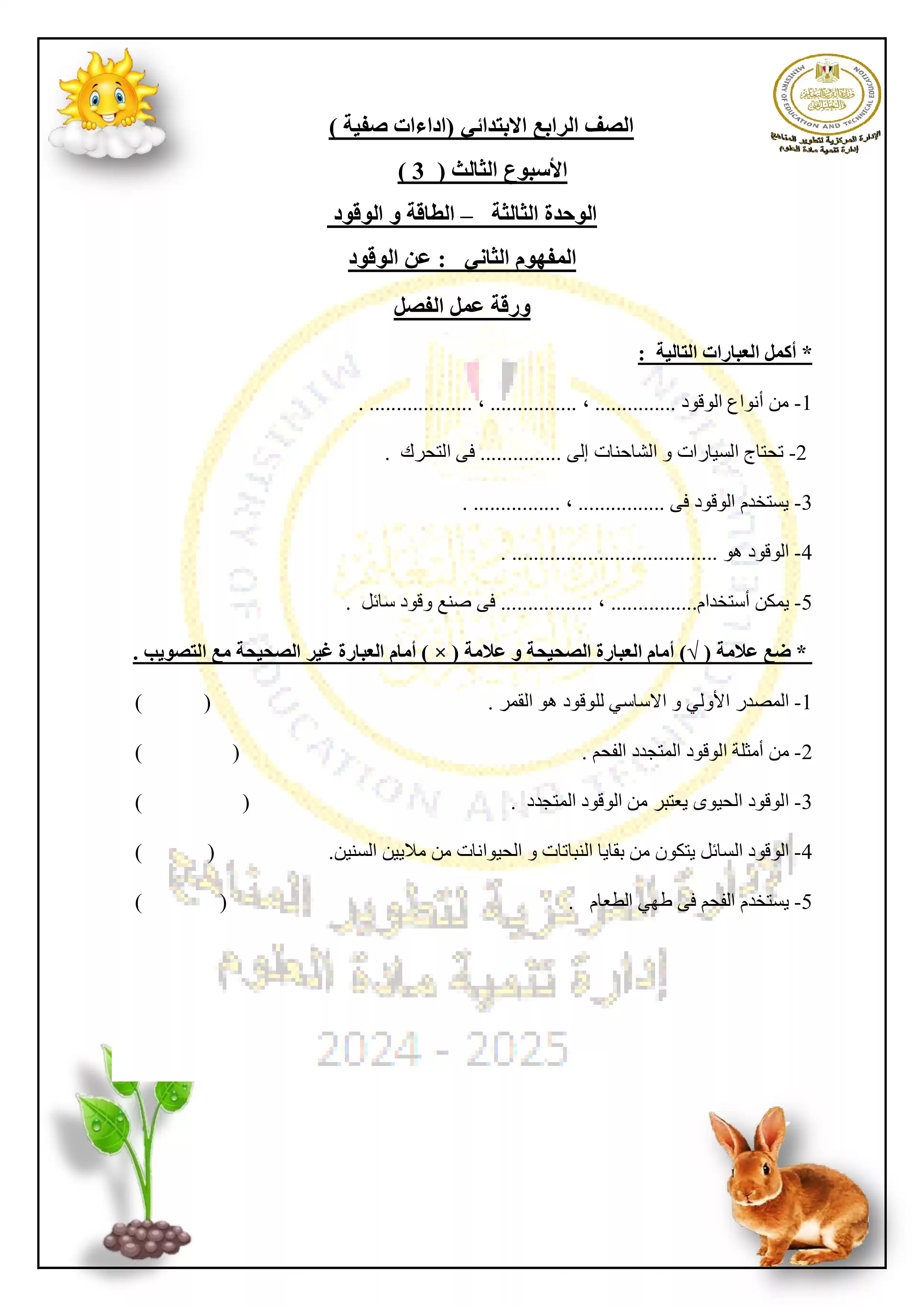 | بيانات الملف: (الآداء الصفي للأسبوع الثالث في العلوم للصف الرابع الإبتدائي الترم الثاني 2025 - Nezakr) | |