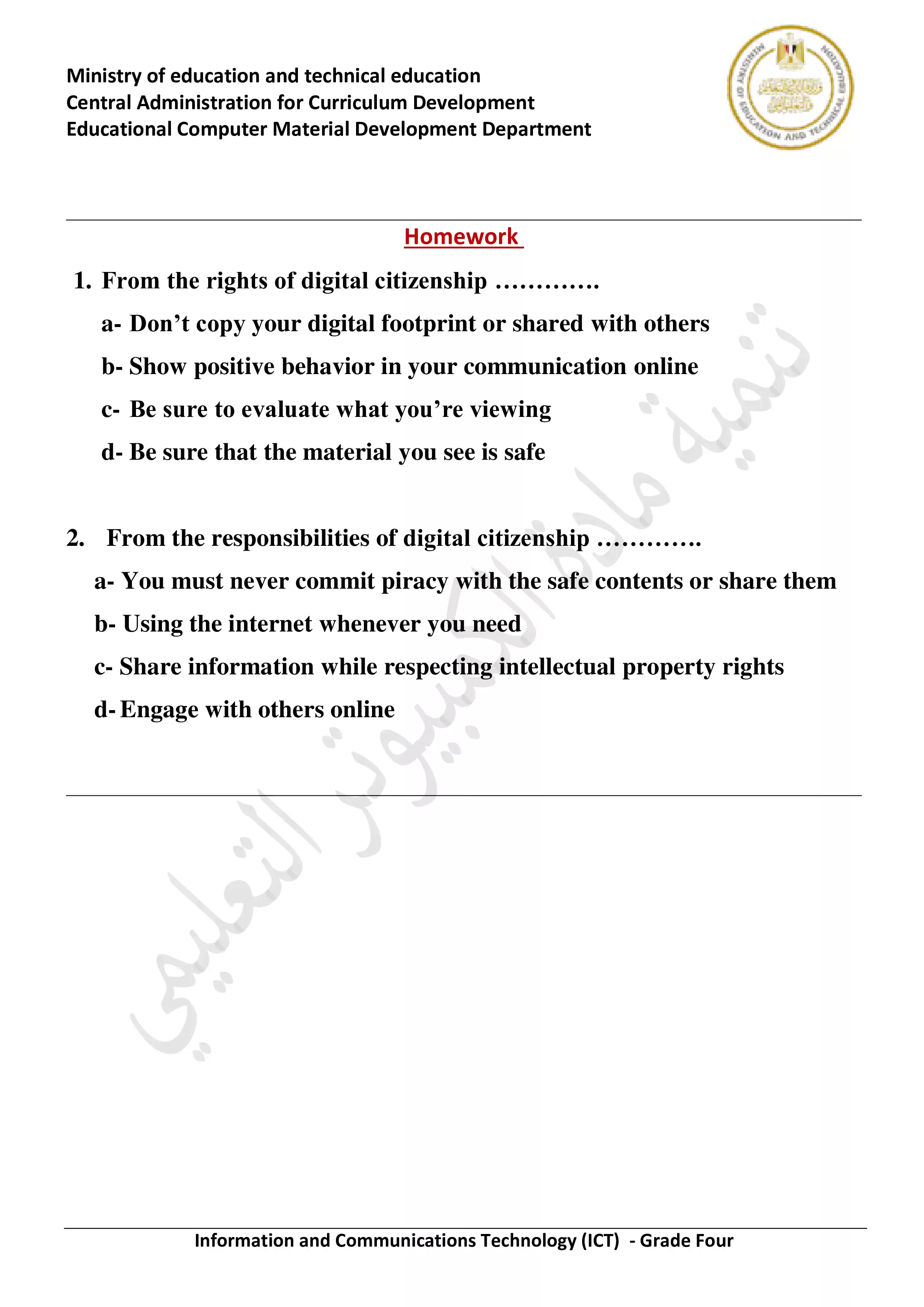 صفحة 3 من 3 صفحة من ملف: الآداء الصفي للأسبوع الثاني في الكمبيوتر وتكنولوجيا المعلومات للغات للصف الرابع الإبتدائي الترم الثاني 2025 - Nezakr