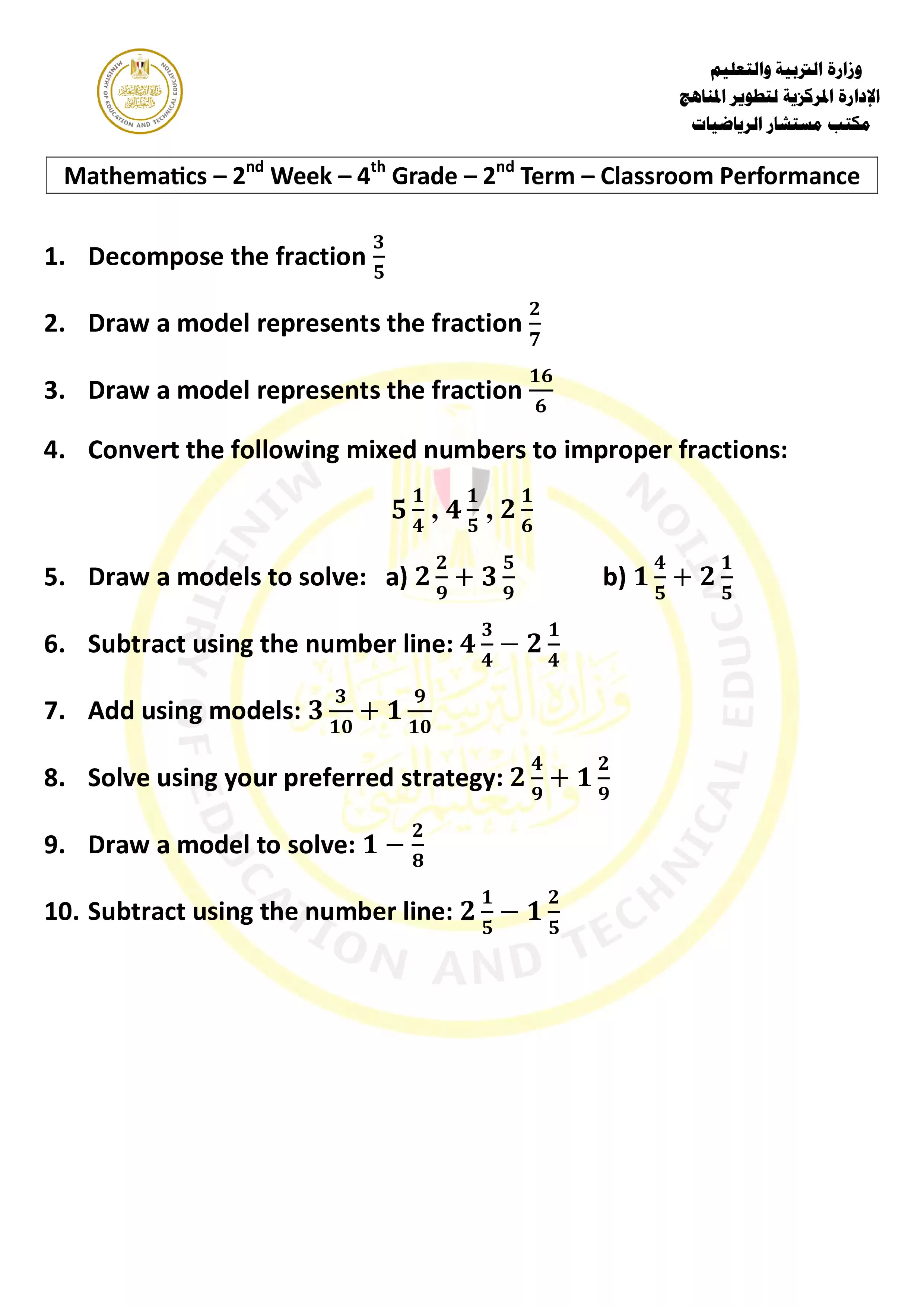 الصف الرابع الإبتدائي > الرياضيات باللغة الإنجليزية (Math) > الآداء الصفي في الأسبوع الثاني مادة الرياضيات للغات Math للصف الرابع الإبتدائي الترم الثاني 2025 بصيغة PDF