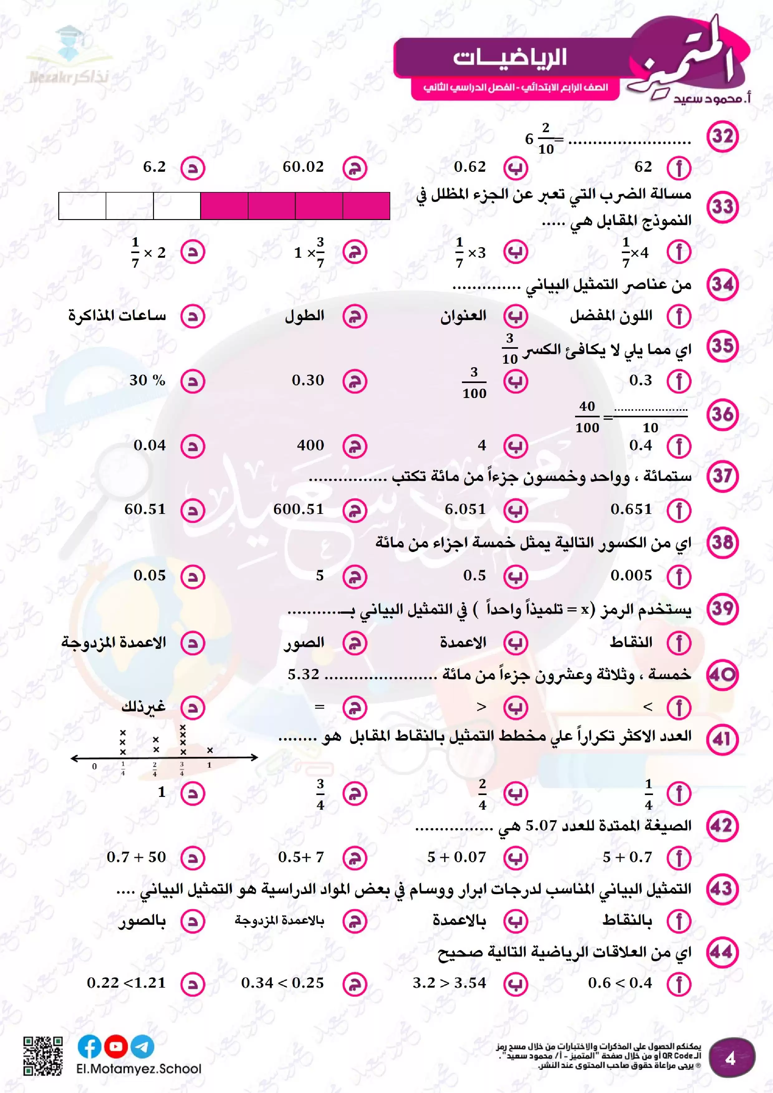 | بيانات الملف: (بنك أسئلة منهج شهر مارس من كتاب المتميز في مادة الرياضيات للصف الرابع الابتدائي) | |