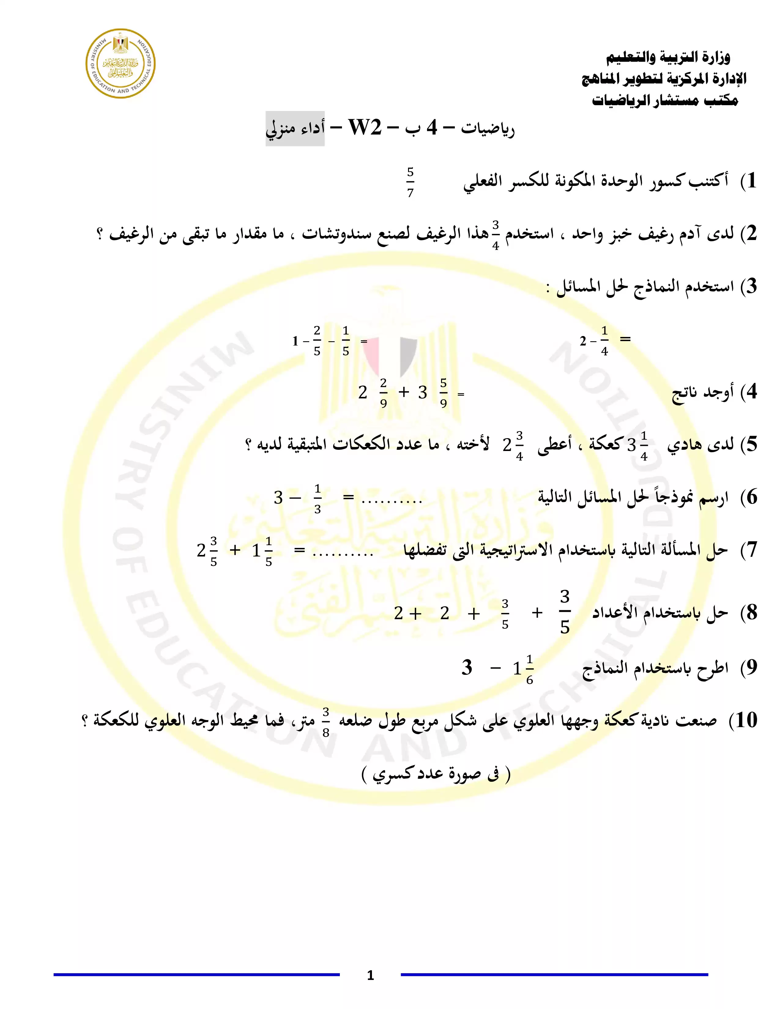 | بيانات الملف: (الواجب والأداء المنزلي للأسبوع الثاني في الرياضيات للصف الرابع الإبتدائي الترم الثاني 2025 - Nezakr) | |