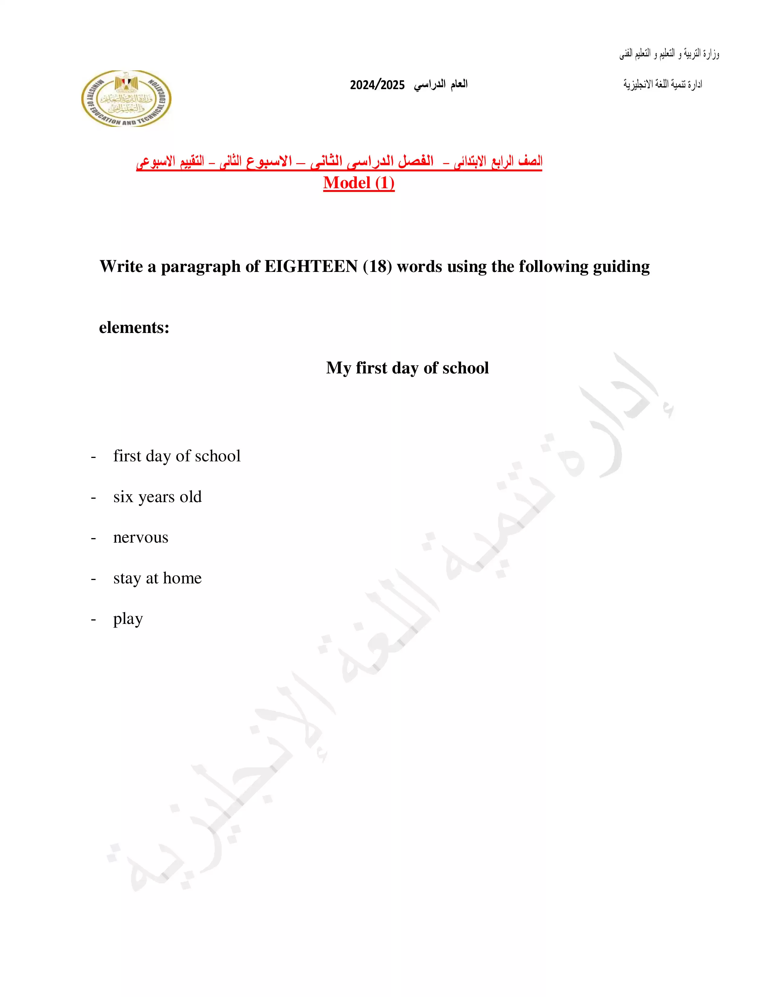 سكرين شوت من الملف: التقييمات الخاصة بالأسبوع الثاني في اللغة الإنجليزية للصف الرابع الإبتدائي الترم الثاني 2025 - Nezakr