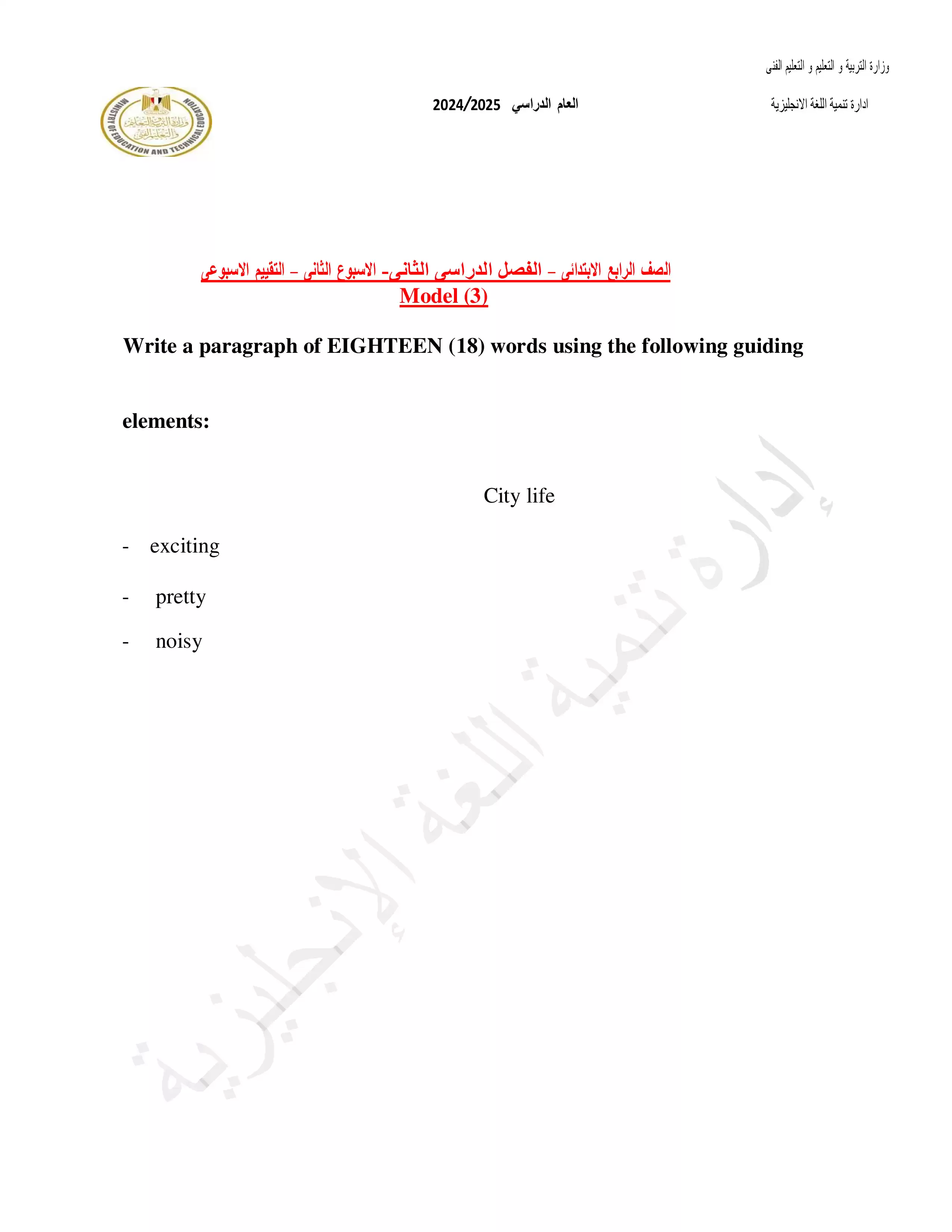 صفحة 3 من 4 صفحة من ملف: التقييمات الخاصة بالأسبوع الثاني في اللغة الإنجليزية للصف الرابع الإبتدائي الترم الثاني 2025 - Nezakr