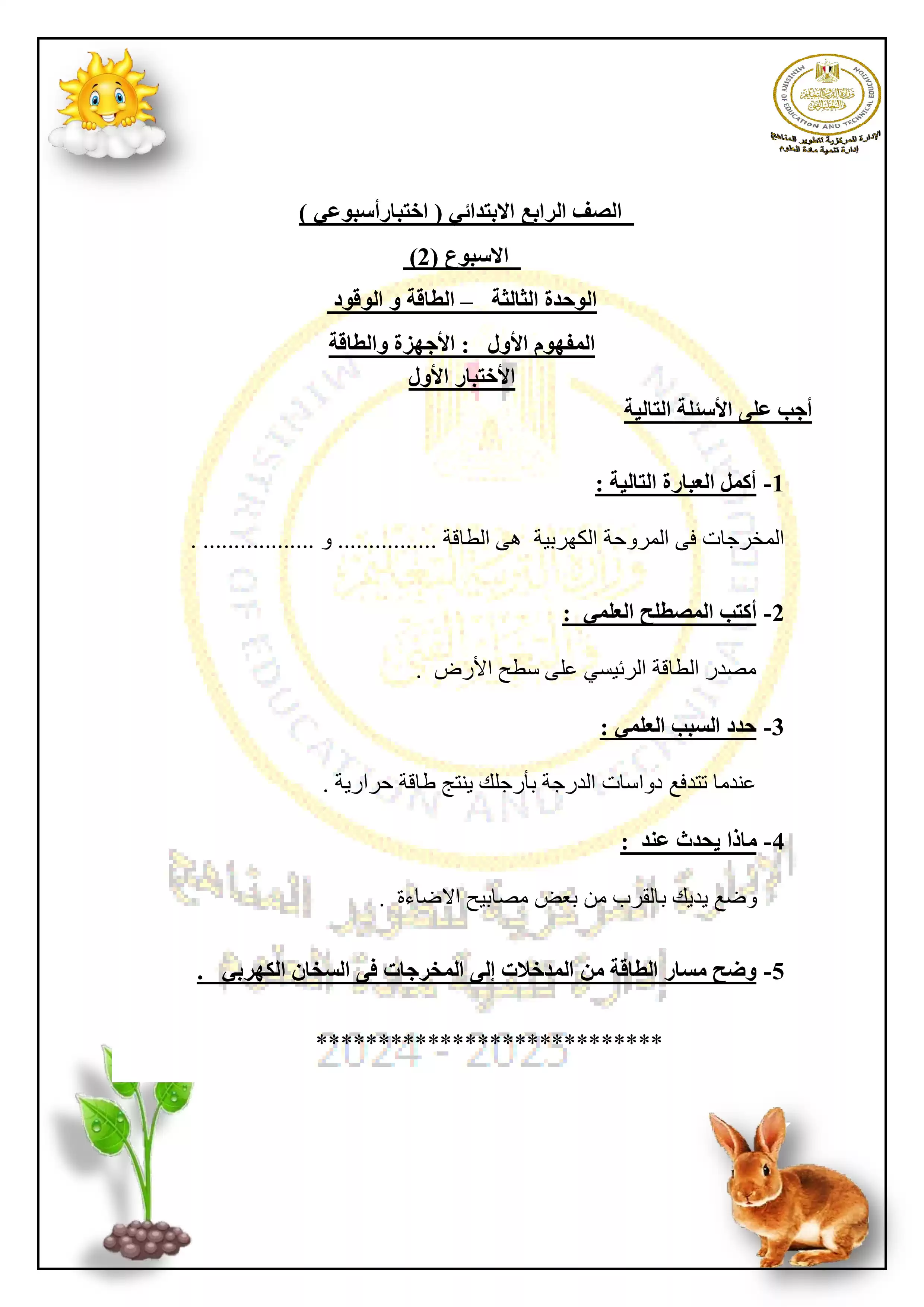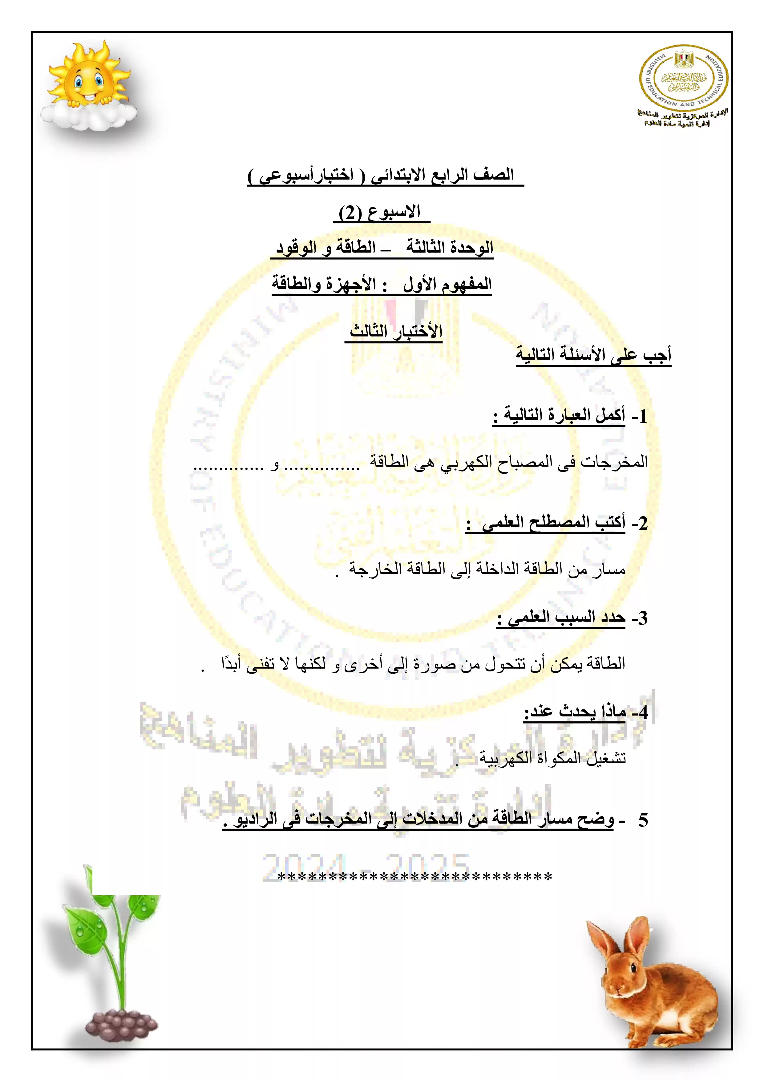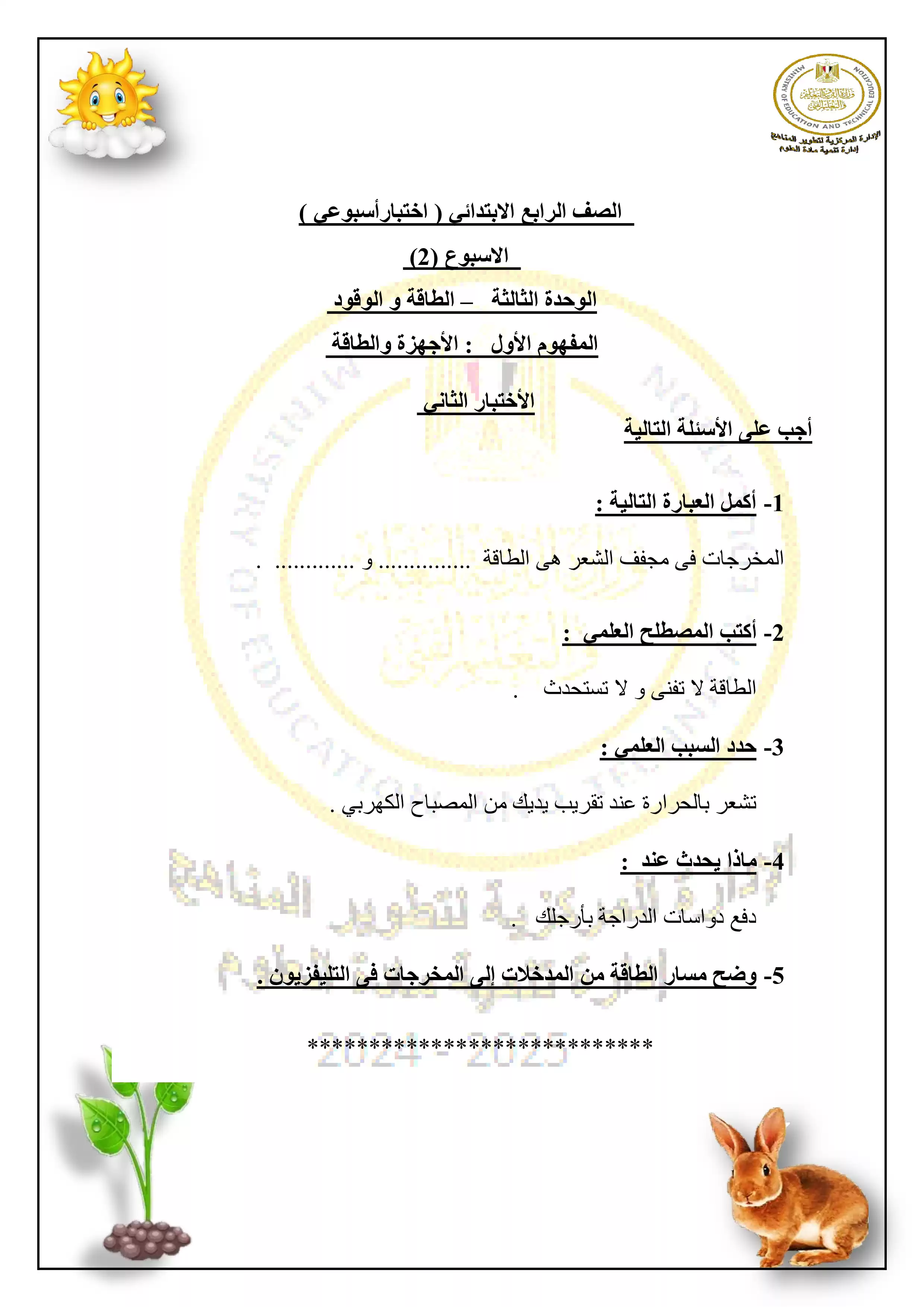 الصف الرابع الإبتدائي > العلوم > تقييمات الأسبوع الثاني في مادة العلوم للصف الرابع الإبتدائي الترم الثاني 2025 بصيغة PDF