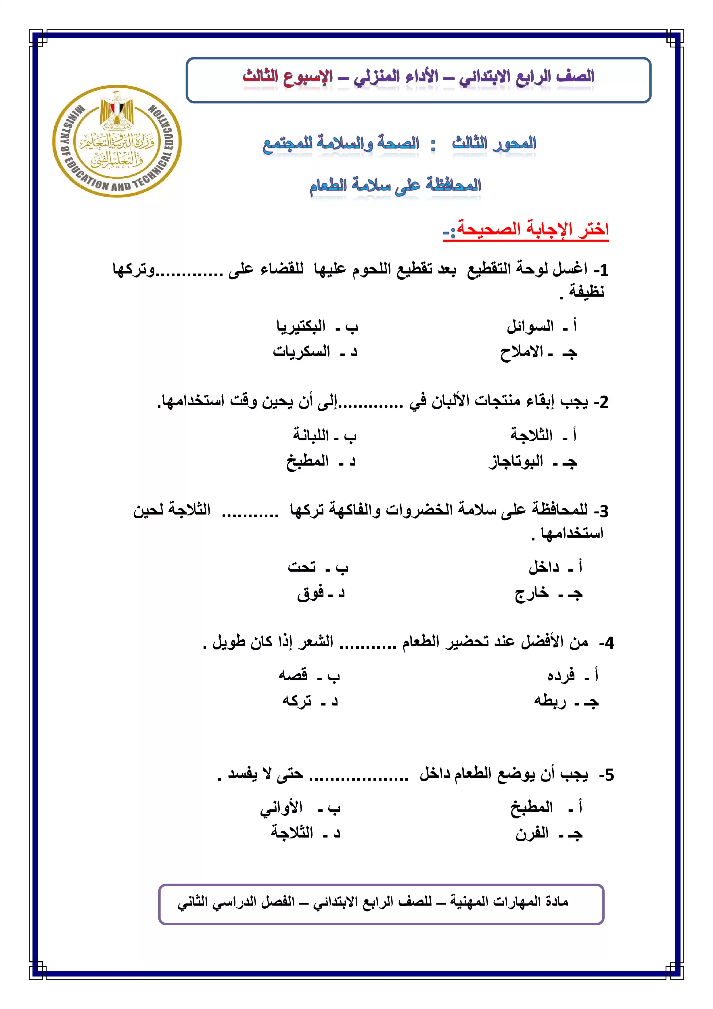 يحتوي الملف المرفق على الواجب المنزلي الخاص بالأسبوع الثالث في مادة المهارات المهنية للصف الرابع الابتدائي الترم الثاني 2025، وهو بصيغة PDF وبجودة عالية متاح للتحميل والتصفح مجاناً من موقع نذاكر.