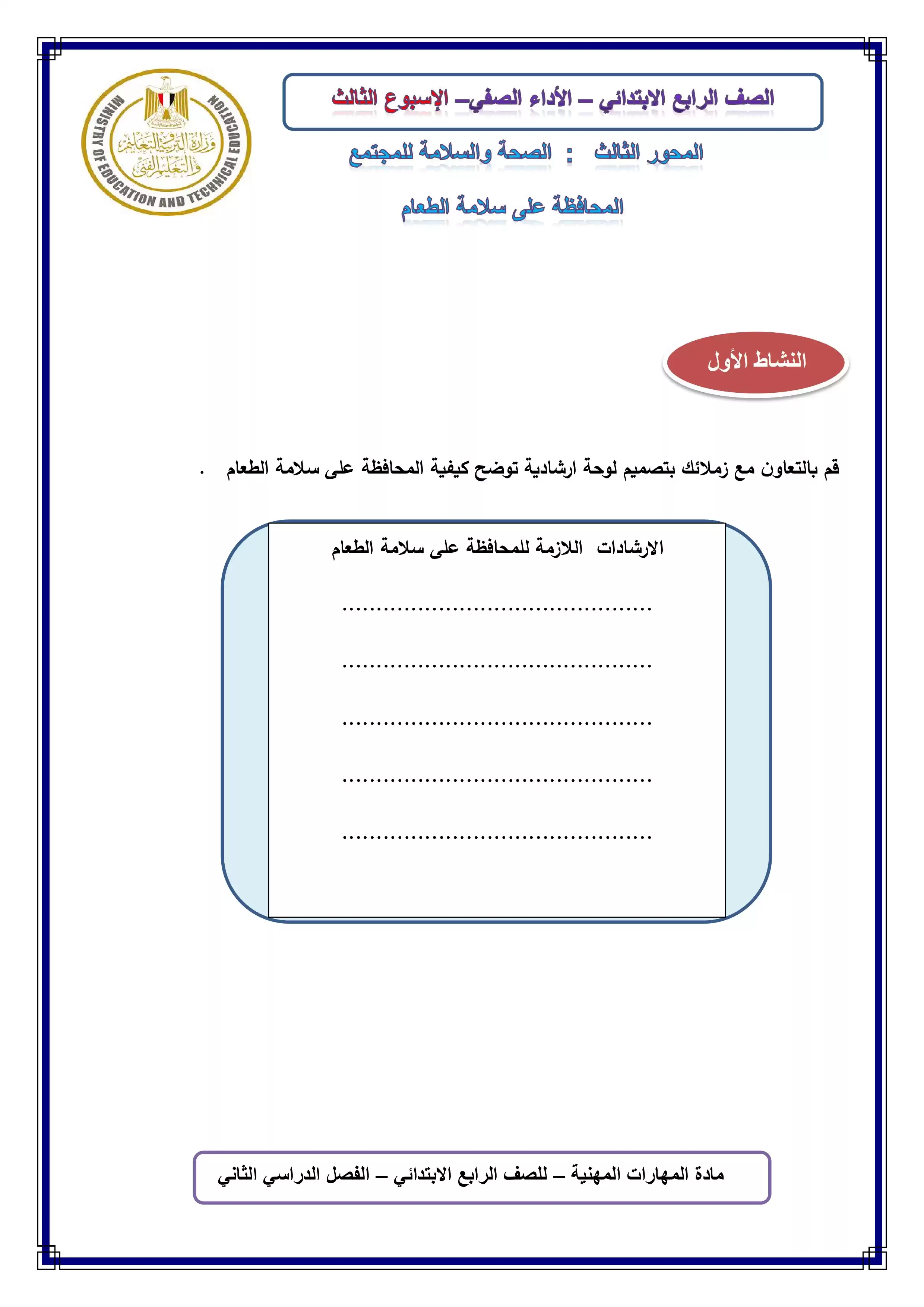 الصف الرابع الإبتدائي > المهارات المهنية > الآداء الصفي في الأسبوع الثالث مادة المهارات المهنية للصف الرابع الإبتدائي الترم الثاني 2025 بصيغة PDF