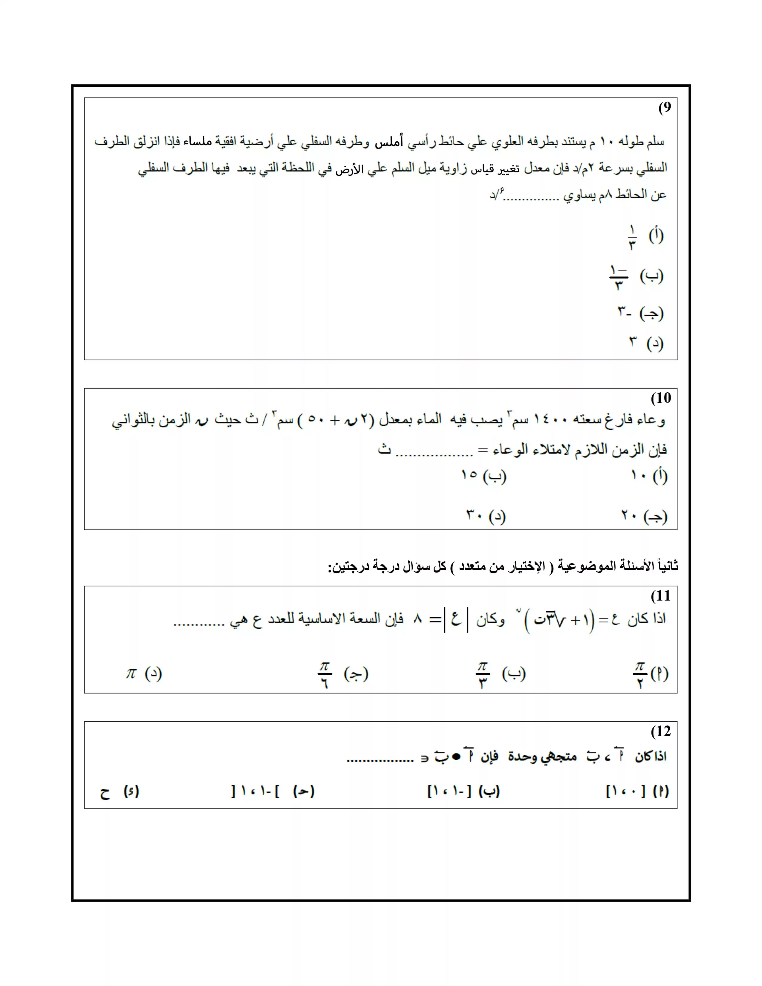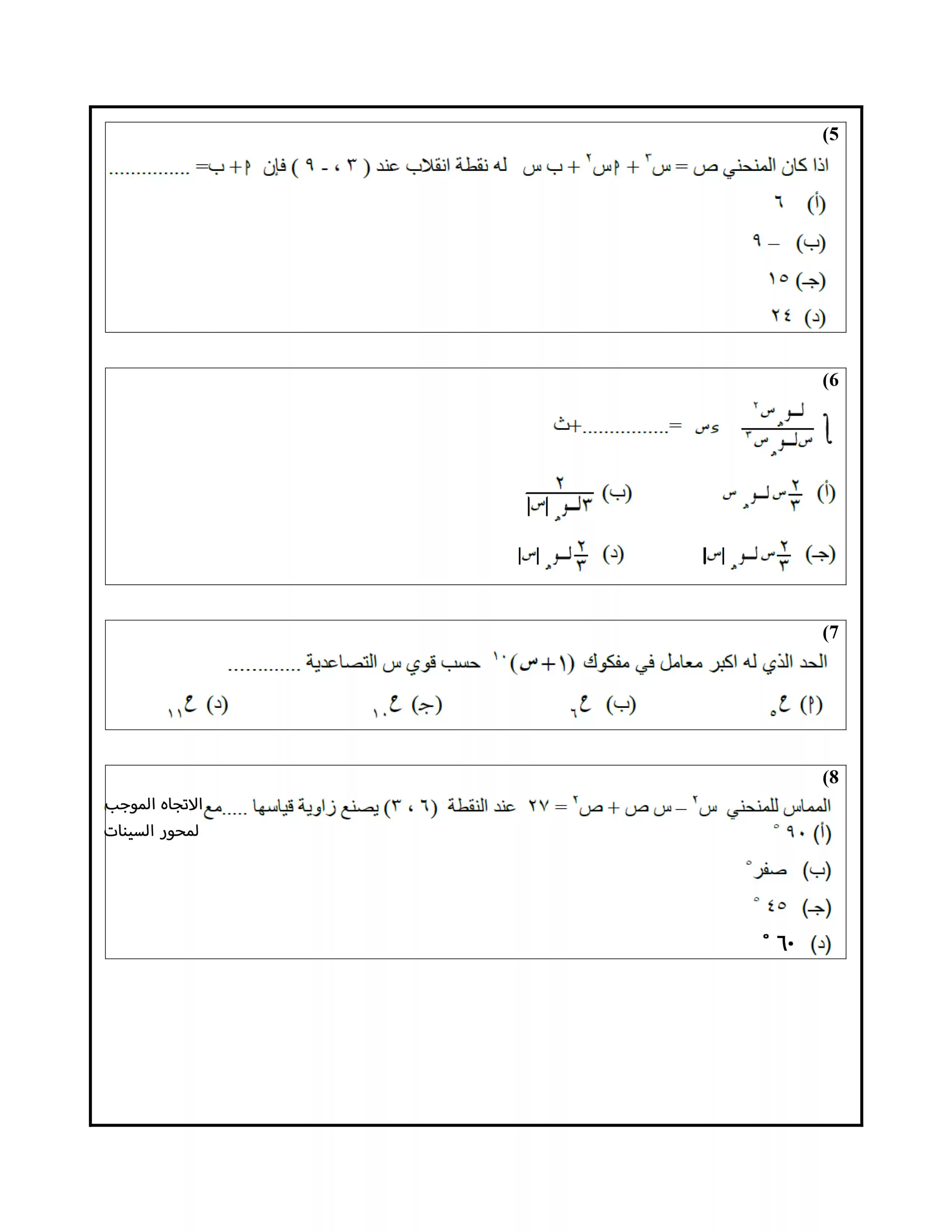 • امتحان رياضيات بحتة تجريبي للثانوية العامة 2025