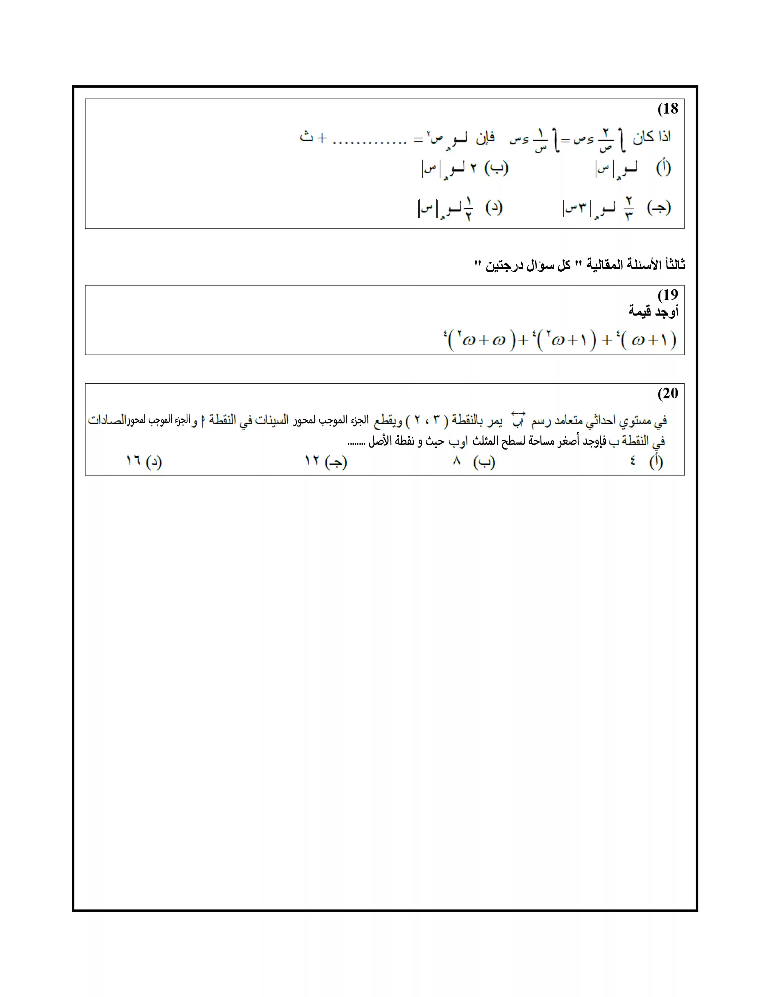 الصف الثالث الثانوي > الرياضيات البحتة > نموذج الامتحان الاسترشادي الثاني في الرياضيات البحتة للصف الثالث الثانوي 2025 بصيغة PDF (امتحان الرياضيات البحتة التجريبي الرسمي)