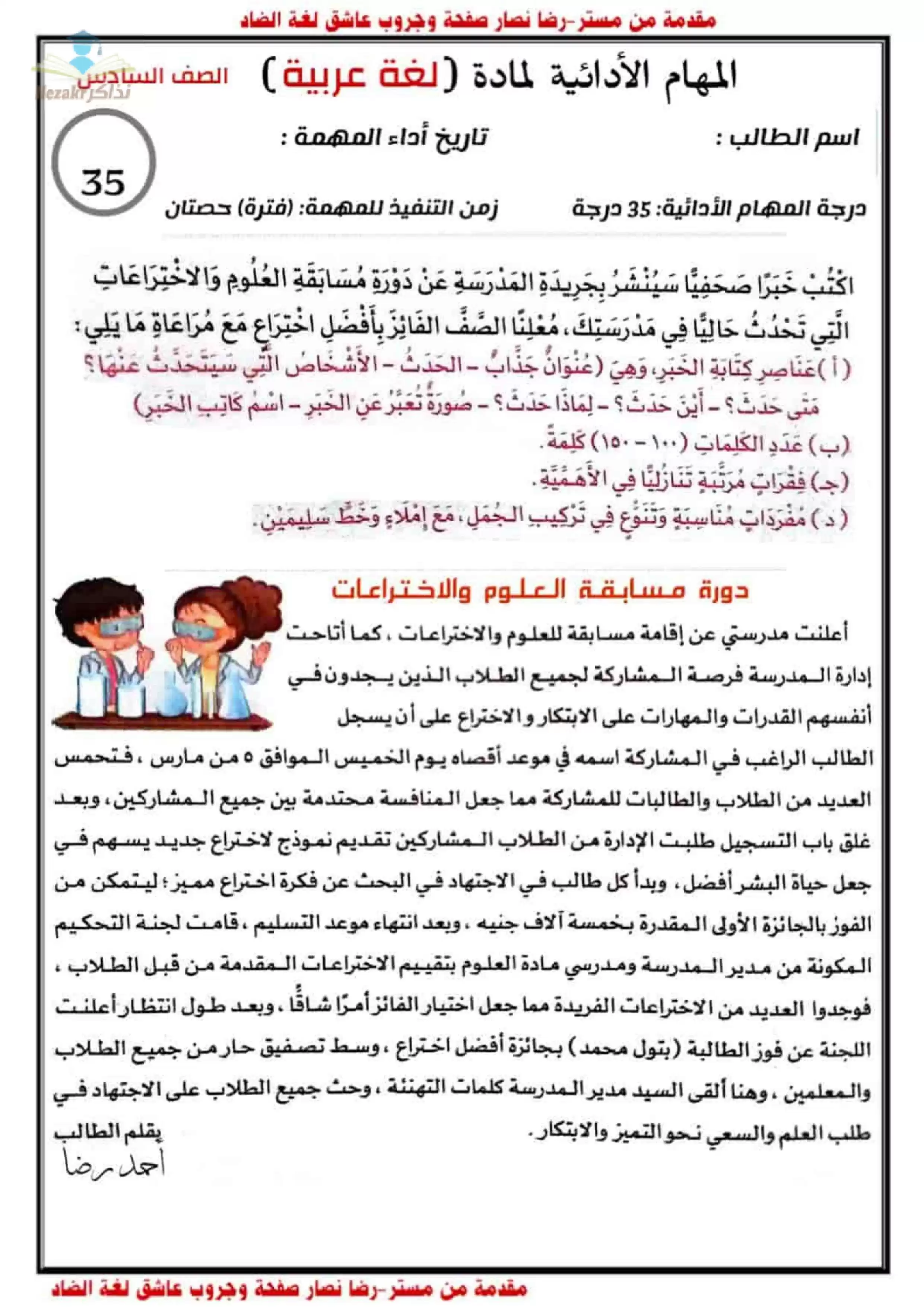 نقدم لكم المزيد من المحتوى من إعداد المتميز ومقدم إلى الصف السادس الإبتدائي للإطلاع عليه أو تحميله.