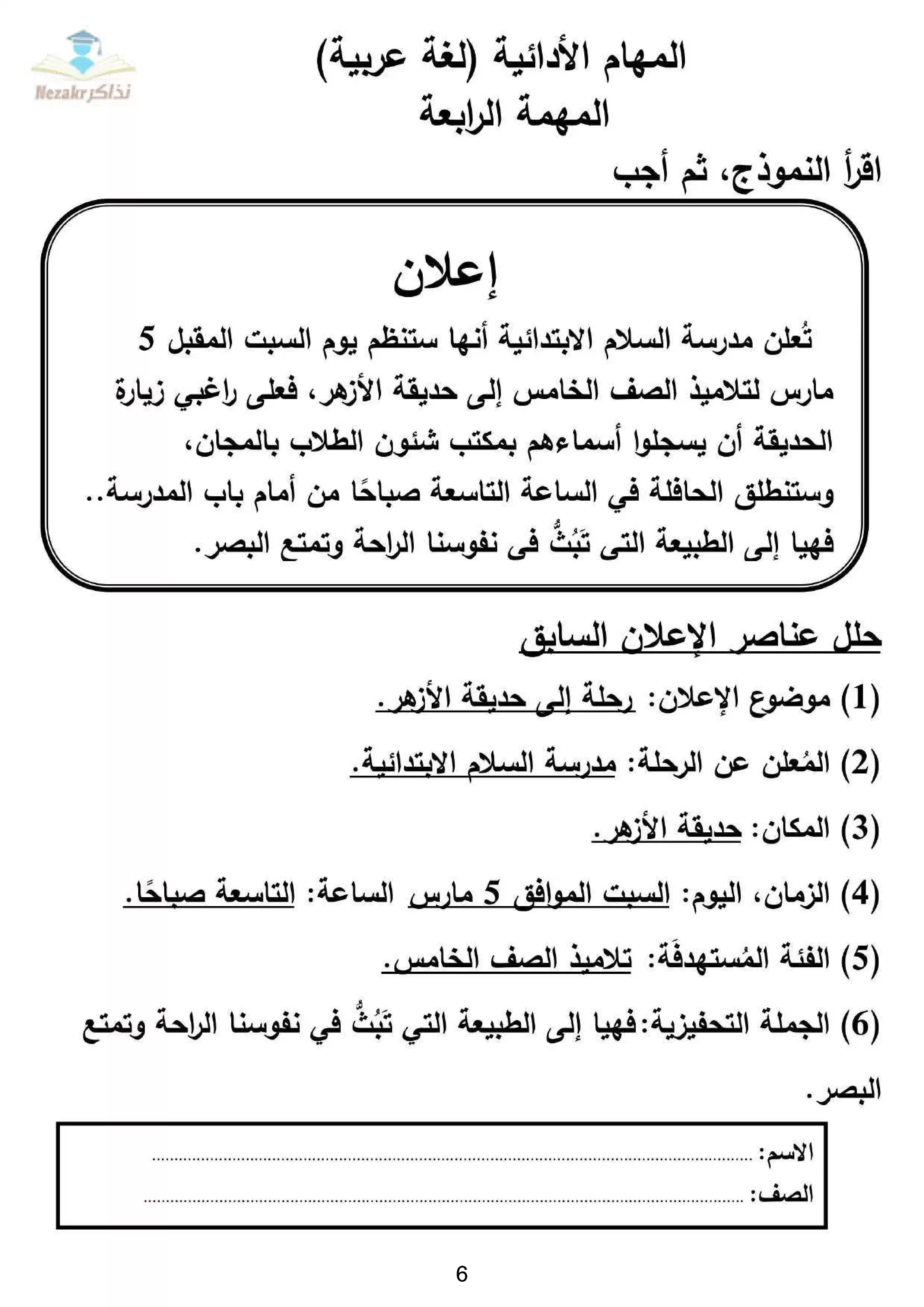 يُرجي العلم أن المهام الادائية للصف الخامس الابتدائي تختلف من محافظة لأخرى ومن إدارة تعليمية لأخرى، وأنه لا توجد مهام آدائية للصف الخامس الإبتدائي موحدة صدرت لجميع المحافظات، وبناءًا عليه فإن ملفات المهام الآدائية المنشورة من المتميز في جميع المواد عبارة عن مزيج من: