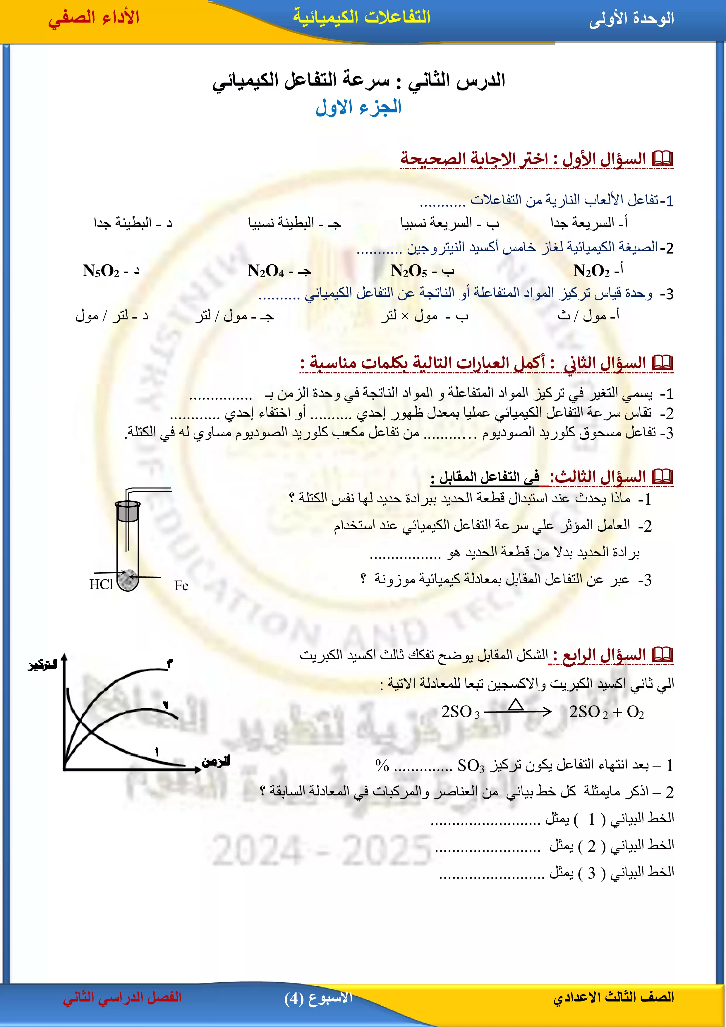 الصف الثالث الإعدادي > العلوم > الآداء الصفي في الأسبوع الرابع مادة العلوم للصف الثالث الإعدادي الترم الثاني 2025 بصيغة PDF