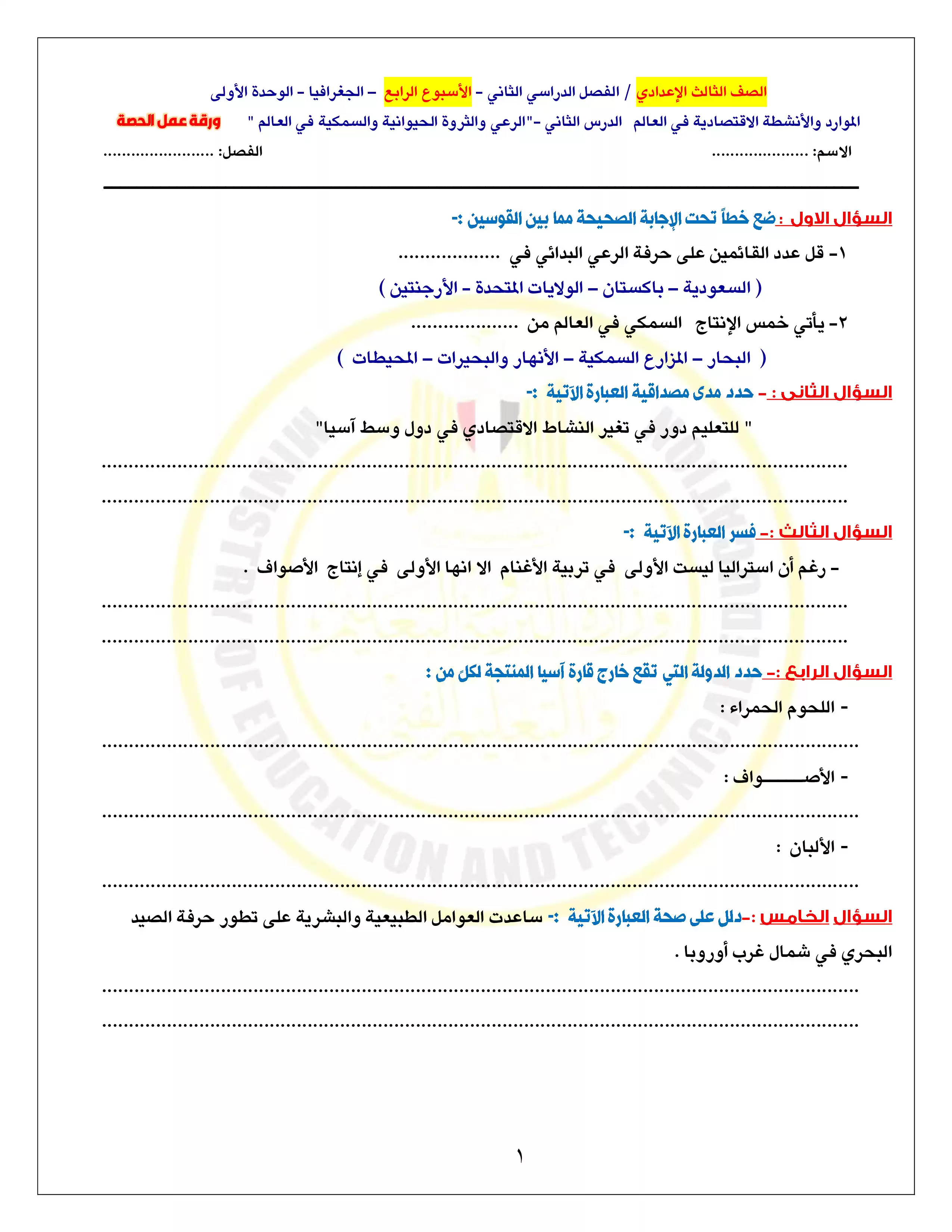 صفحة 2 من 4 صفحة من ملف: الآداءات الصفية للأسبوع الرابع في الدراسات الاجتماعية للصف الثالث الإعدادي الترم الثاني 2025 - Nezakr