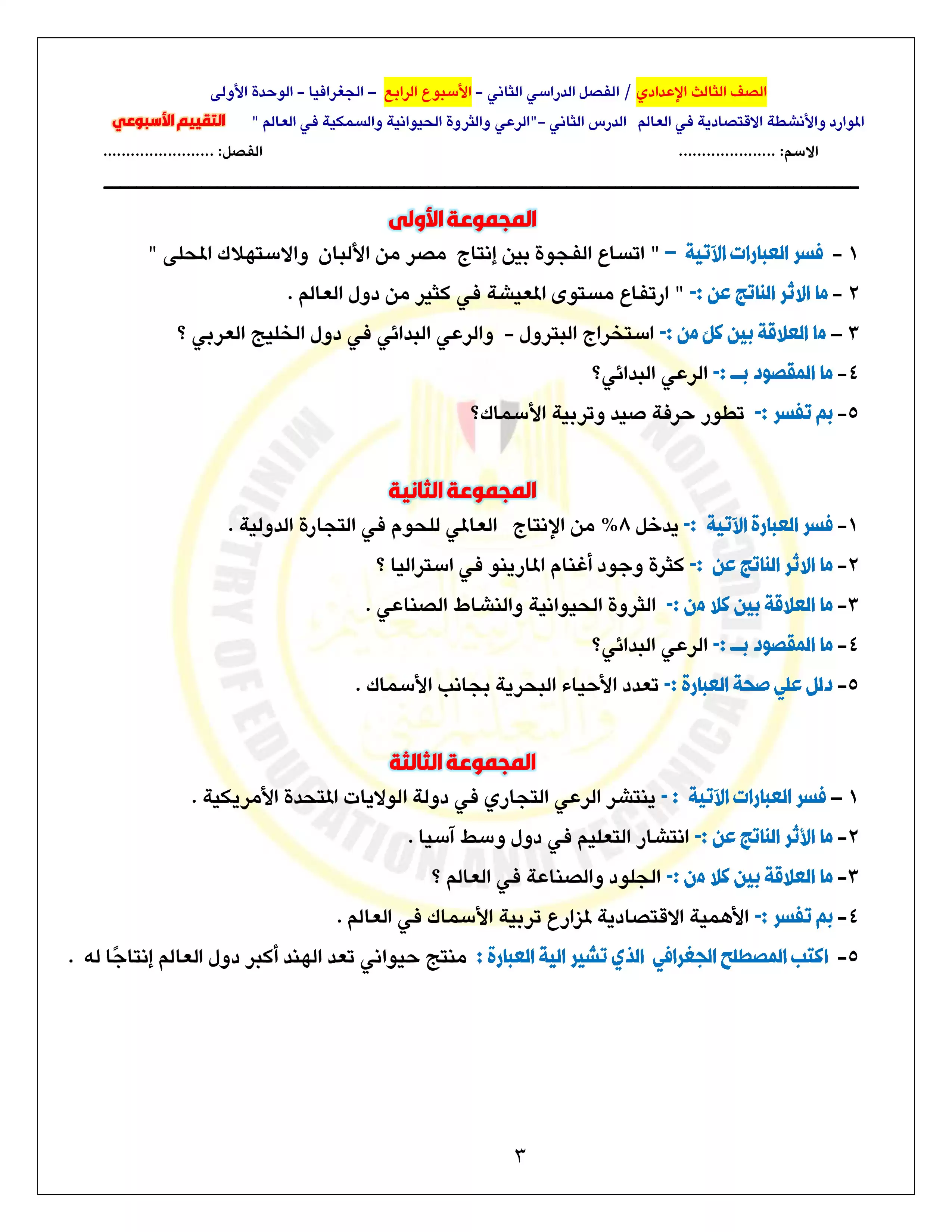 صفحة 3 من 4 صفحة من ملف: الآداءات الصفية للأسبوع الرابع في الدراسات الاجتماعية للصف الثالث الإعدادي الترم الثاني 2025 - Nezakr