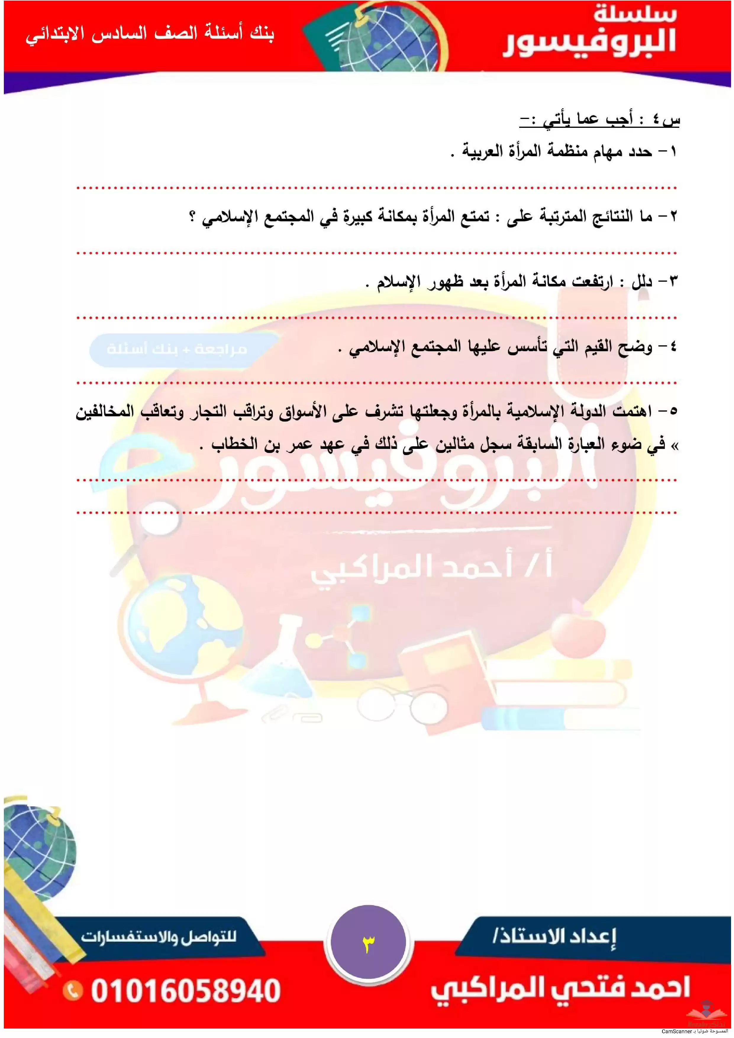 صفحة 3 من 6 صفحة من ملف: بنك اسئلة درس الحياة الاجتماعية في عصر الدولة الاسلامية مادة الدراسات الاجتماعية لساتة ابتدائي - Nezakr