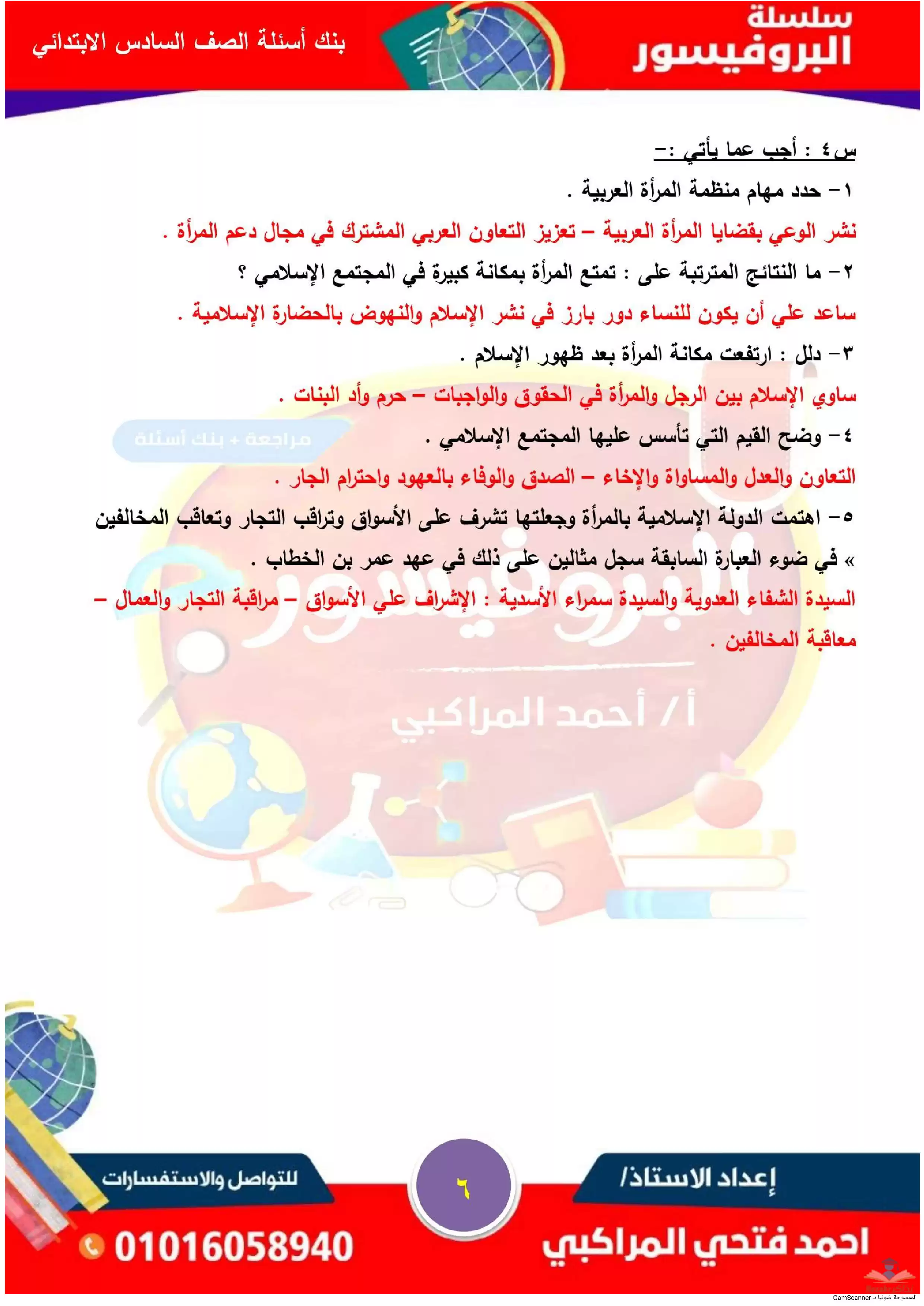 صفحة 6 من 6 صفحة من ملف: بنك اسئلة درس الحياة الاجتماعية في عصر الدولة الاسلامية مادة الدراسات الاجتماعية لساتة ابتدائي - Nezakr