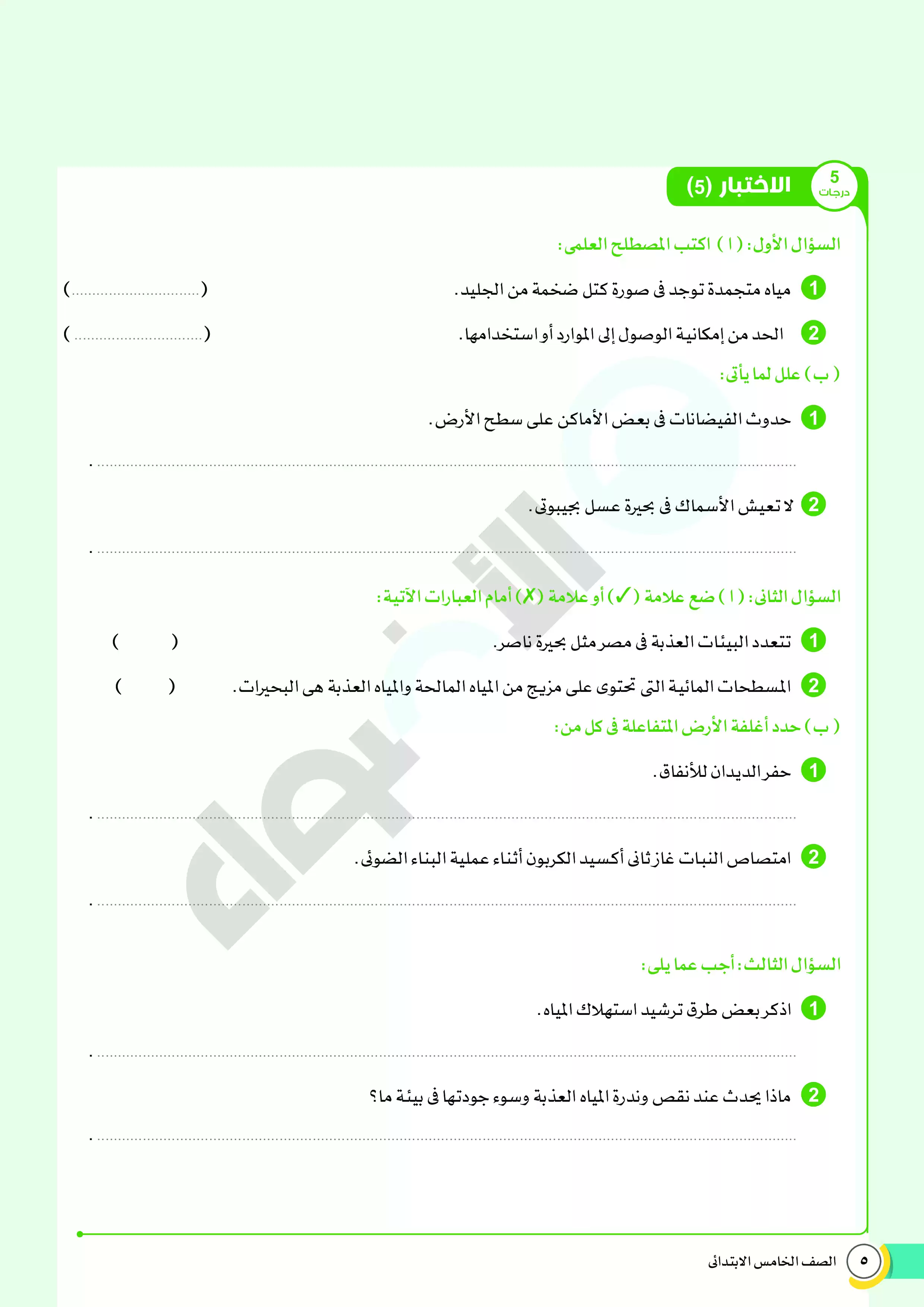 | بيانات الملف: (امتحانات الأضواء الاسترشادية في العلوم للصف الخامس الابتدائي مقرر فبراير 2025 بالاجابات - Nezakr) | |