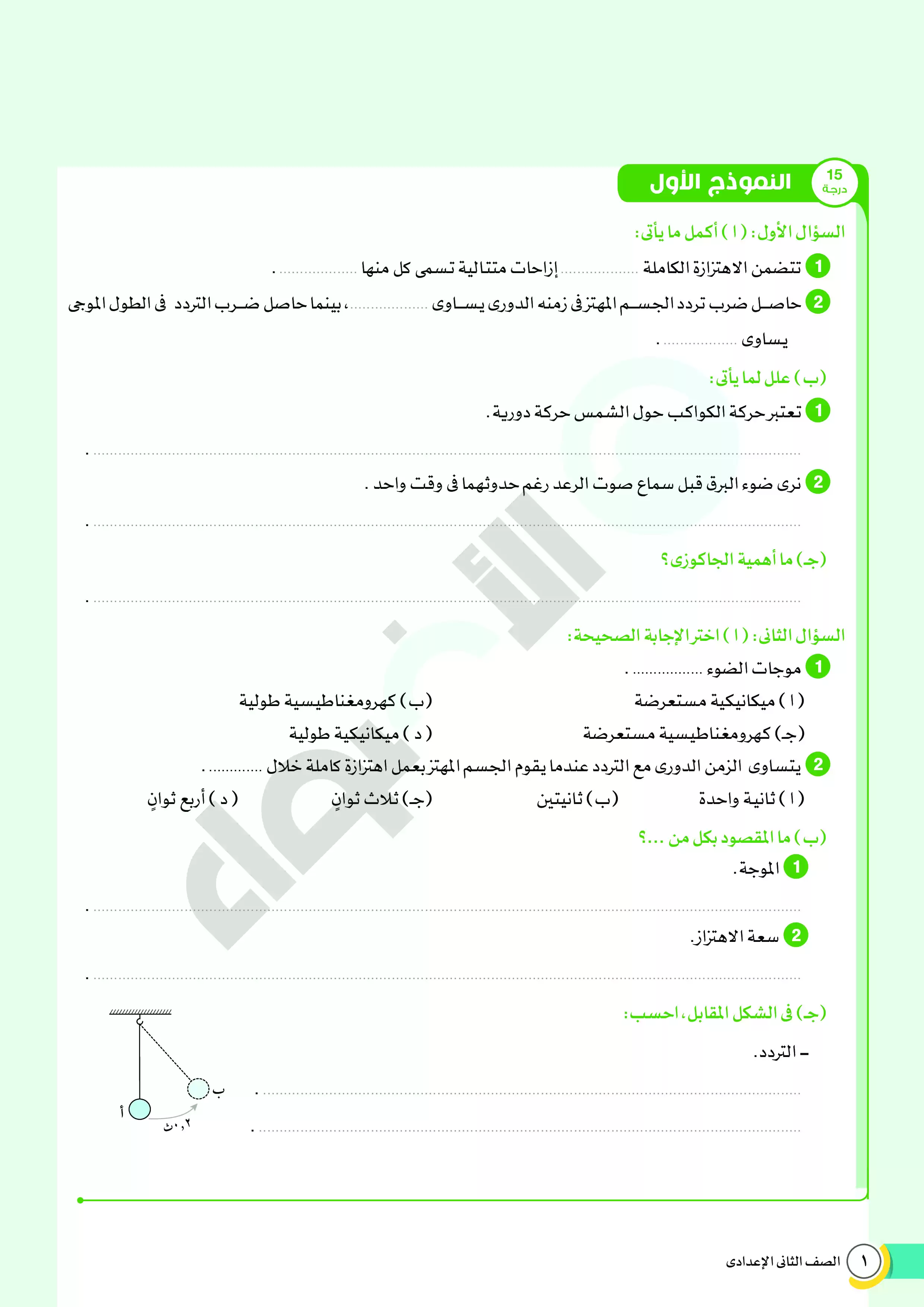 يحتوي الملف المرفق، والصادر من مؤسسة الأضواء، على نماذج امتحانات استرشادية على منهج ومقرر العلوم خلال شهر فبراير لطلاب الصف الثاني الاعدادي، كما يتضمن الملف نموذج إجابة للأسئلة الموجودة فيه ليتدرب الطالب وولي الأمر عليها، والملف متاح بصيغة PDF وبجودة مميزة متاحة للتحميل والتصفح مجاناً.