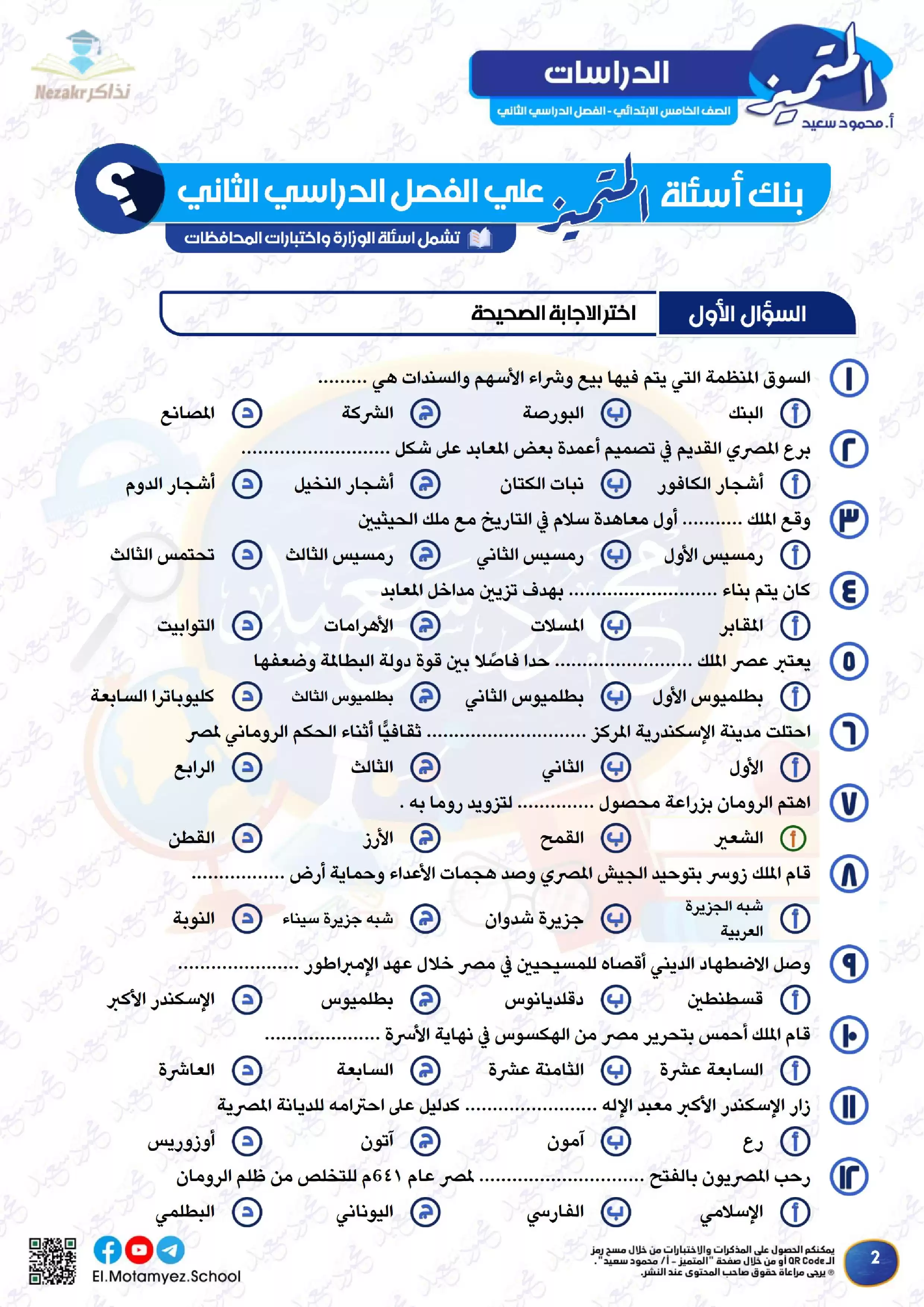 يحتوى الملف المرفق في المقال على ملف المراجعة النهائية في مادة الدراسات الاجتماعية من المتميز والخاصة بالصف الخامس الابتدائي الفصل الدراسي الثاني, مراجعة وبنك أسئلة المتميز على منهج الفصل الدراسي الثاني خامسة ابتدائي كاملاً, وذلك لتتمكن من تشغيله على جهاز الموبايل أو من خلال جهاز الكمبيوتر أو عبر اللابتوب أو التابلت لضمان سهولة الوصول الى الكتاب والمذاكرة عليه.