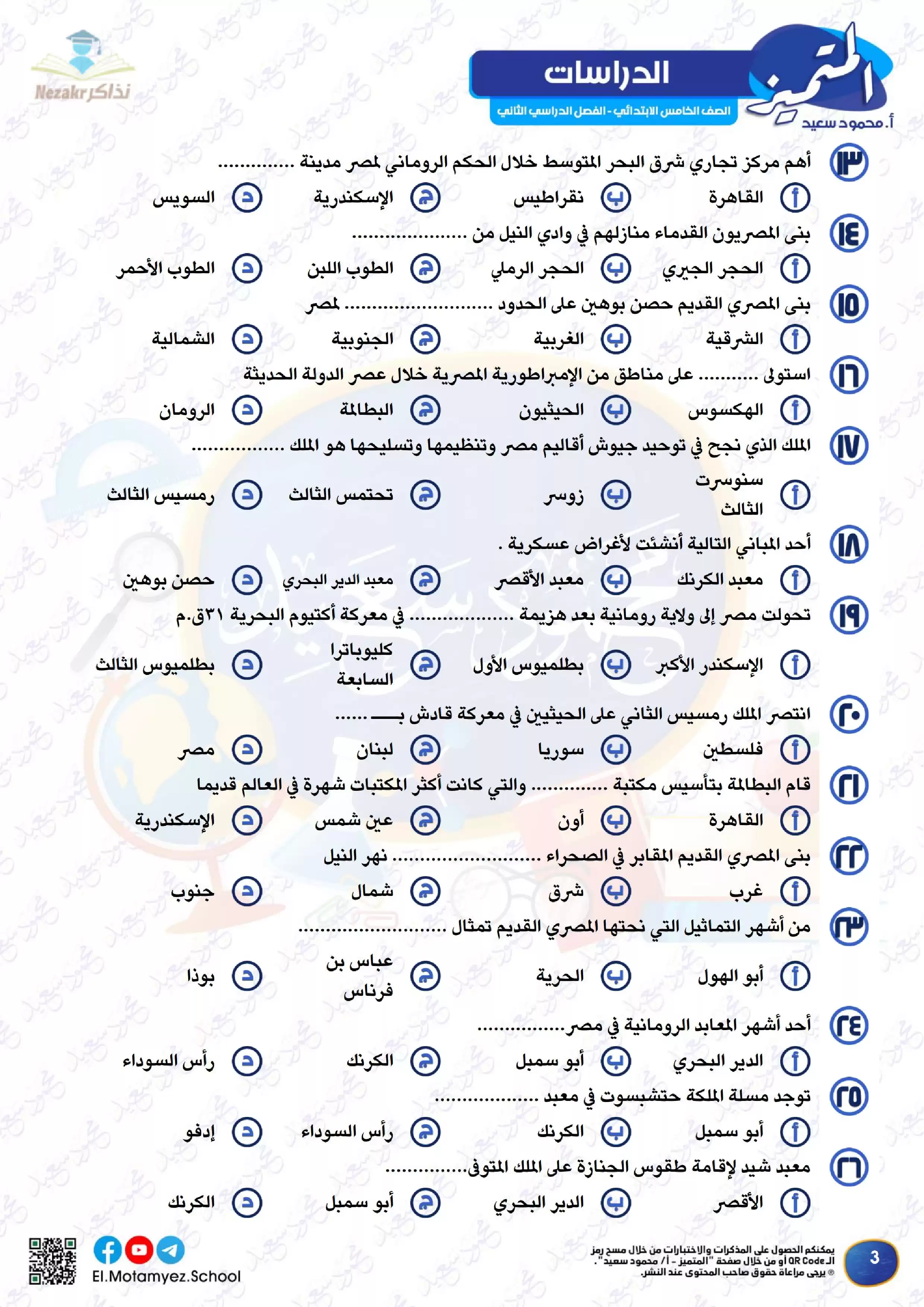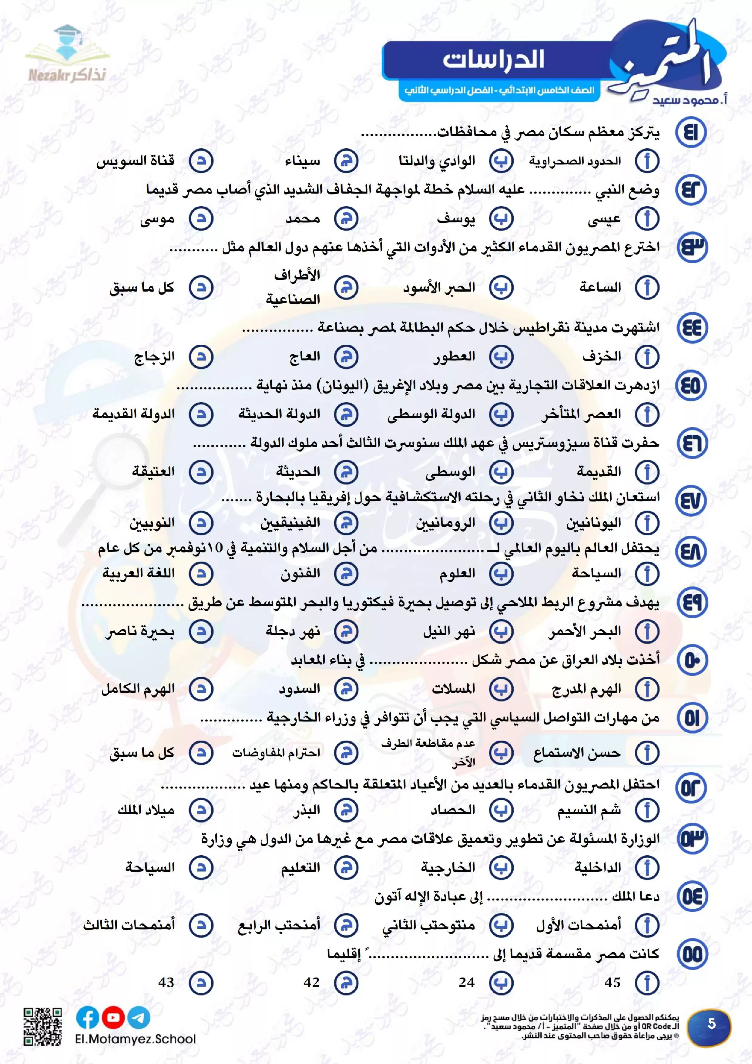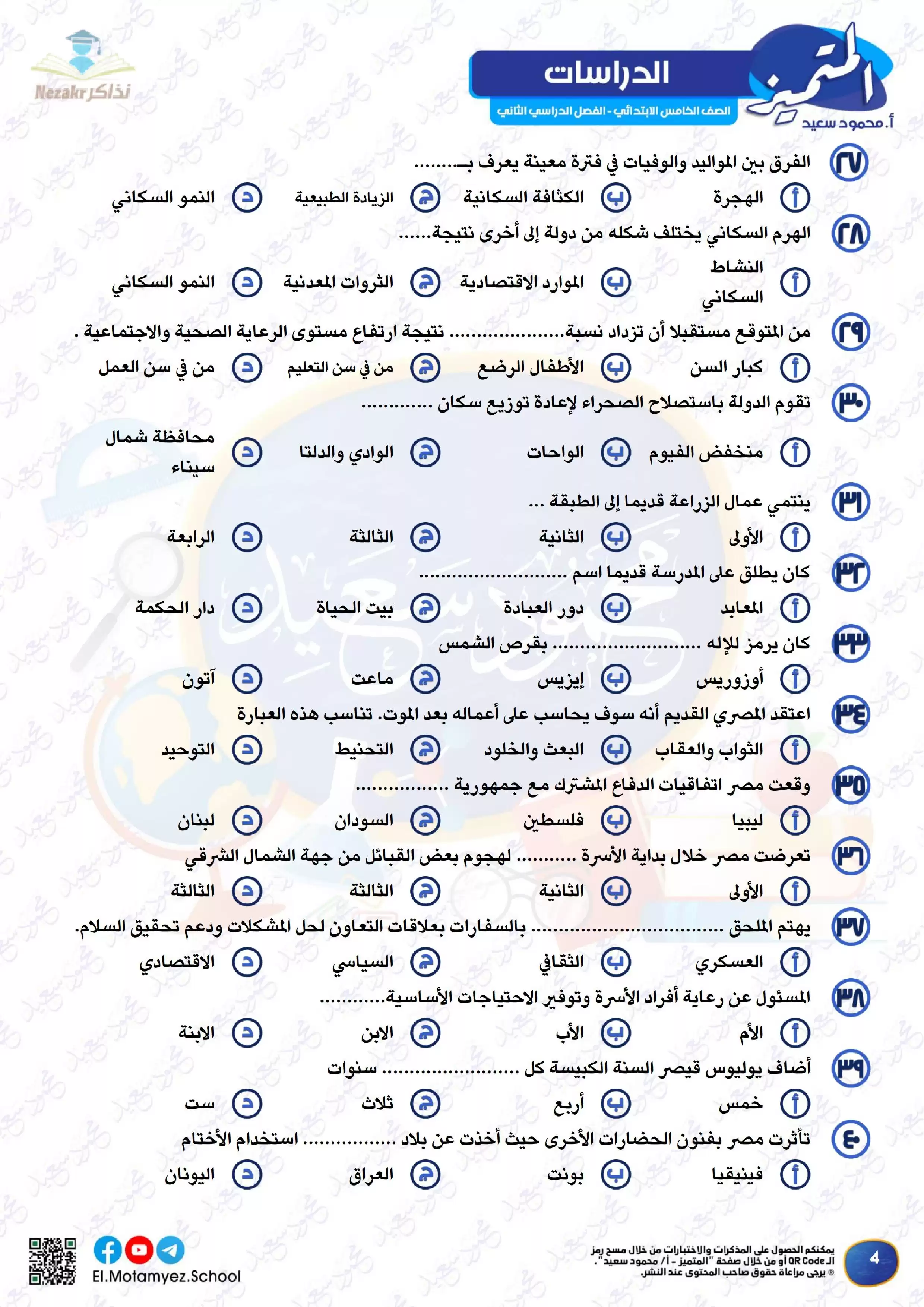 | بيانات الملف: (مراجعة المتميز النهائية في مادة الدراسات الاجتماعية للصف الخامس الابتدائي الترم الثاني - Nezakr) | |