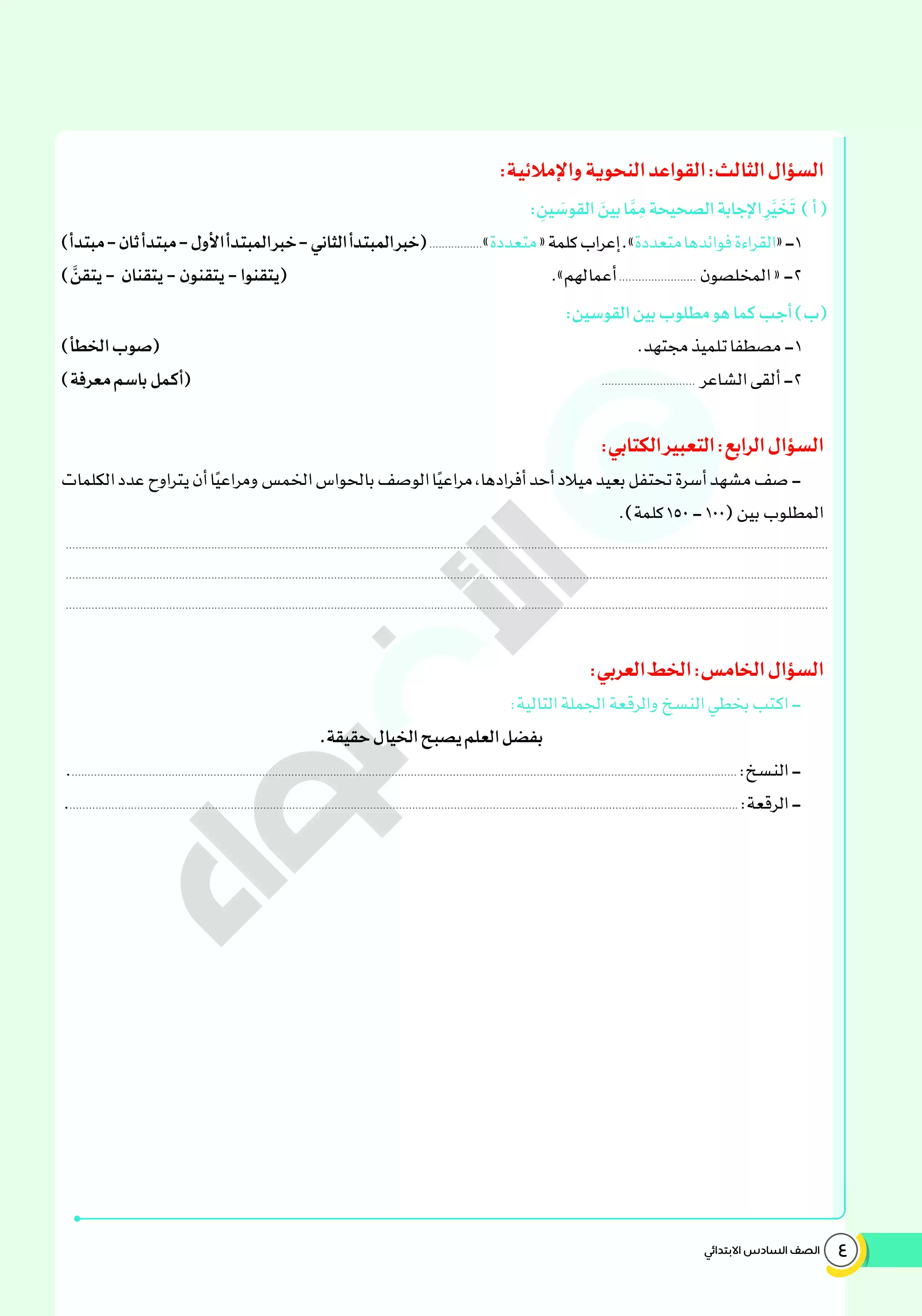 صفحة 4 من 14 صفحة من ملف: امتحانات الأضواء الاسترشادية في العربي للصف السادس الابتدائي مقرر فبراير 2025 بالاجابات - Nezakr