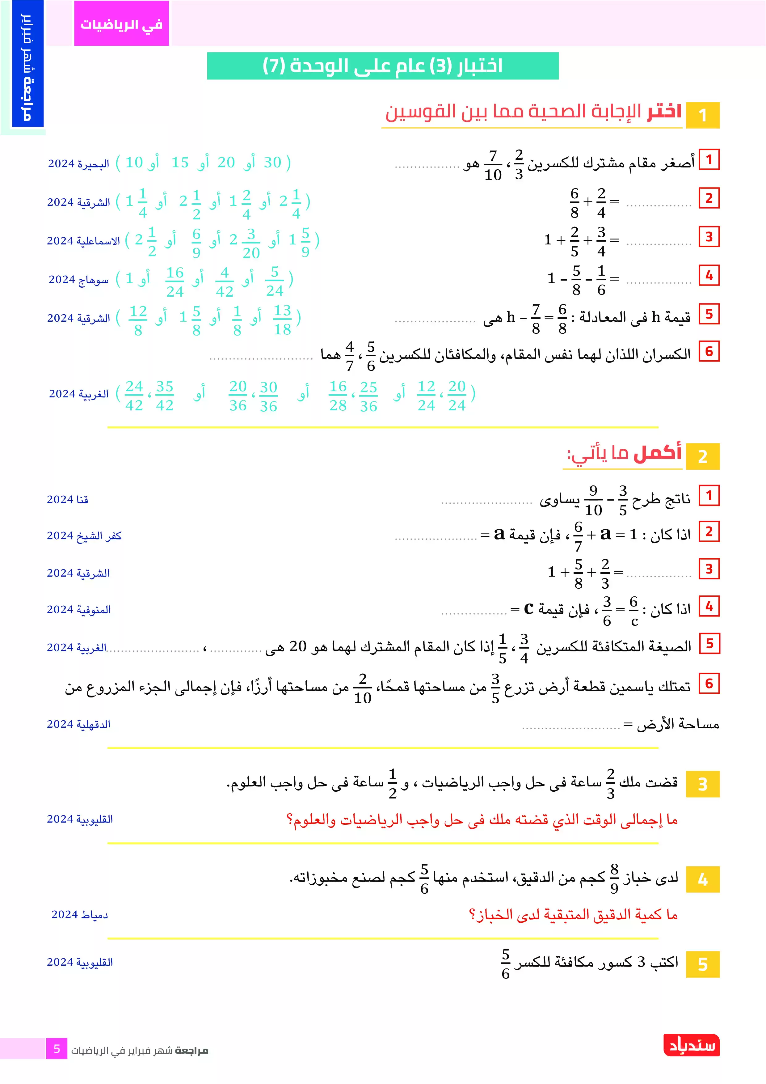 | بيانات الملف: (مراجعة السندباد لشهر فبراير فى الرياضيات للصف الخامس الابتدائي 2025 ترم تاني - Nezakr) | |