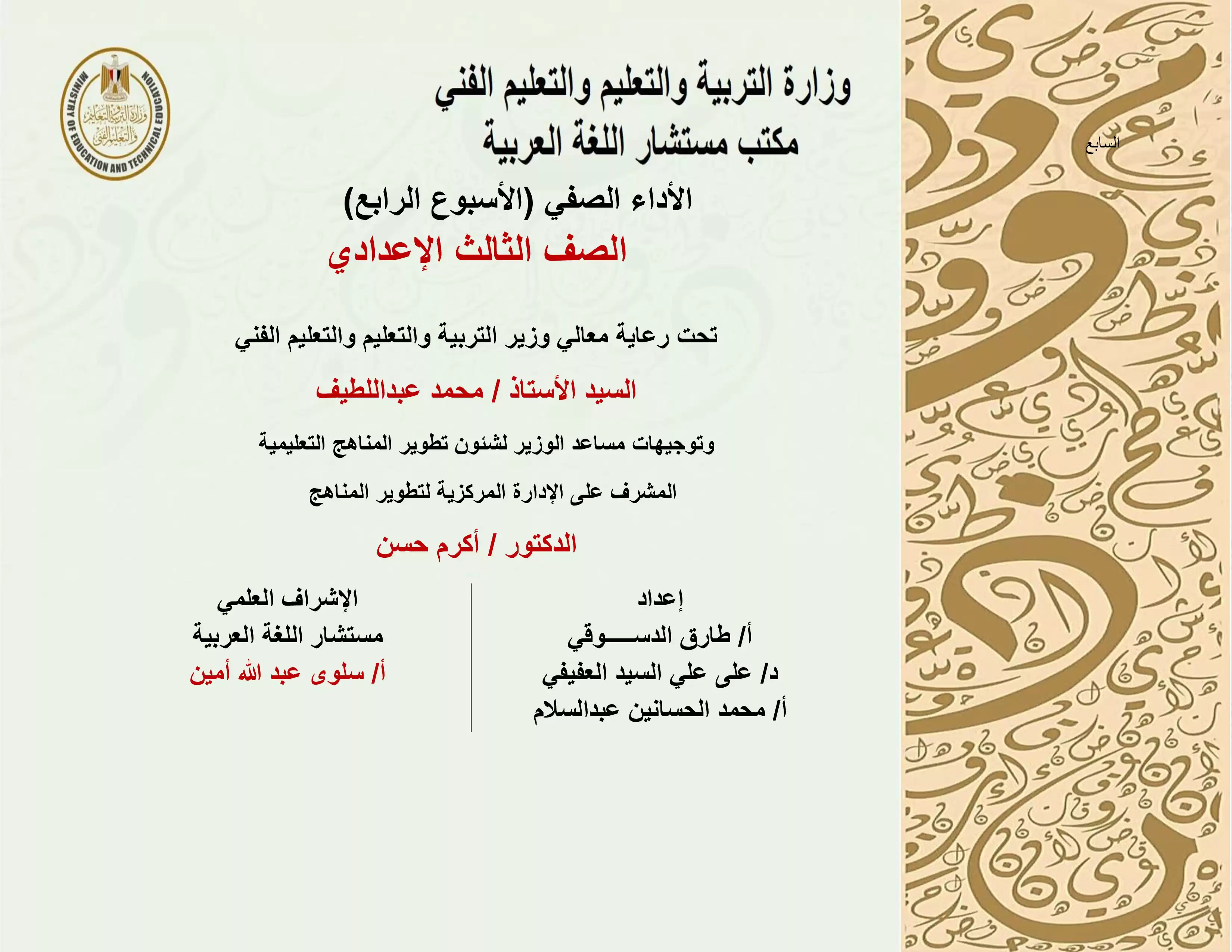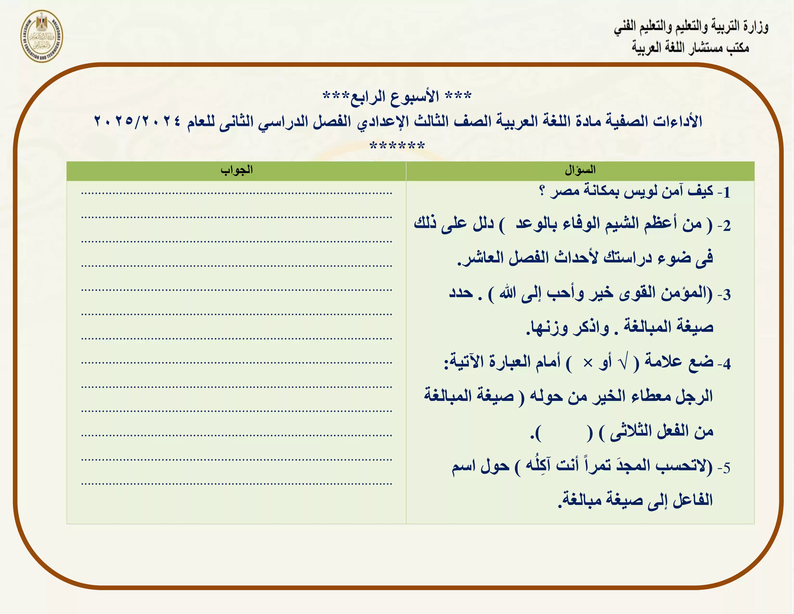 الصف الثالث الإعدادي > اللغة العربية > الآداء الصفي في الأسبوع الرابع مادة اللغة العربية للصف الثالث الإعدادي الترم الثاني 2025 بصيغة PDF