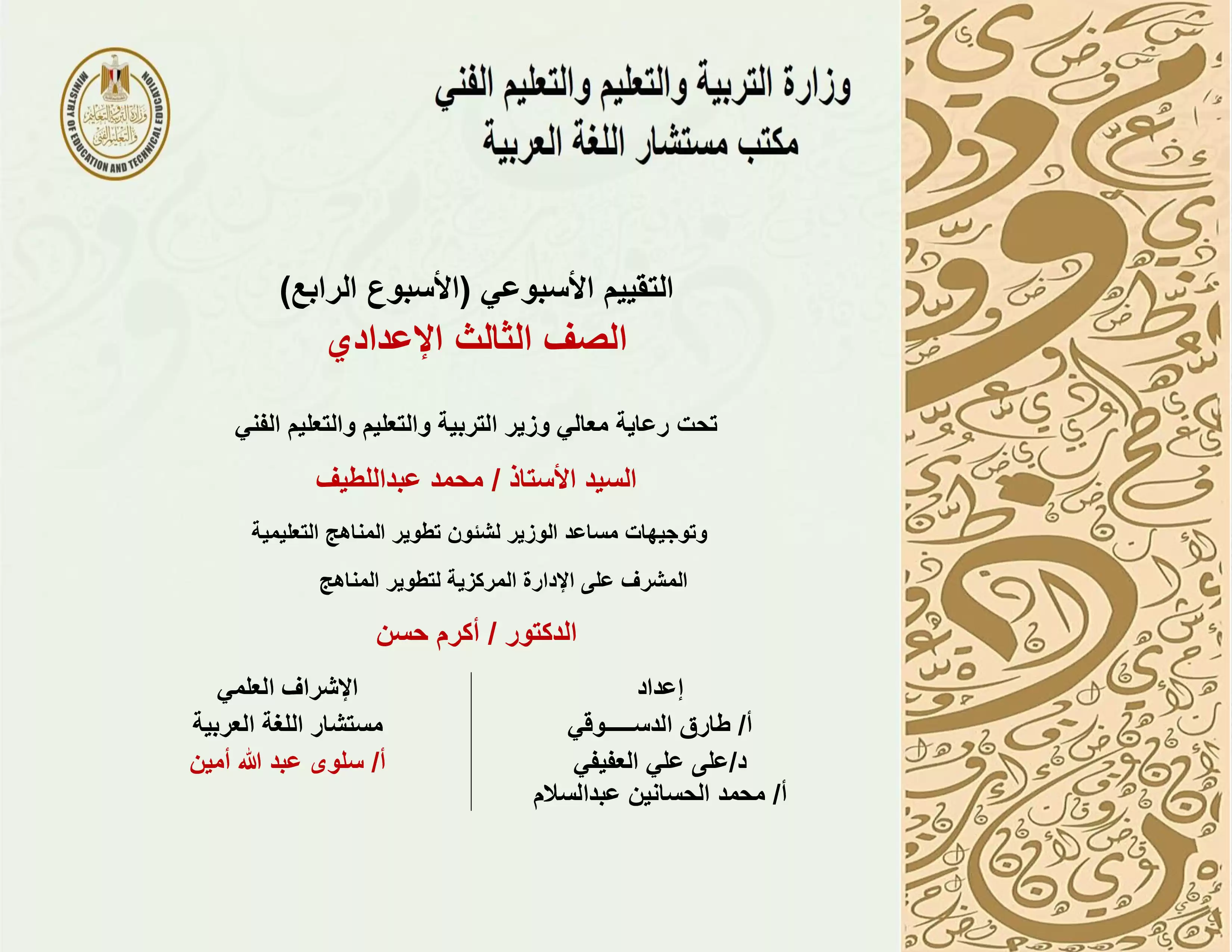 1. تقييمات الأسبوع الأول في مادة اللغة العربية للصف الثالث الإعدادي الترم الثاني 2025 بصيغة PDF