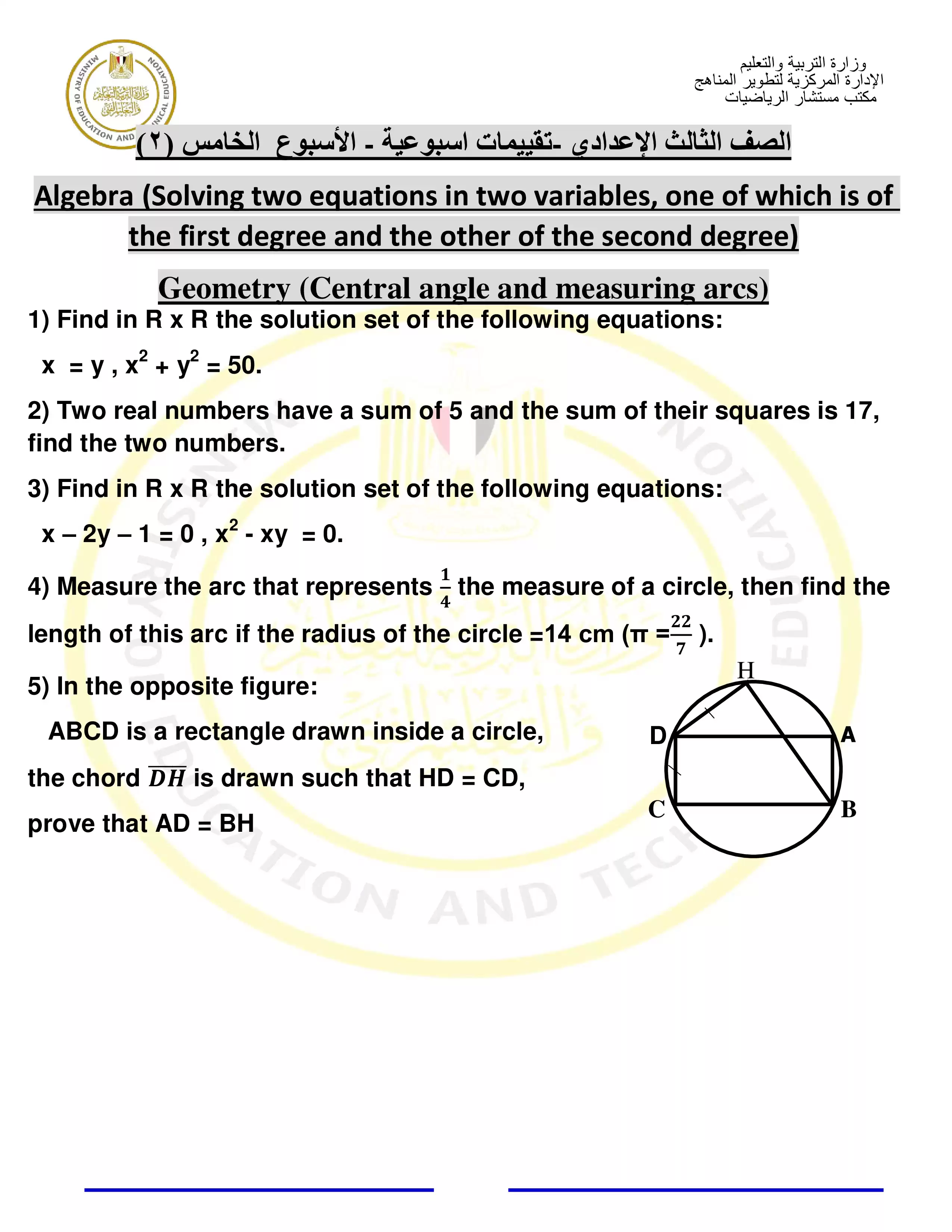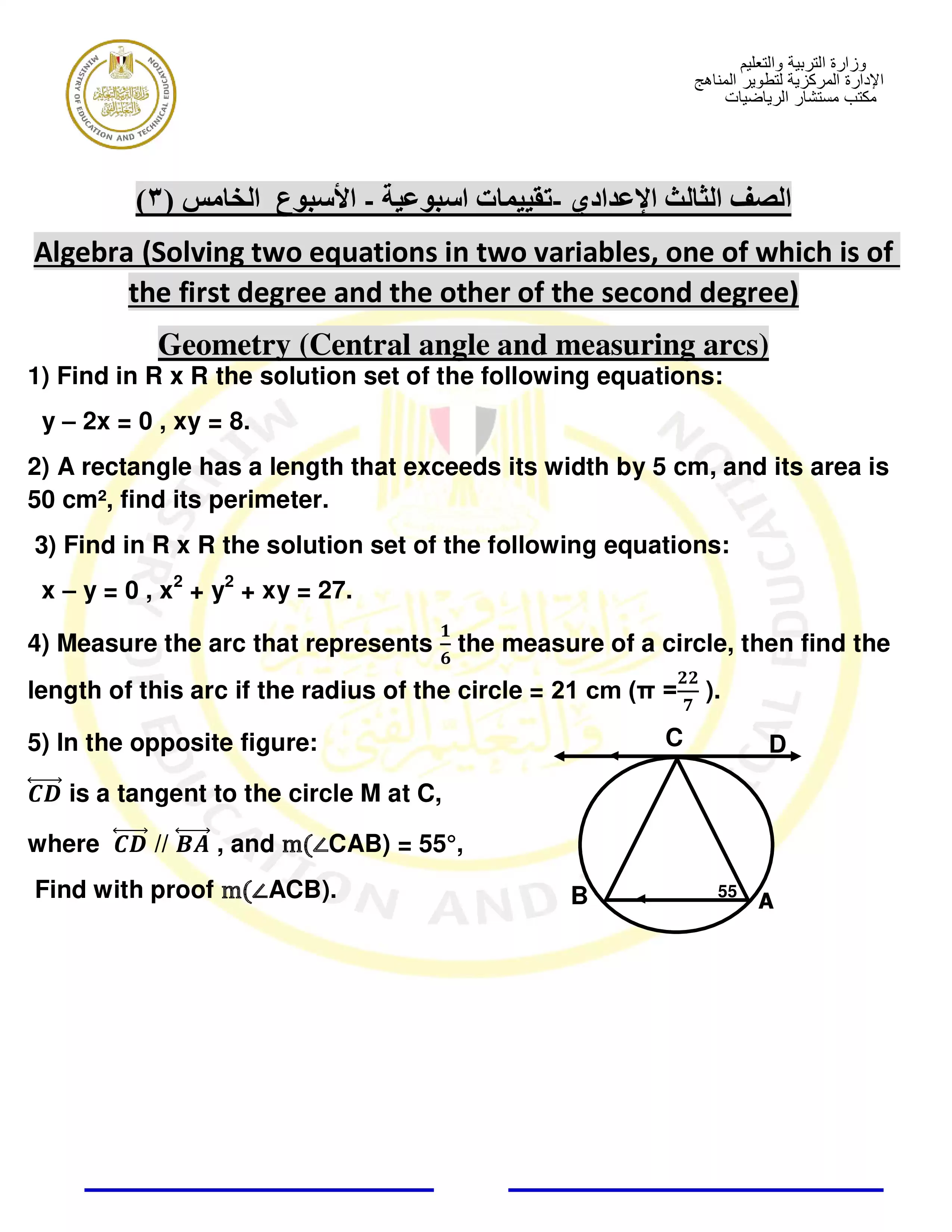 | بيانات الملف: (التقييمات الخاصة بالأسبوع الخامس في الرياضيات للغات للصف الثالث الاعدادي الترم الثاني 2025 - Nezakr) | |