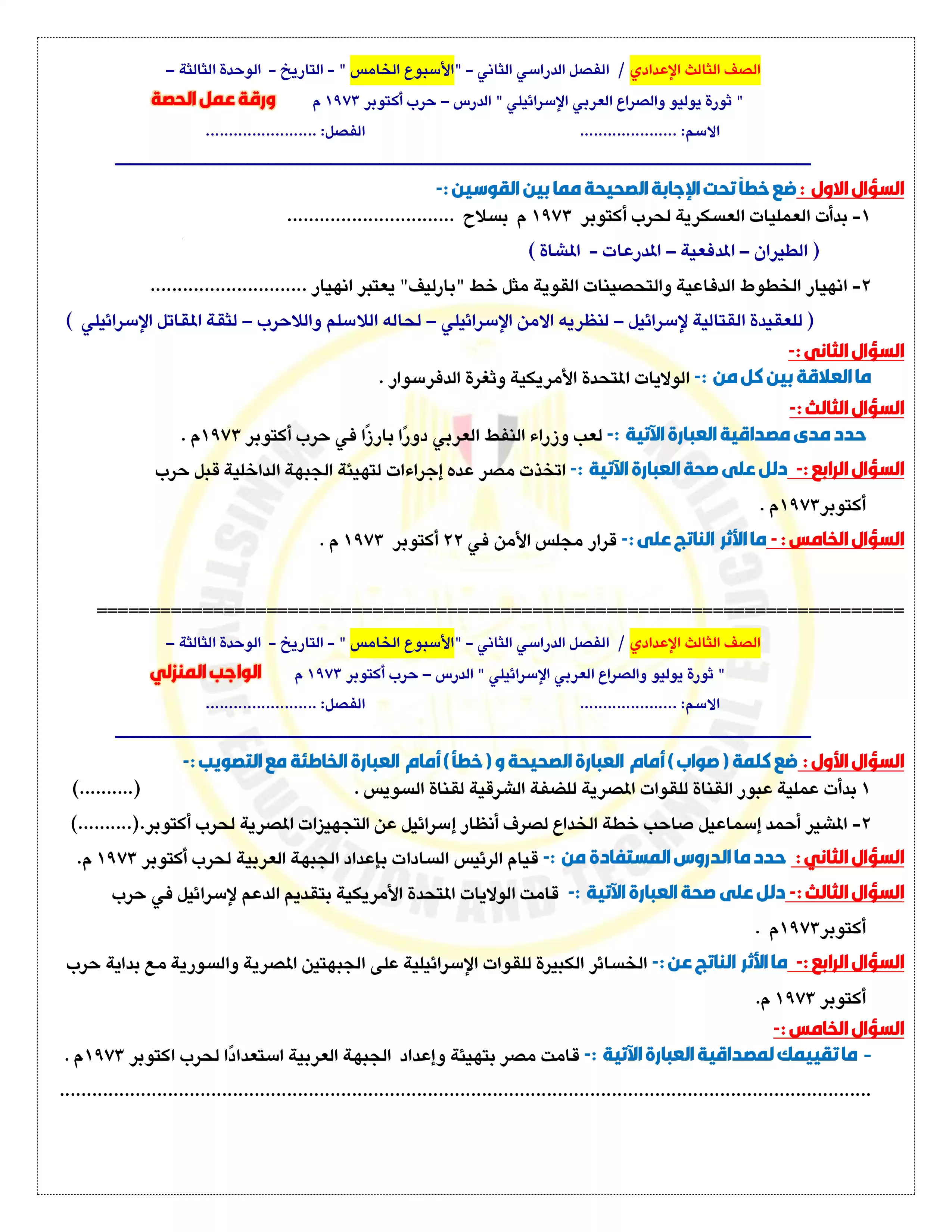 • الاداء المنزلي للاسبوع 5 في الدراسات للشهادة الإعدادية