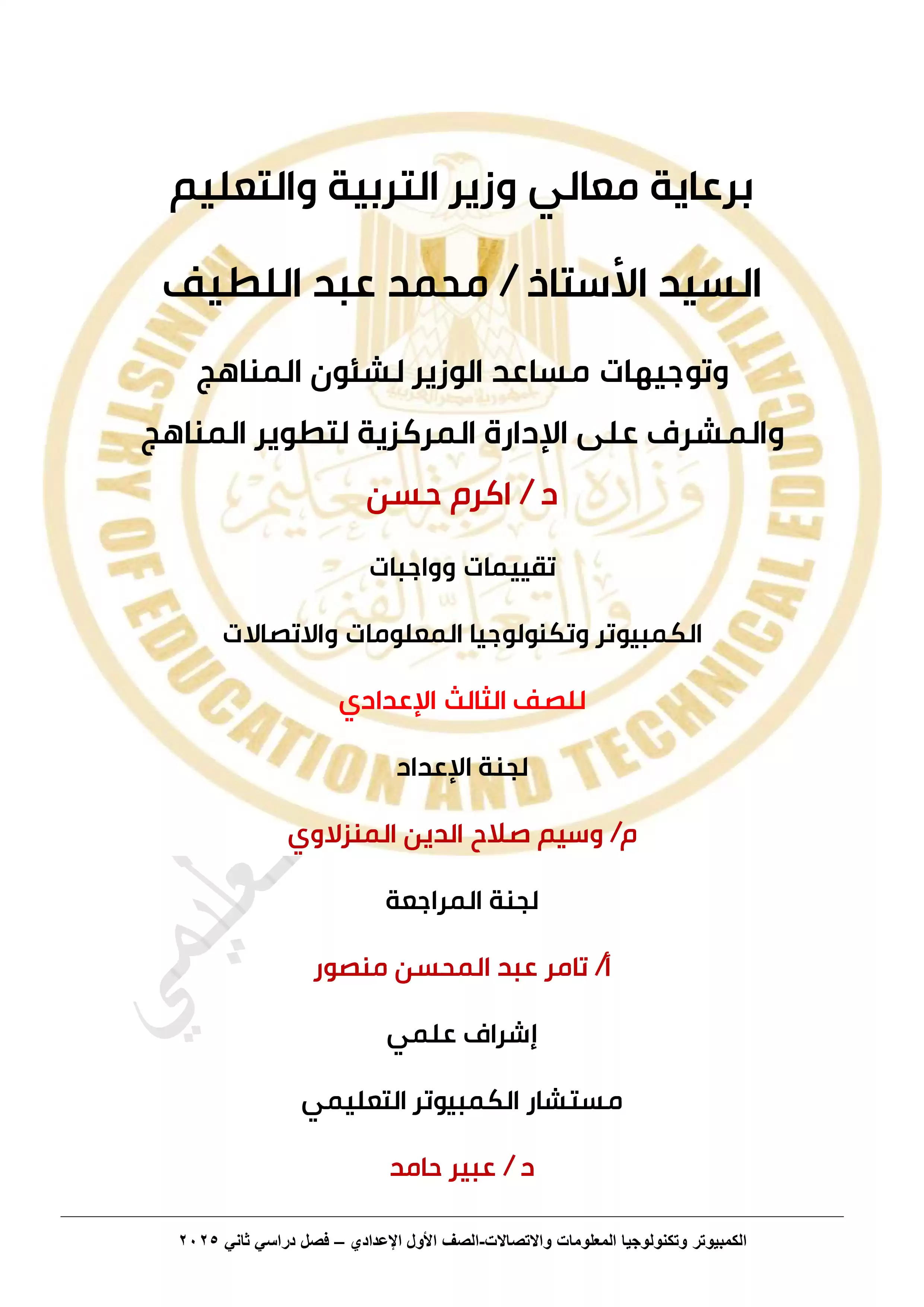 1. تقييمات الأسبوع الأول في مادة تكنولوجيا المعلومات والاتصالات للصف الثالث الاعدادي الترم الثاني 2025 بصيغة PDF