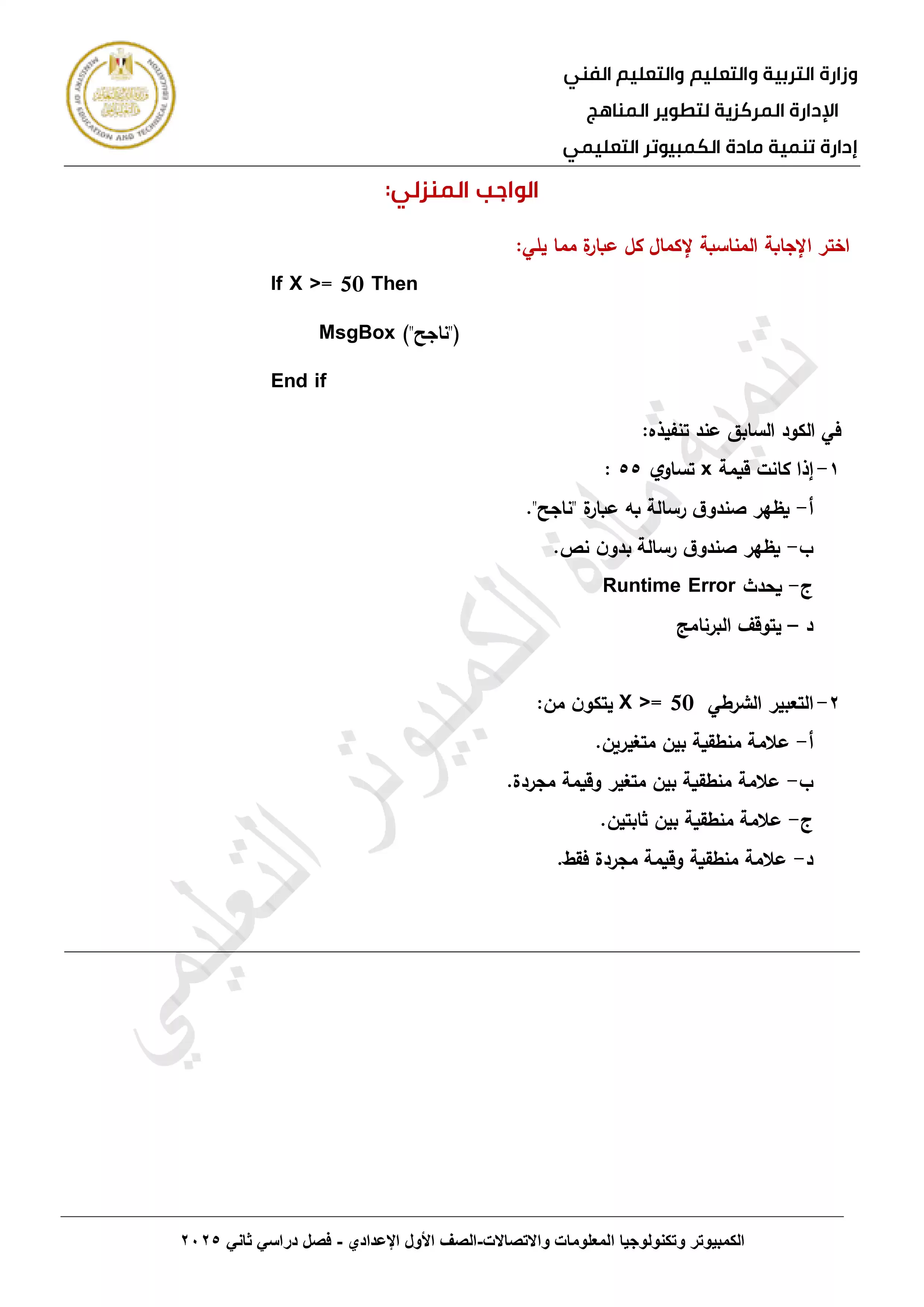 2. الأداء المنزلي في الأسبوع الثاني مادة الكمبيوتر وتكنولوجيا المعلومات لغات ICT للصف الثالث الاعدادي الترم الثاني 2025 بصيغة PDF
