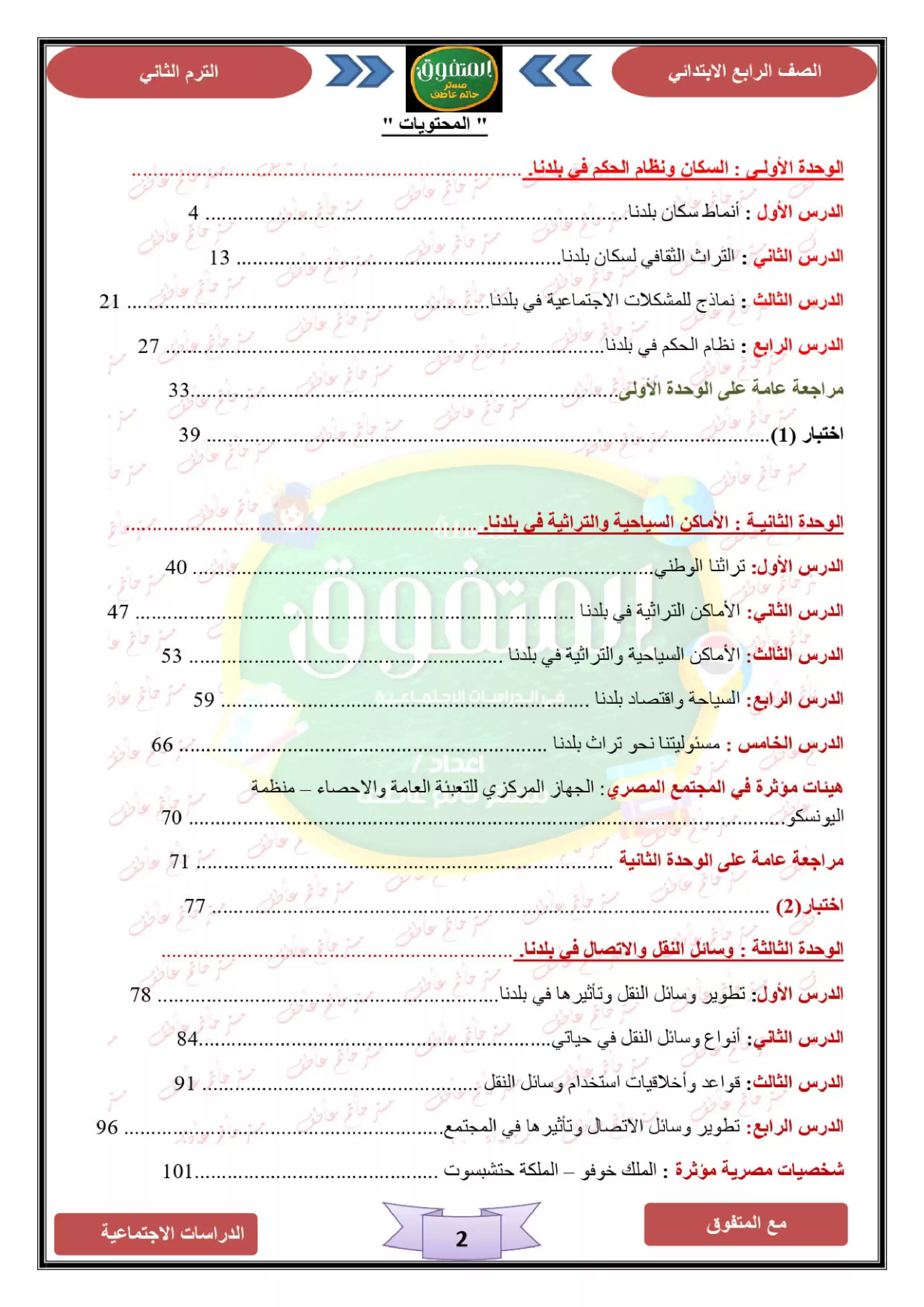 | بيانات الملف: (مذكرة المتفوق في الدراسات الاجتماعية للصف الرابع الابتدائي ترم تاني مستر حاتم عاطف - Nezakr) | |