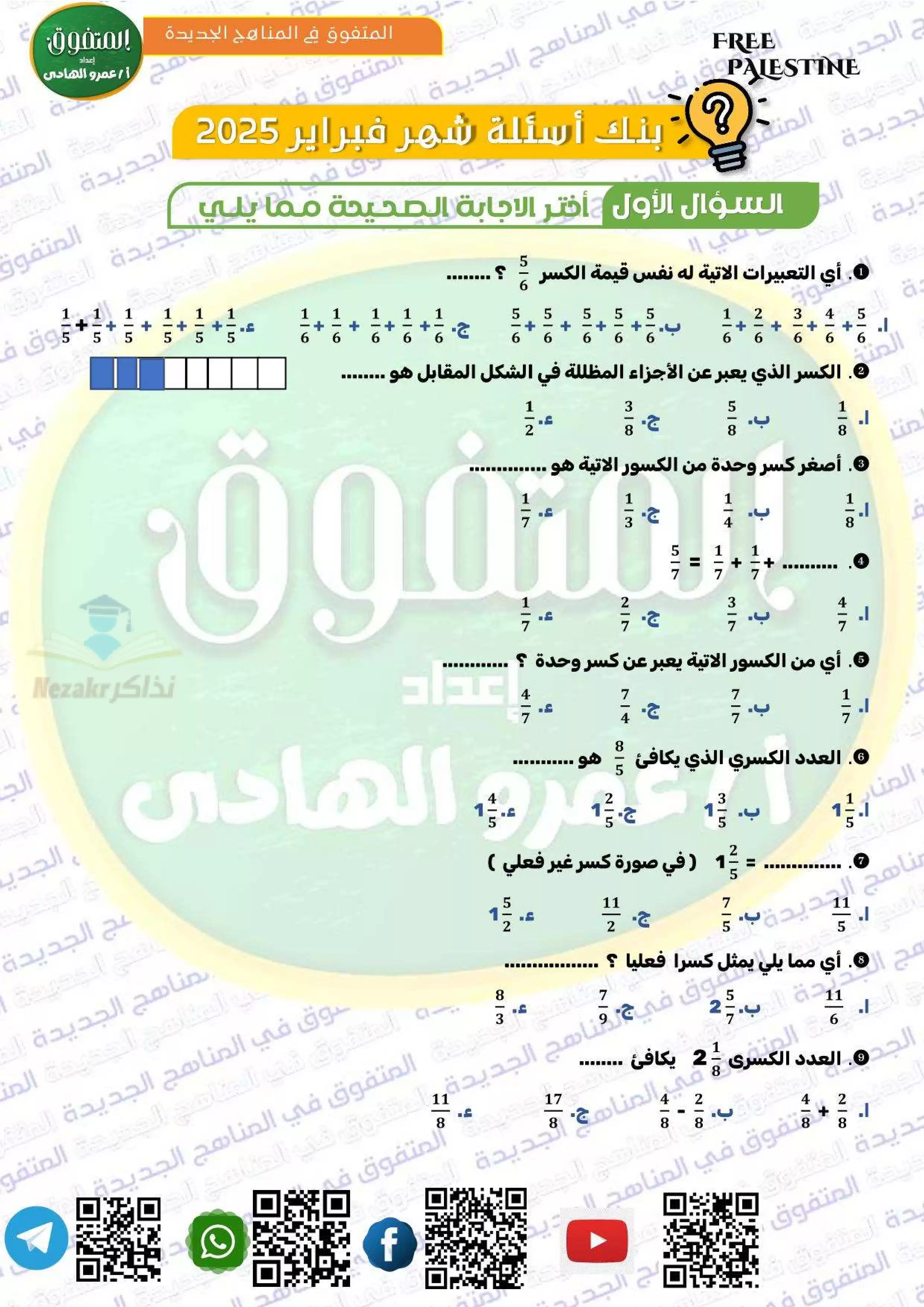 | بيانات الملف: (مراجعة المتفوق لشهر فبراير في رياضيات رابعه ابتدائي من إعداد مستر عمرو الهادى - Nezakr) | |