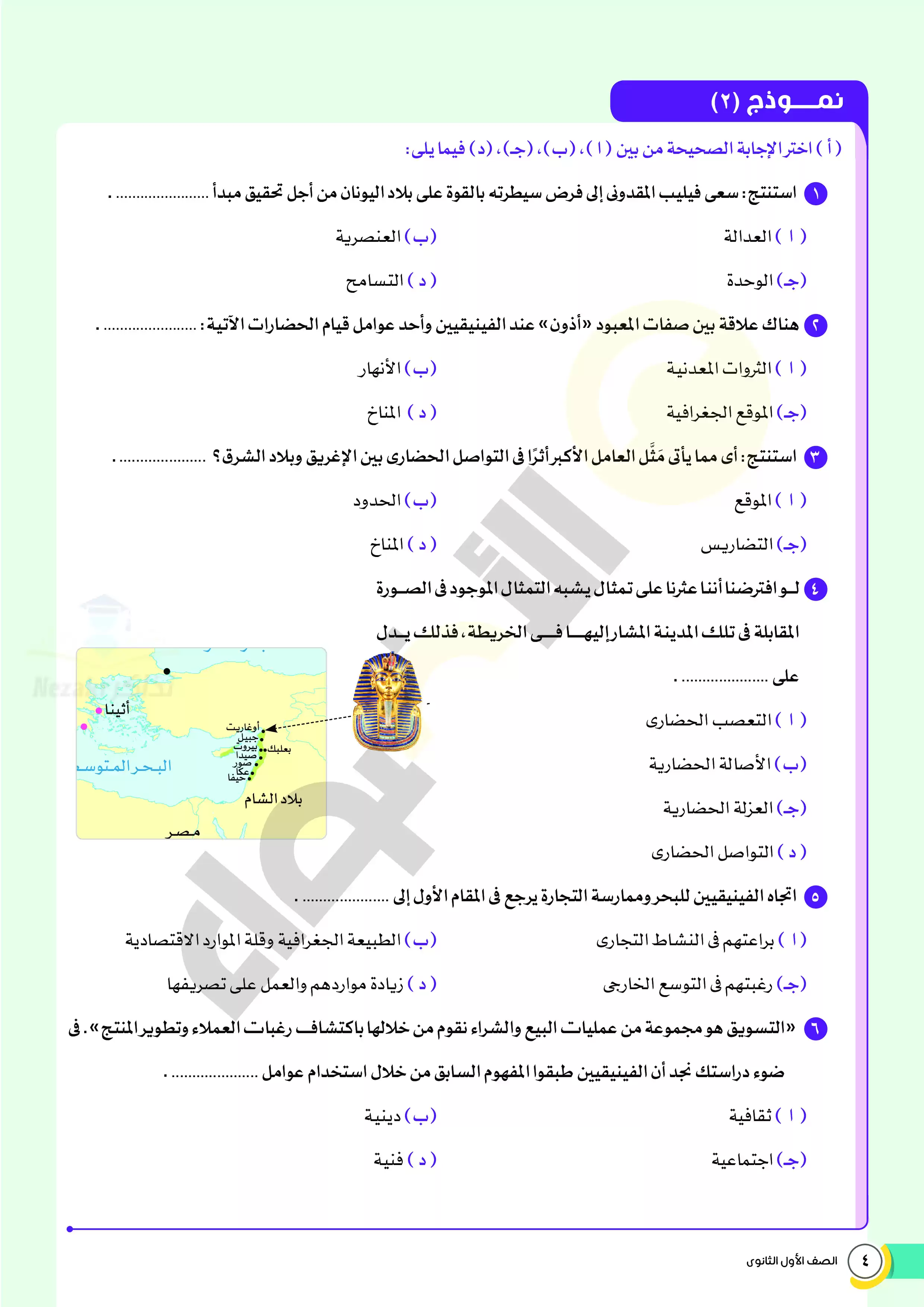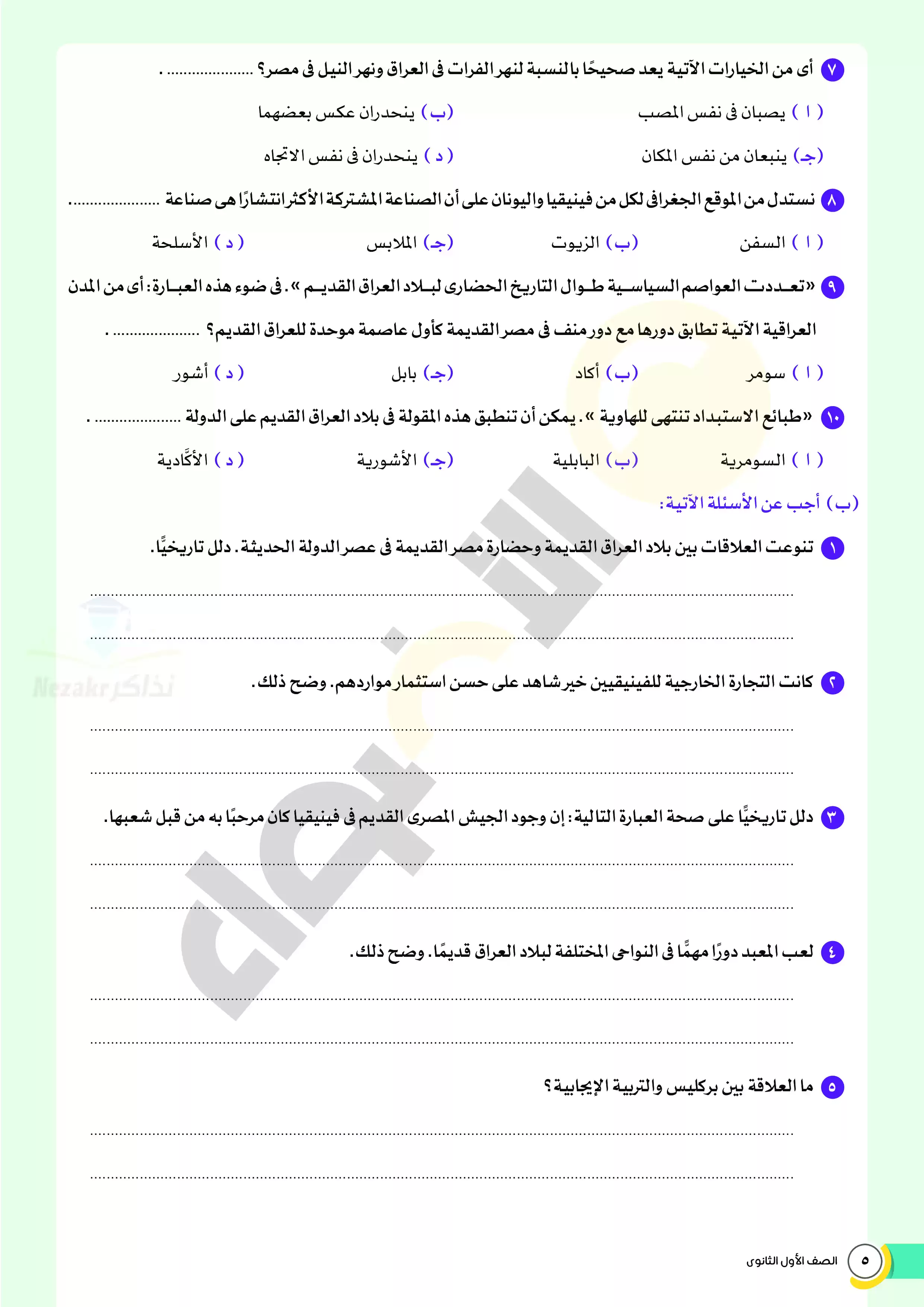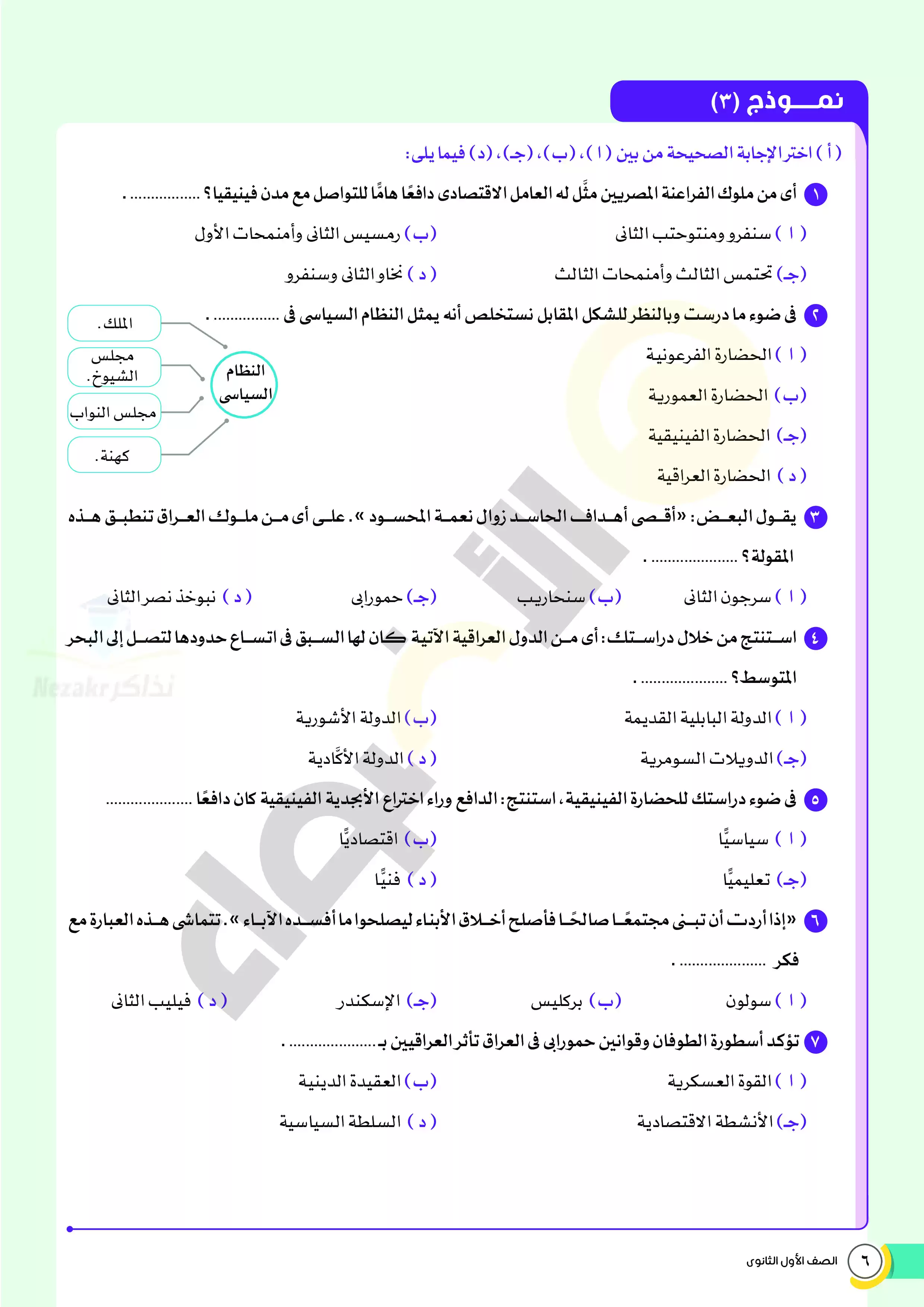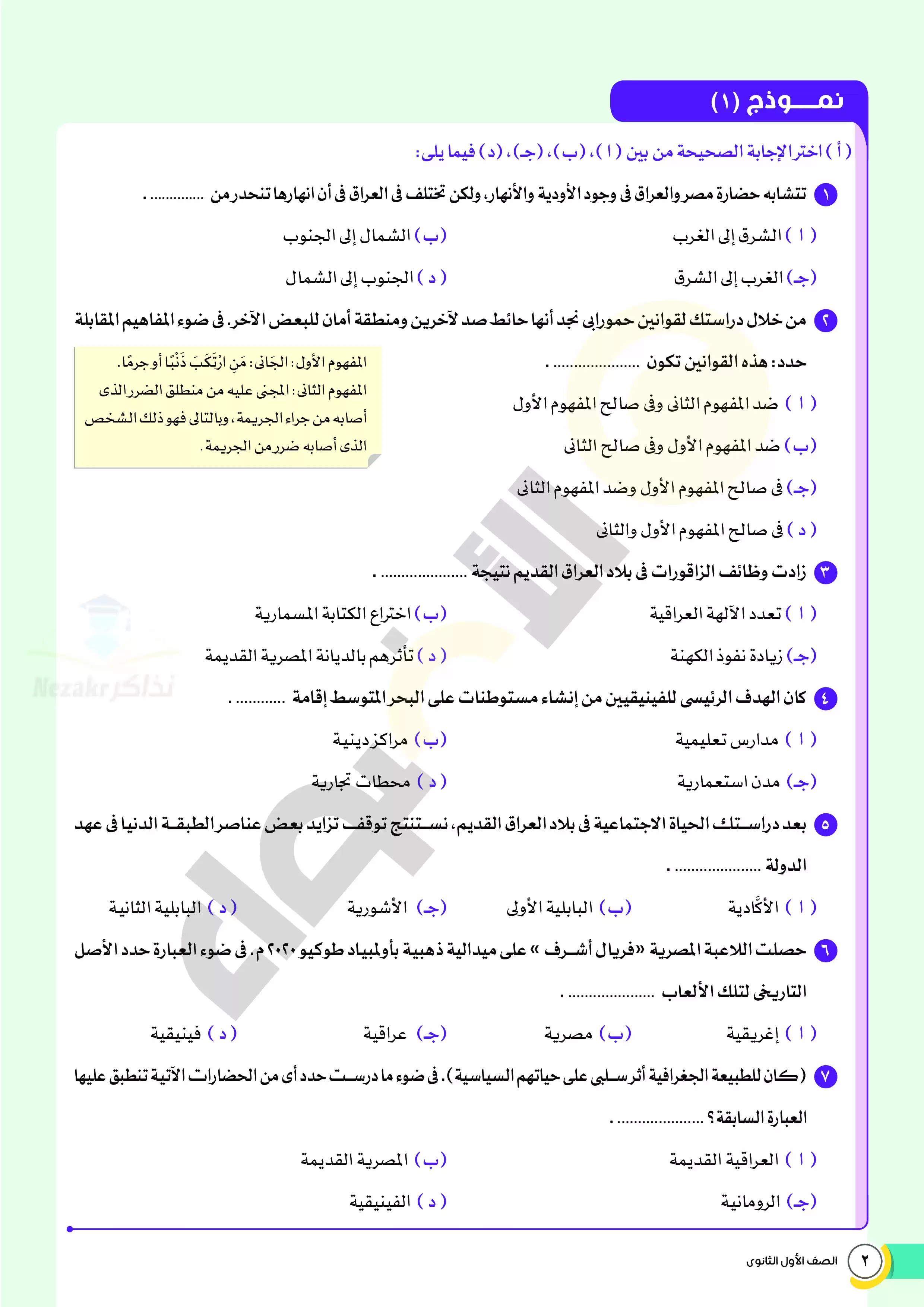 | بيانات الملف: (امتحانات الأضواء الاسترشادية في التاريخ للصف الاول الثانوي مقرر فبراير 2025 بالاجابات النموذجية - Nezakr) | |
