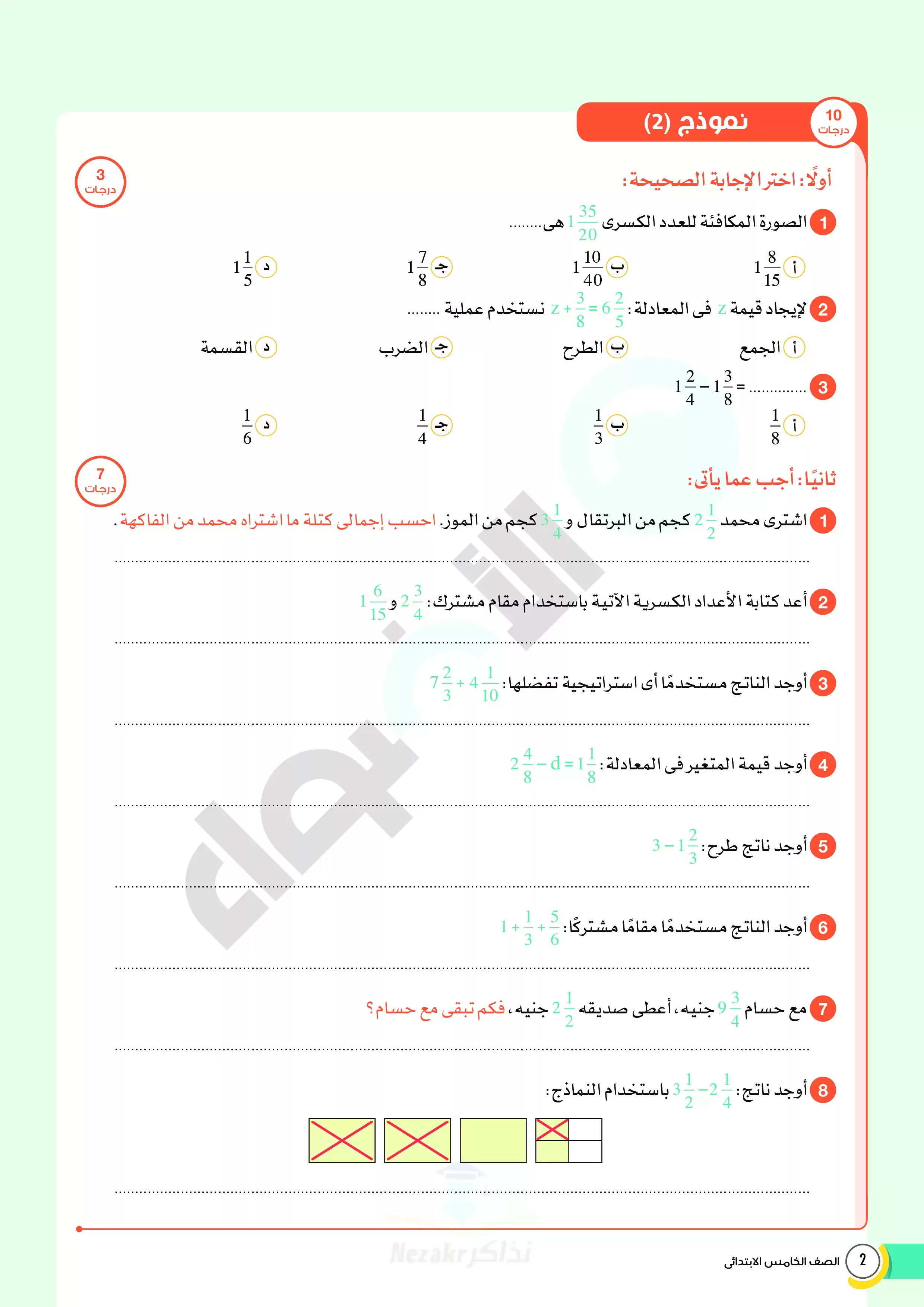 صفحة 2 من 20 صفحة من ملف: امتحانات الأضواء الاسترشادية في الرياضيات للصف الخامس الابتدائي مقرر فبراير 2025 بالاجابات - Nezakr