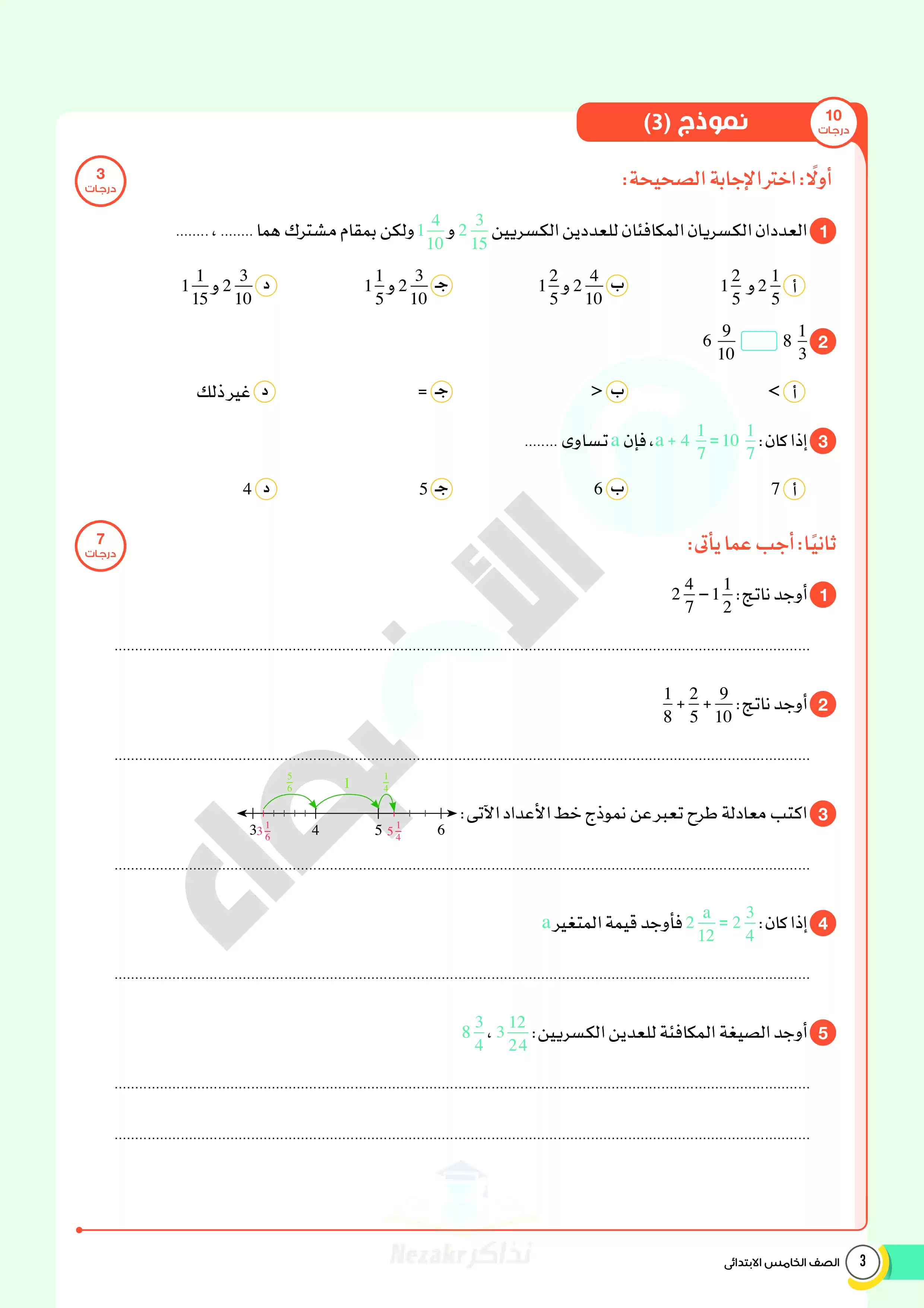 صفحة 3 من 20 صفحة من ملف: امتحانات الأضواء الاسترشادية في الرياضيات للصف الخامس الابتدائي مقرر فبراير 2025 بالاجابات - Nezakr