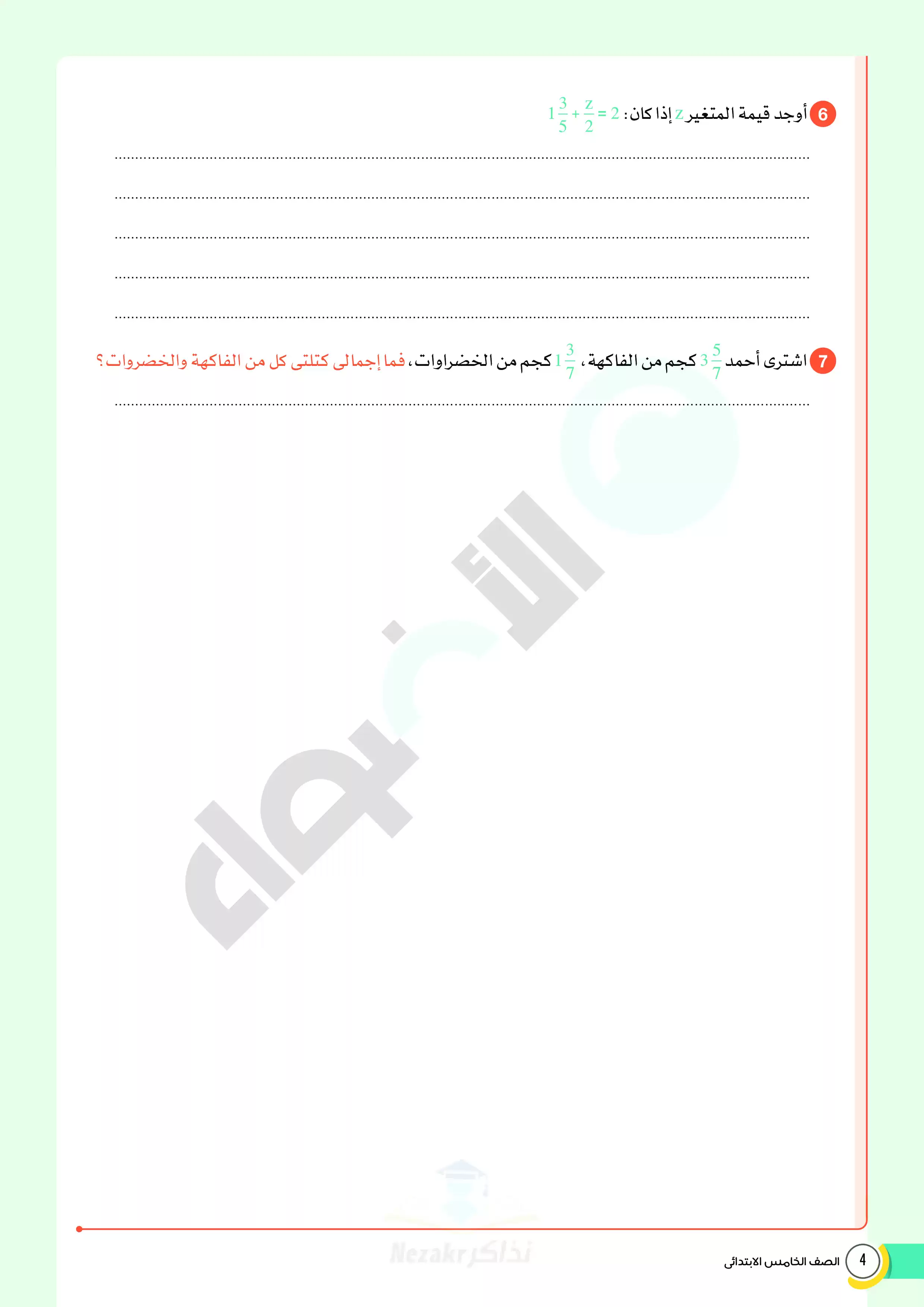 صفحة 4 من 20 صفحة من ملف: امتحانات الأضواء الاسترشادية في الرياضيات للصف الخامس الابتدائي مقرر فبراير 2025 بالاجابات - Nezakr