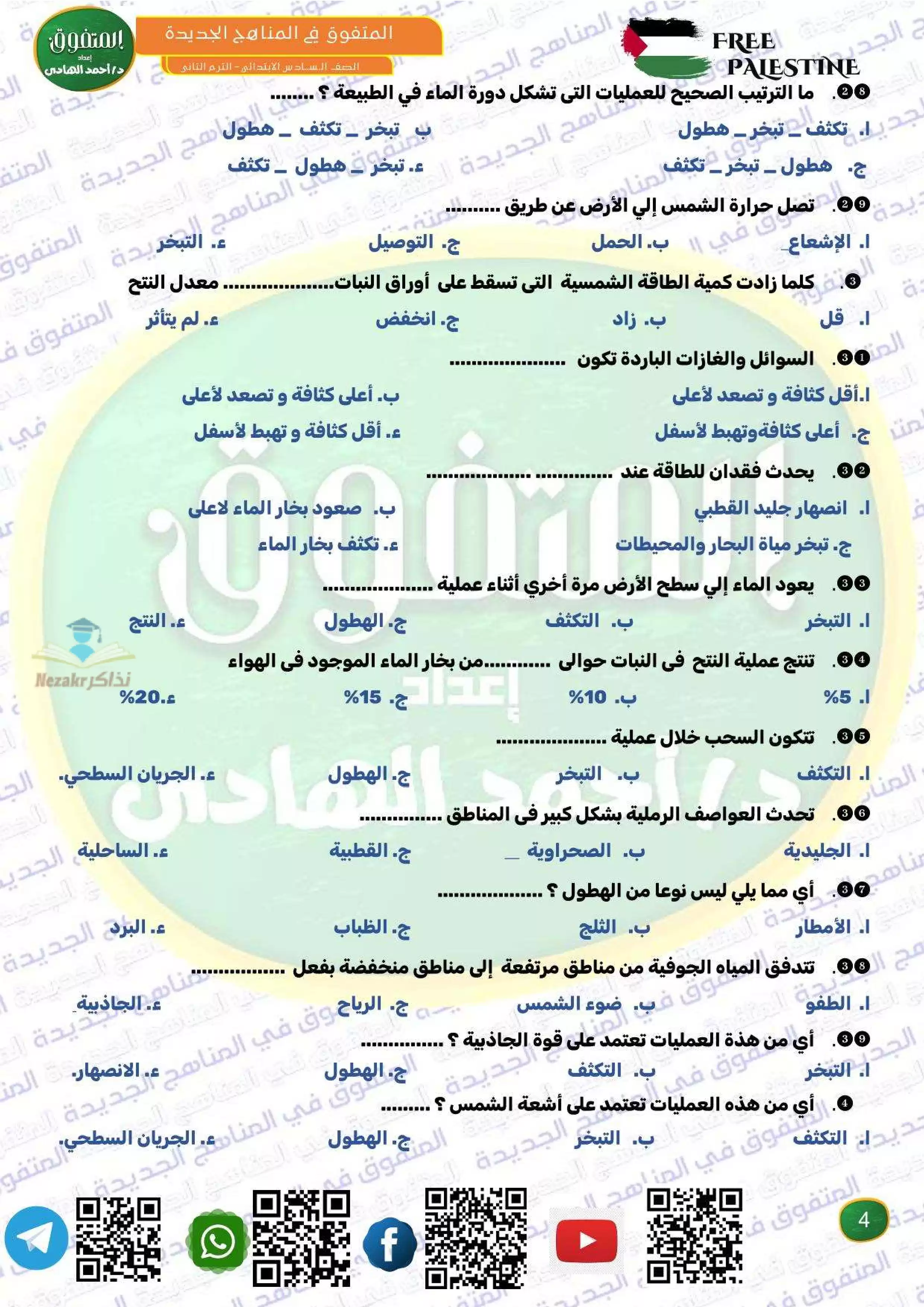 سكرين شوت من الملف: مراجعة المتفوق لشهر فبراير في العلوم سادسه ابتدائي من إعداد مستر أحمد الهادي - Nezakr
