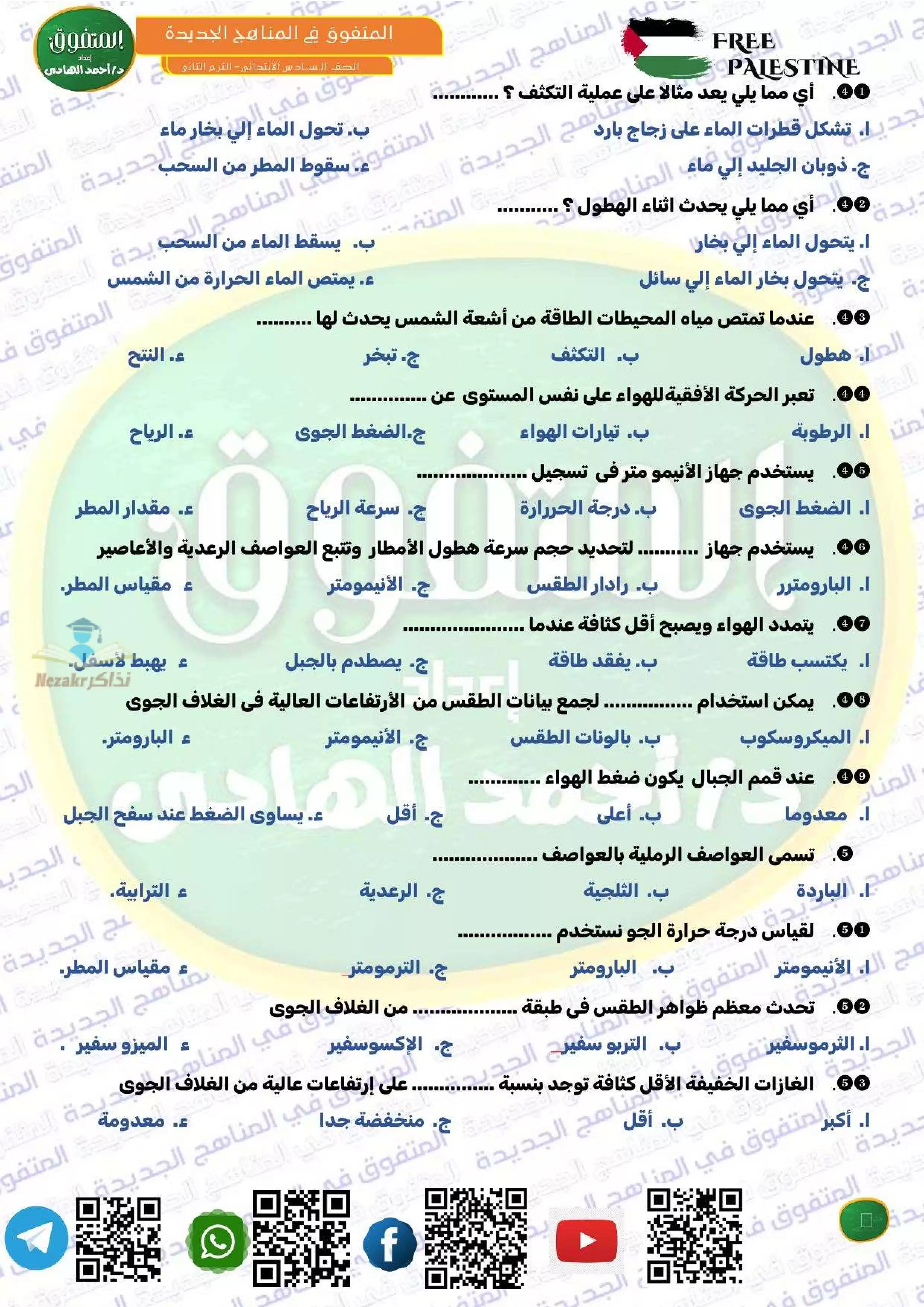 بيانات الملف: (مراجعة المتفوق لشهر فبراير في العلوم سادسه ابتدائي من إعداد مستر أحمد الهادي - Nezakr)
