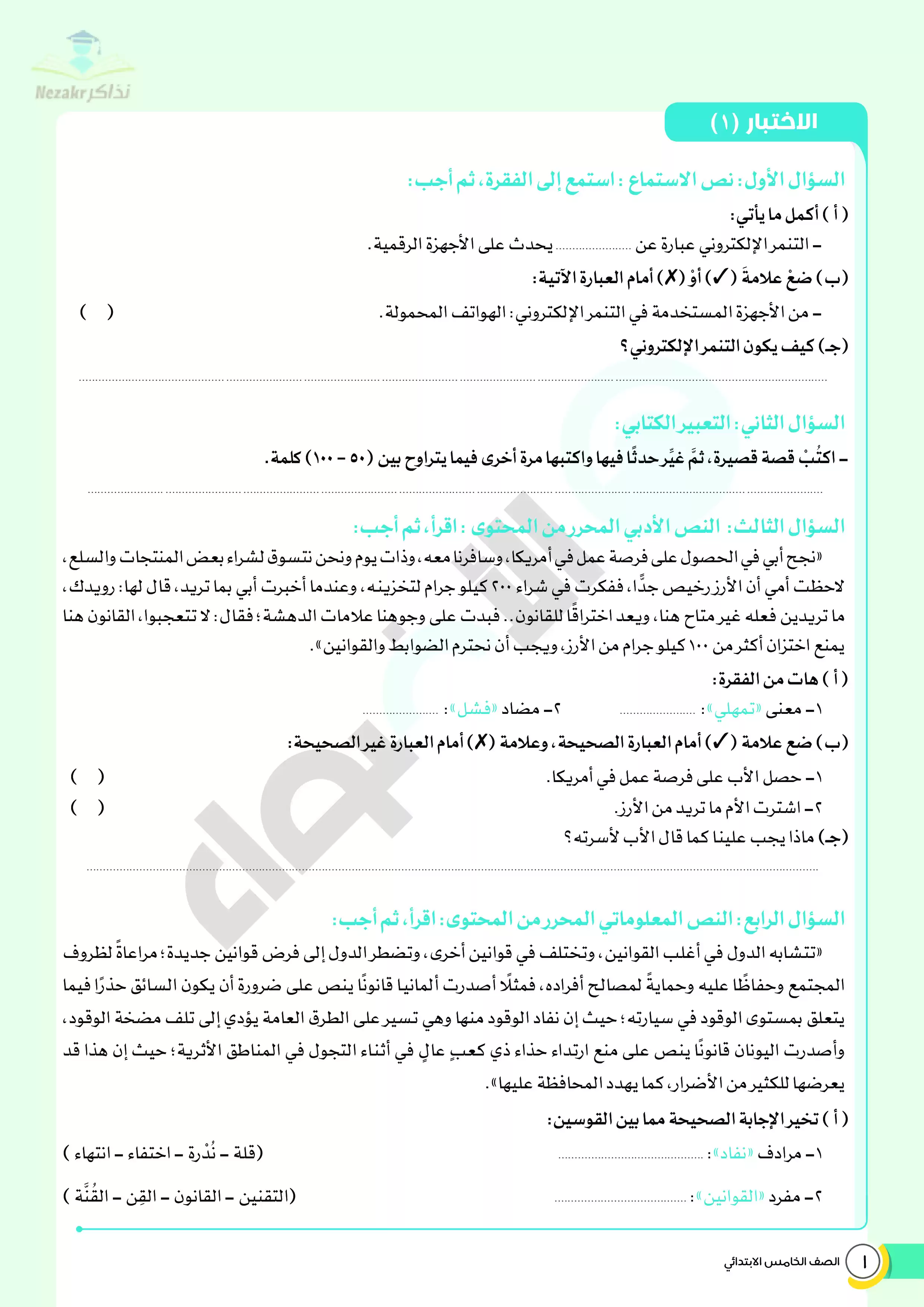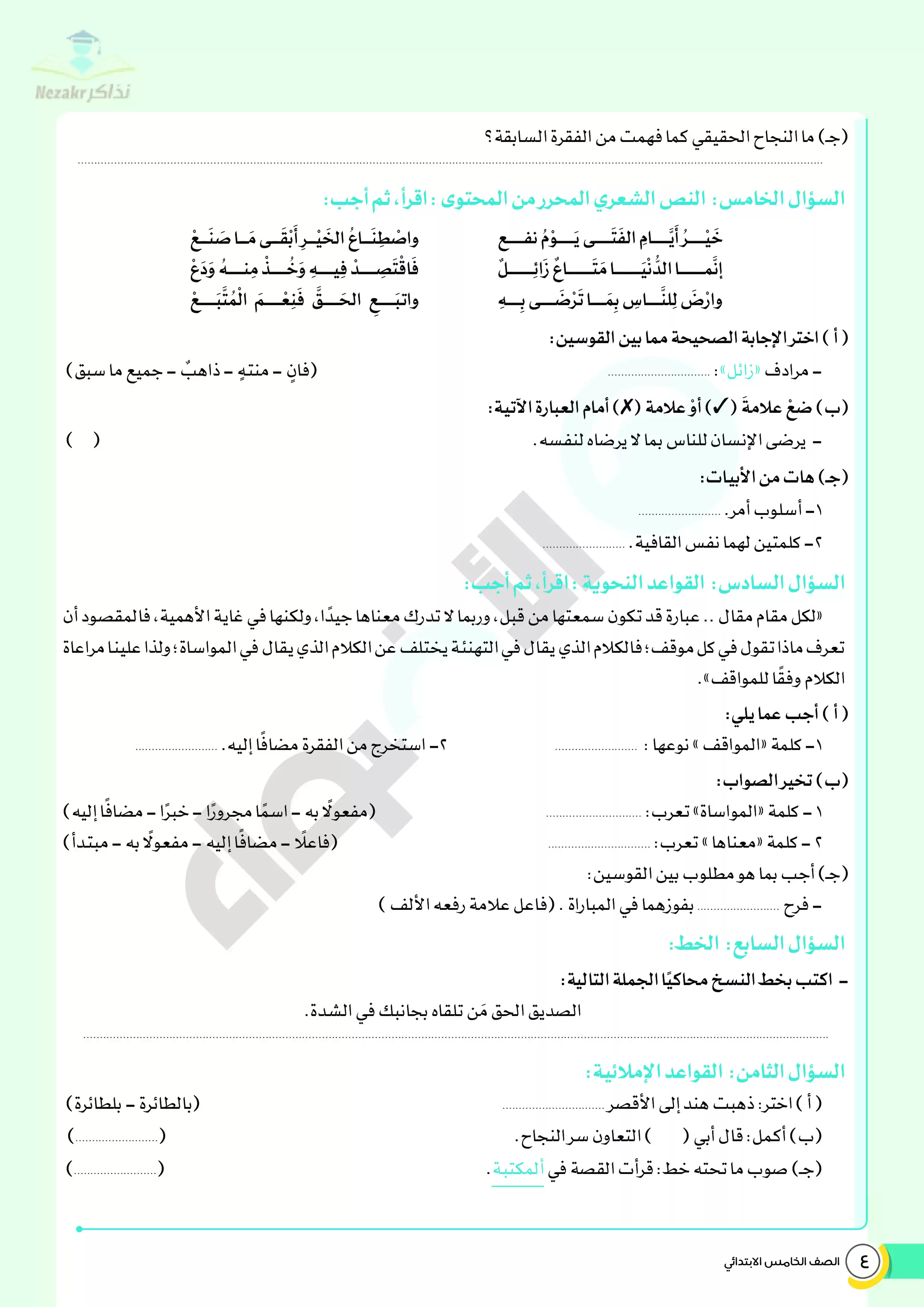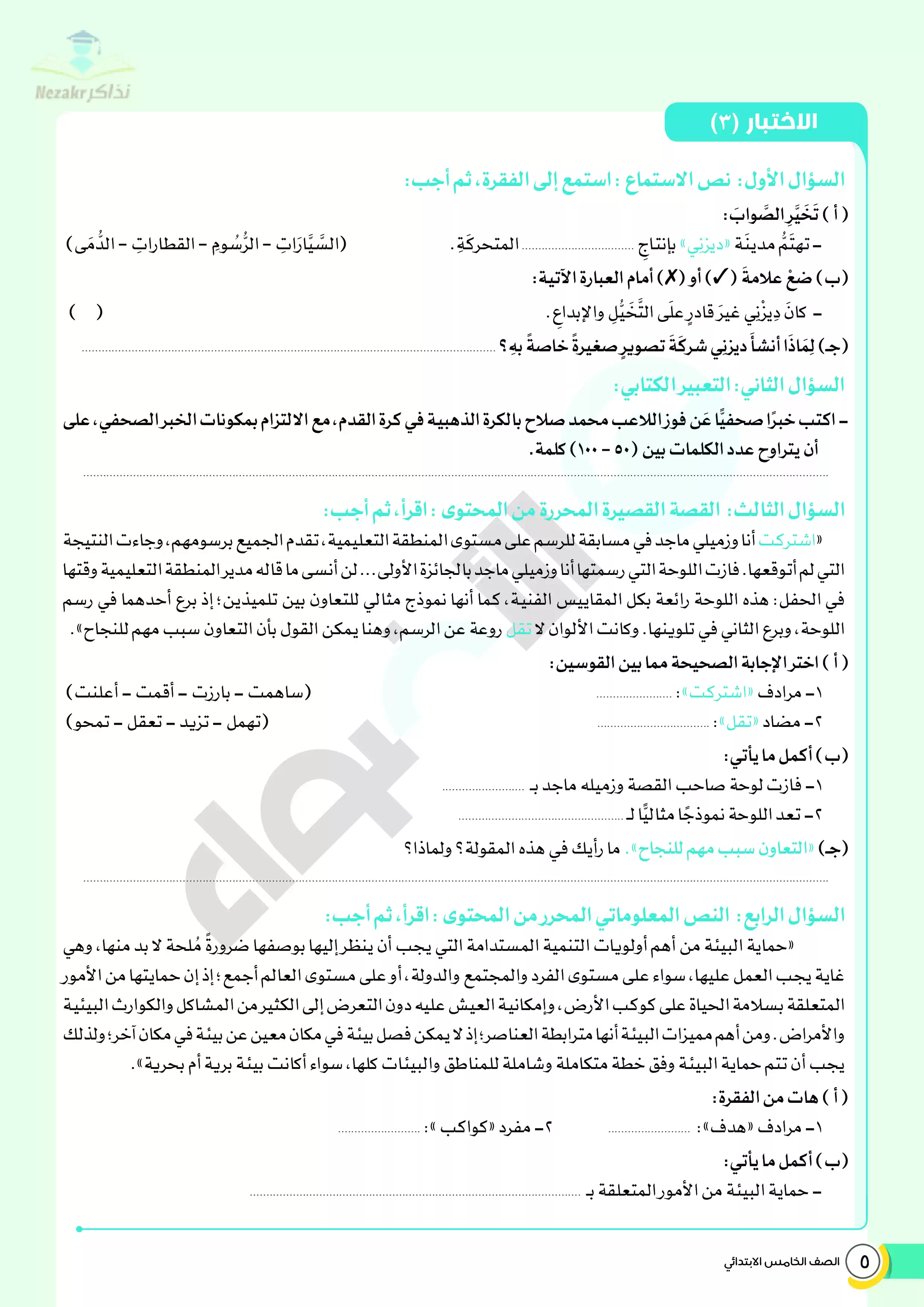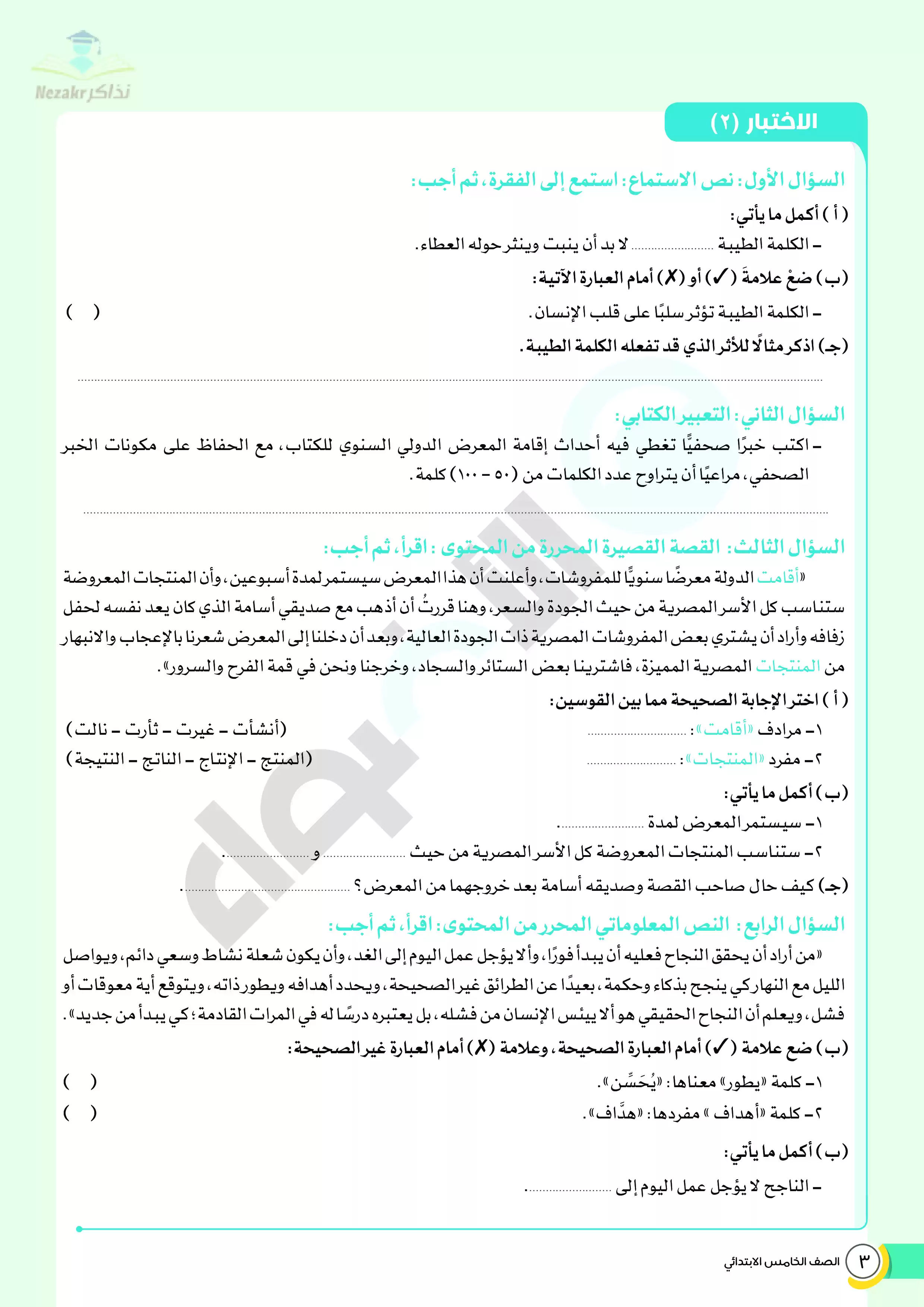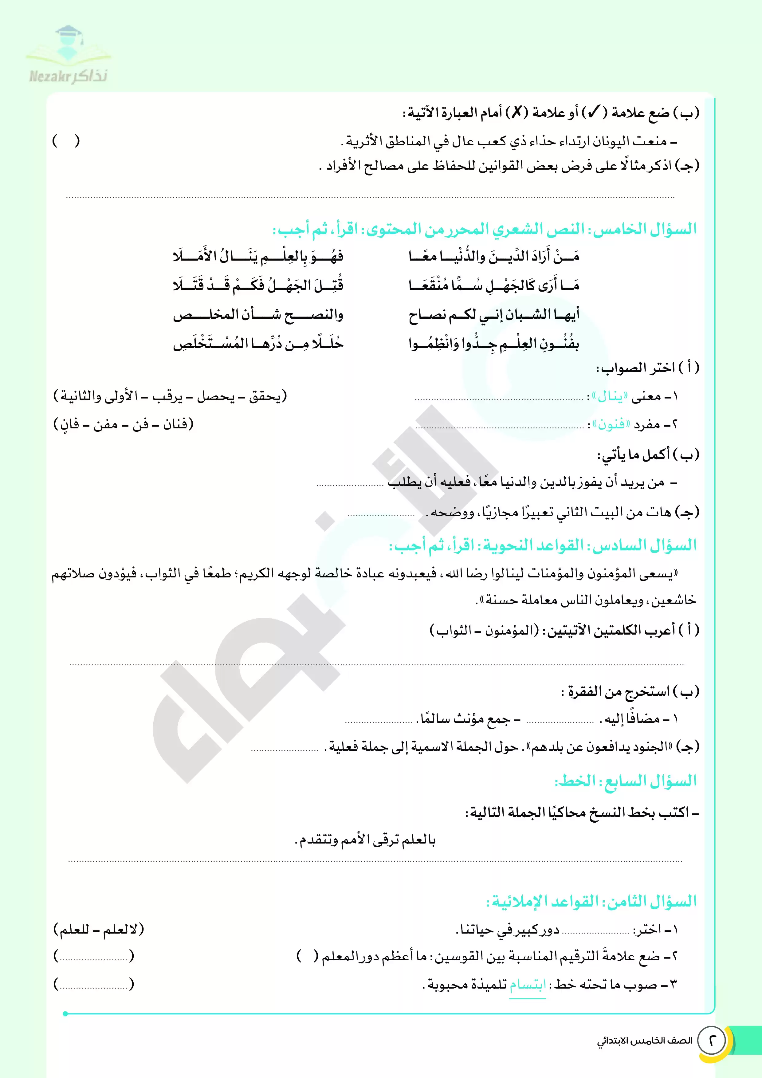 | بيانات الملف: (نماذج اختبارات ومراجعة الأضواء النهائية في مادة اللغة العربية للصف الخامس الابتدائي الترم الثاني - Nezakr) | |