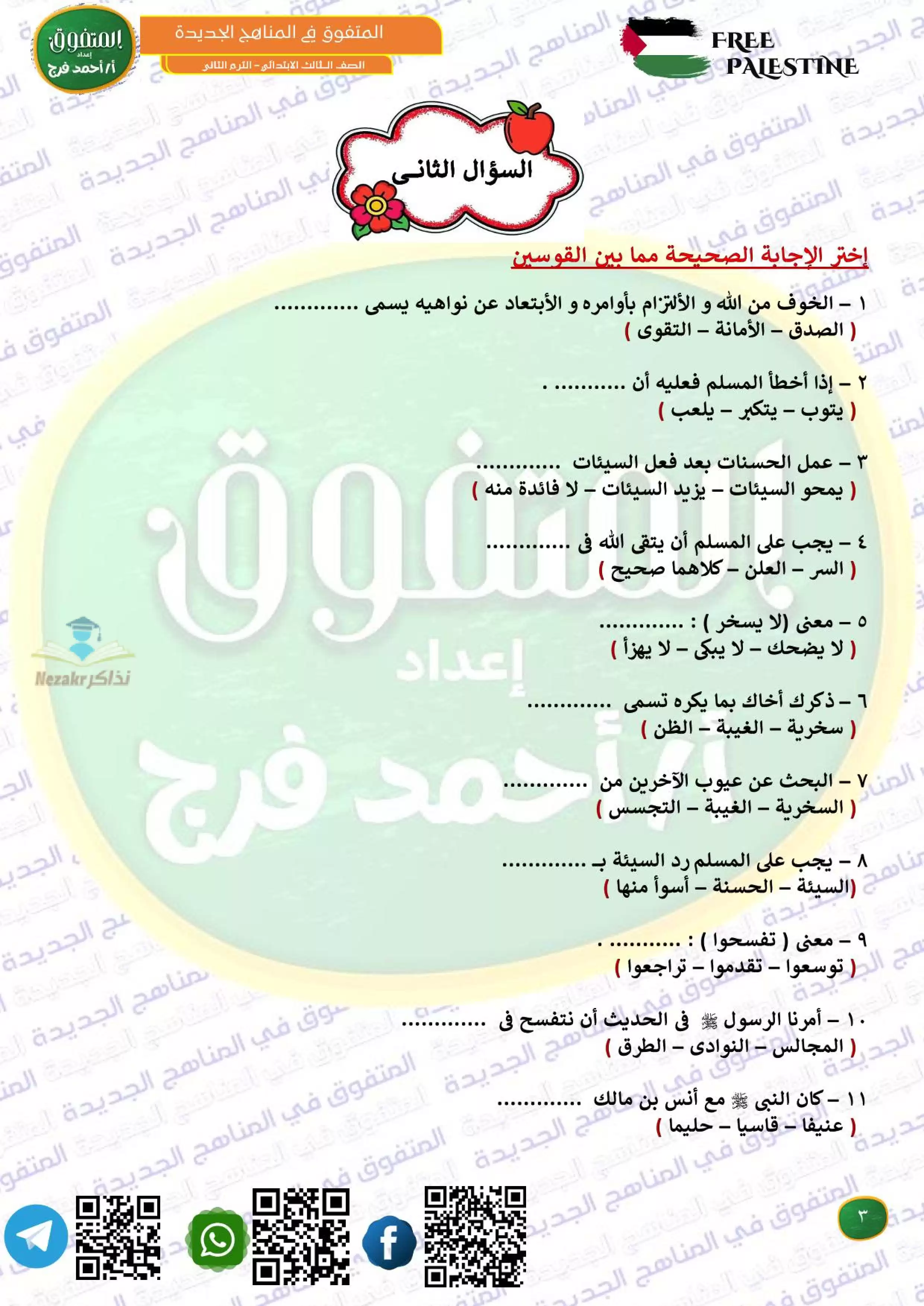 مراجعة المتفوق لشهر فبراير في الدين تالتة ابتدائي من إعداد مستر أحمد فرج - Nezakr