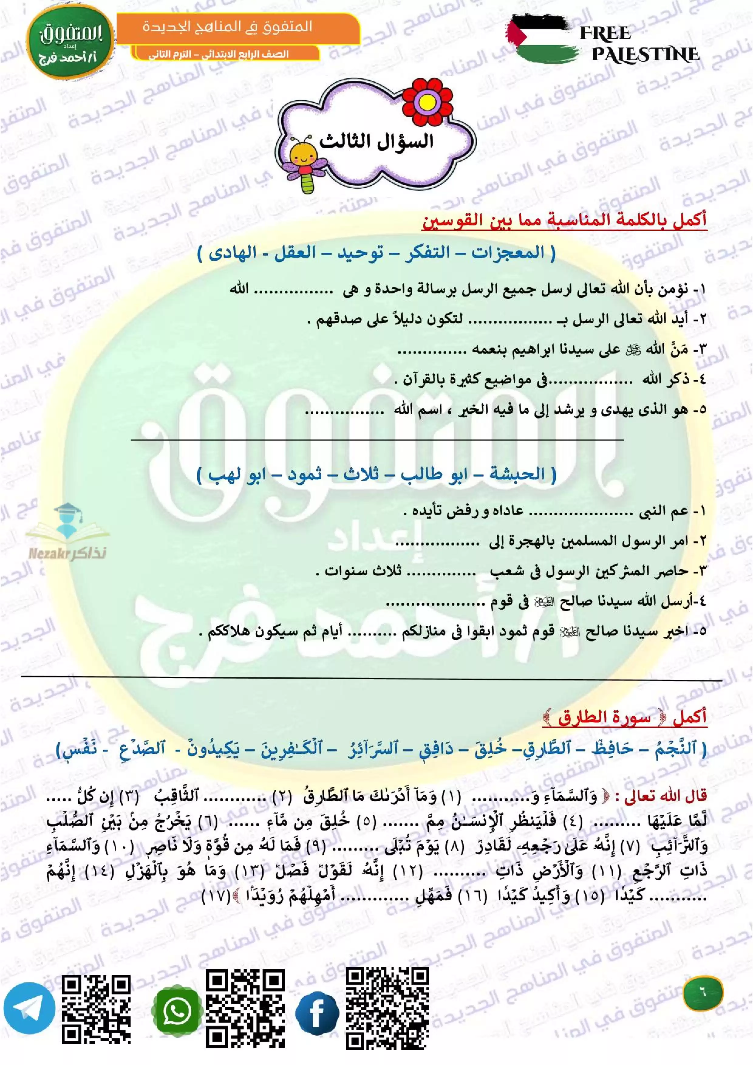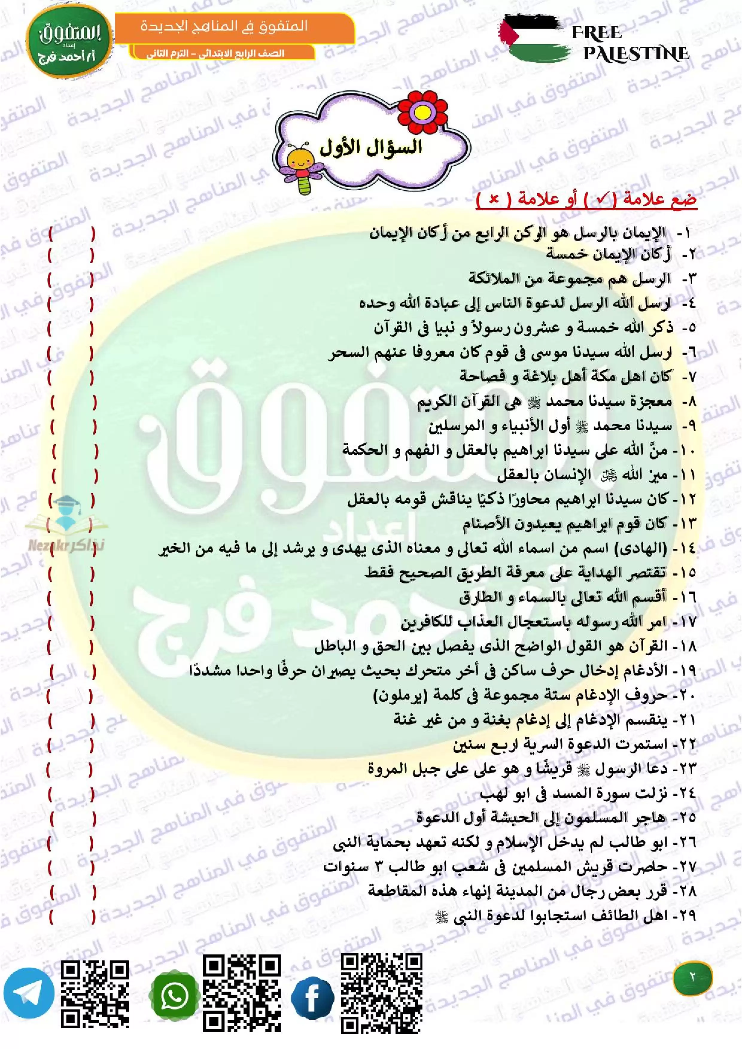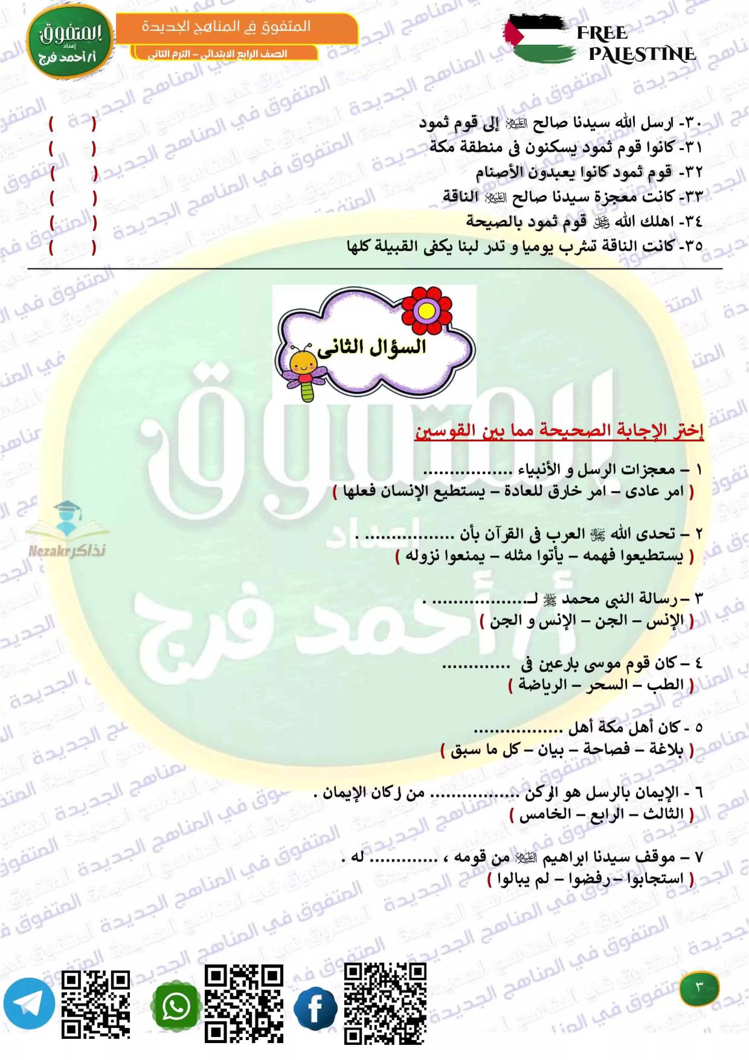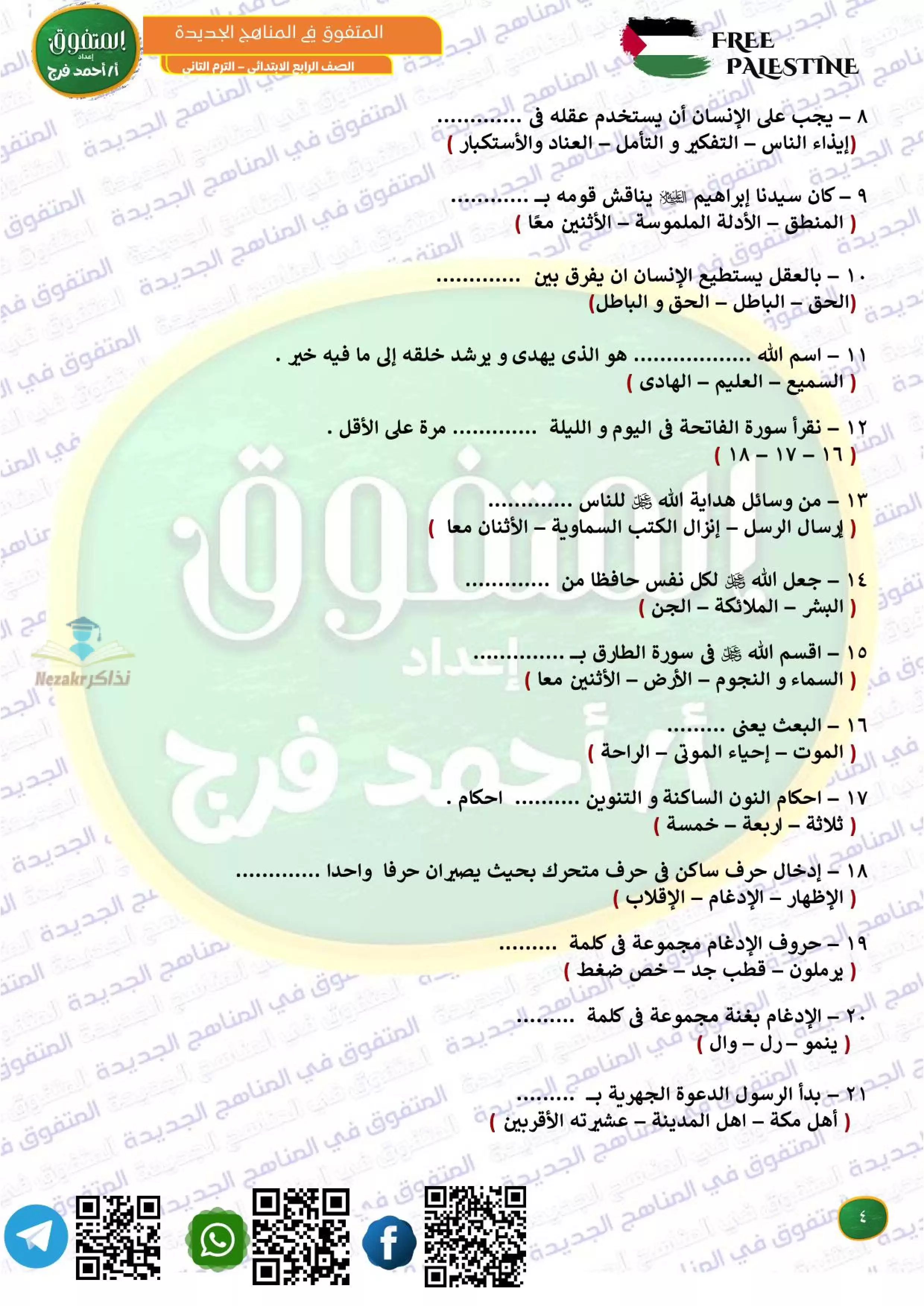 مراجعة المتفوق لشهر فبراير في الدين رابعه ابتدائي من إعداد مستر أحمد فرج - Nezakr