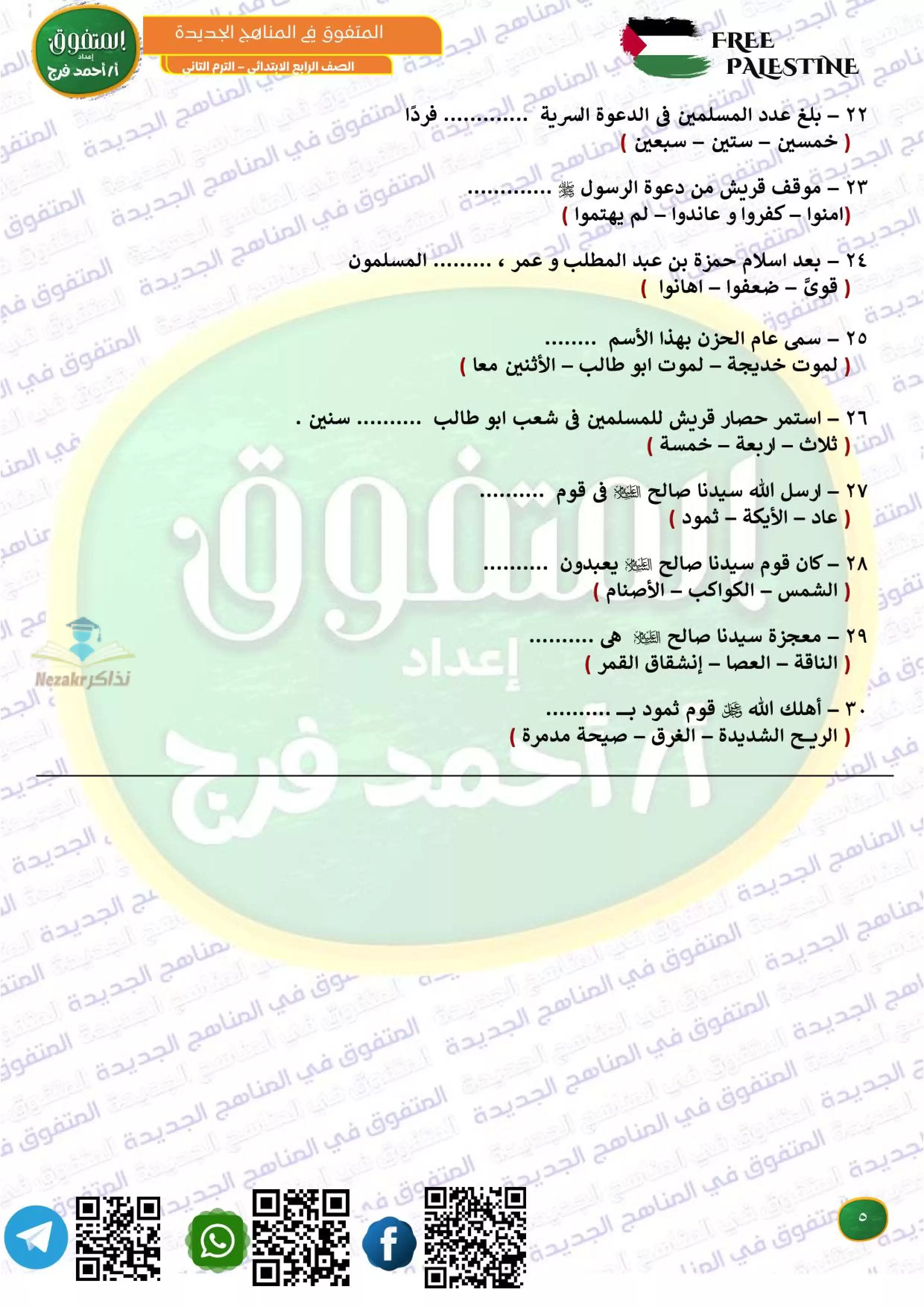 بيانات الملف: (مراجعة المتفوق لشهر فبراير في الدين رابعه ابتدائي من إعداد مستر أحمد فرج - Nezakr)