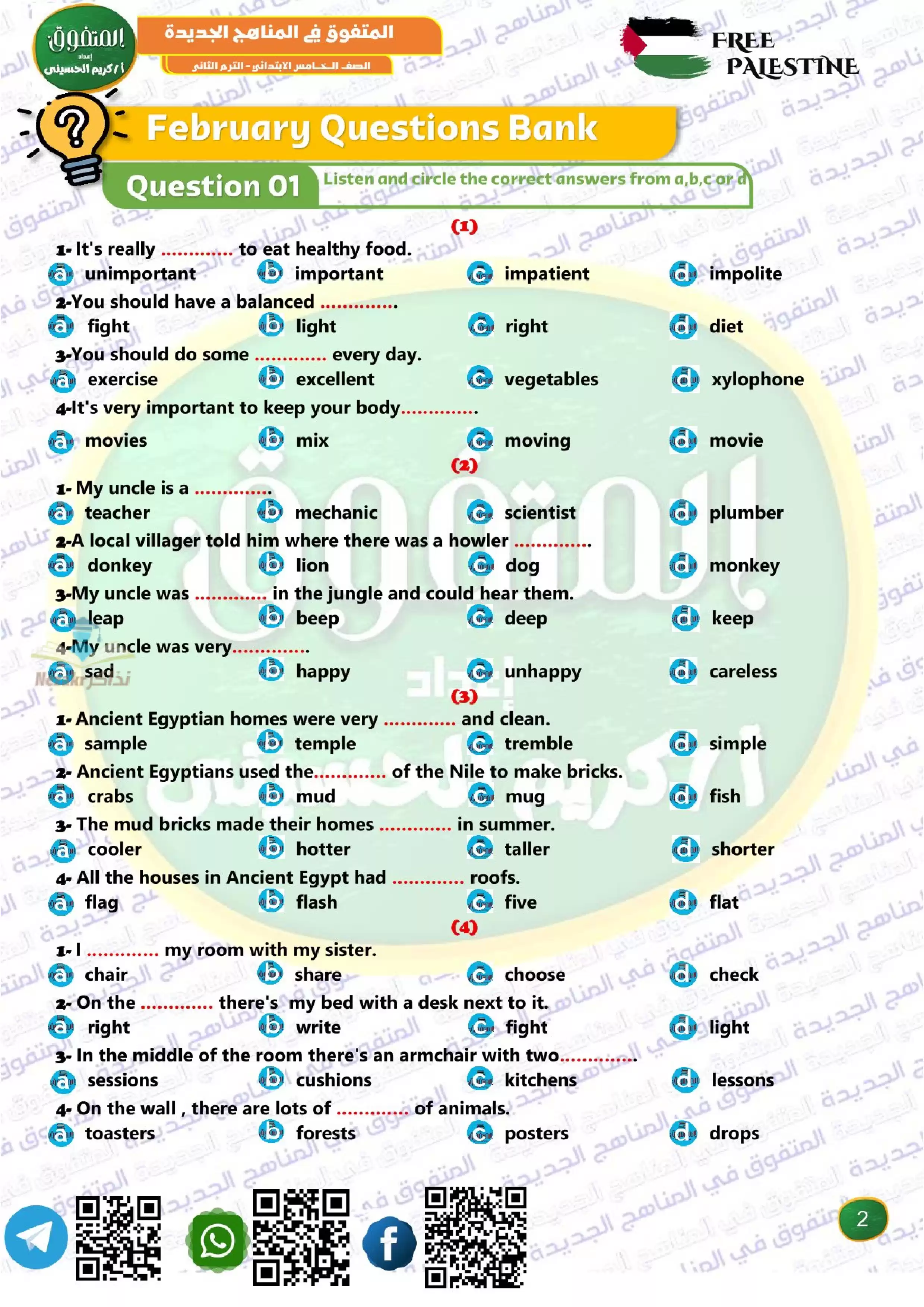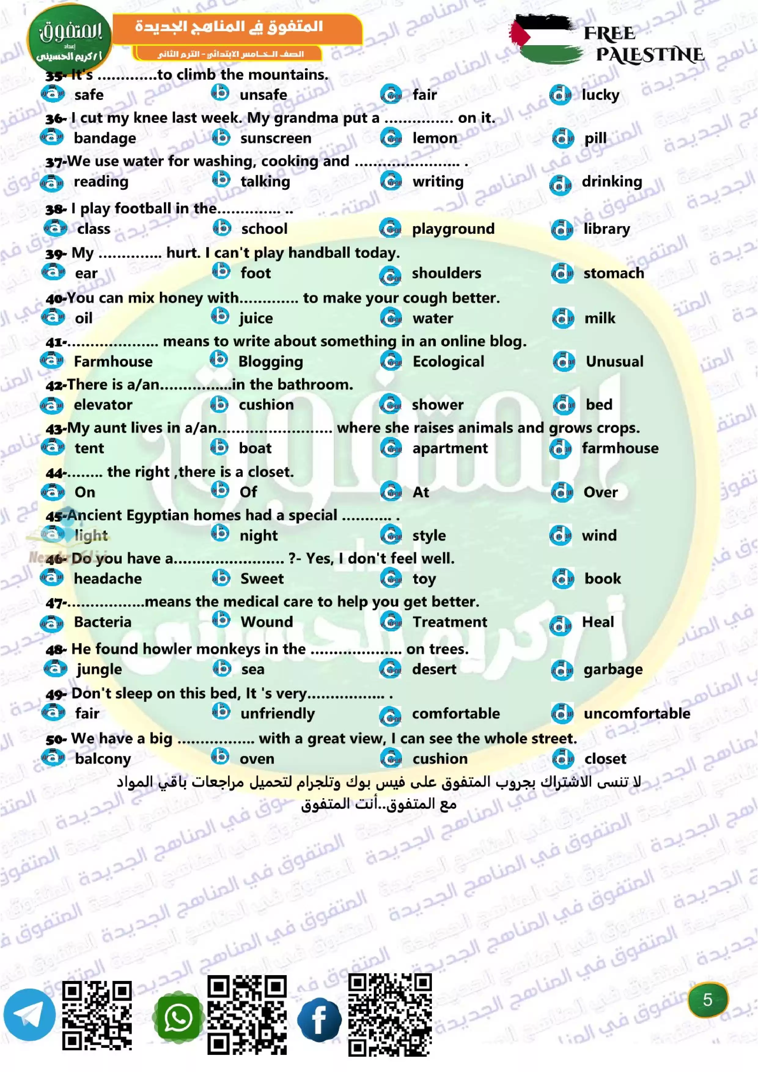 ملف المراجعة النهائية في الإنجليزي للصف الخامس الابتدائي ترم 2 مقرر فبراير من المتفوق من إعداد: مستر كريم الحسيني.