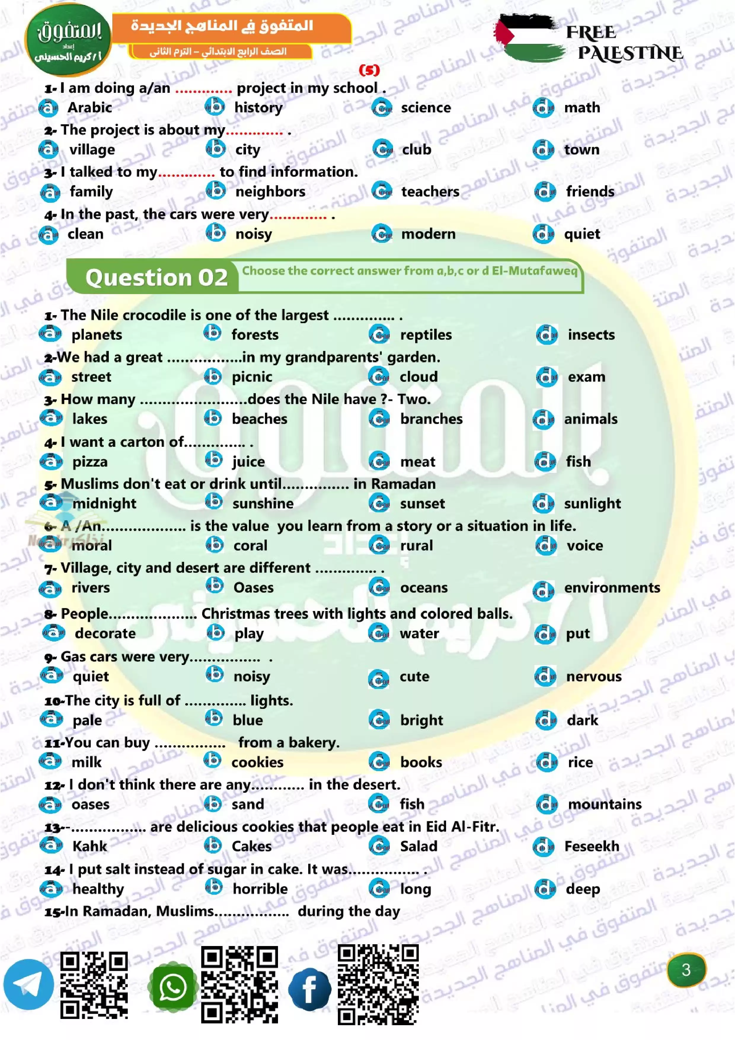 ملف المراجعة النهائية في الإنجليزي للصف الرابع الابتدائي ترم 2 مقرر فبراير من المتفوق من إعداد: مستر كريم الحسيني.