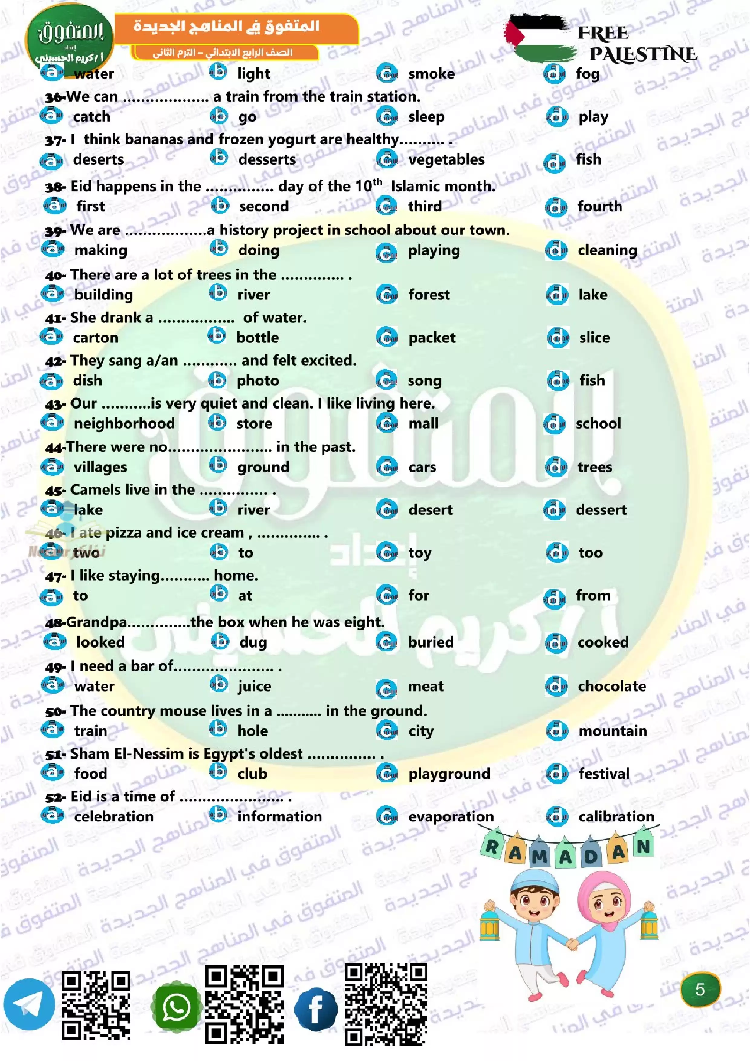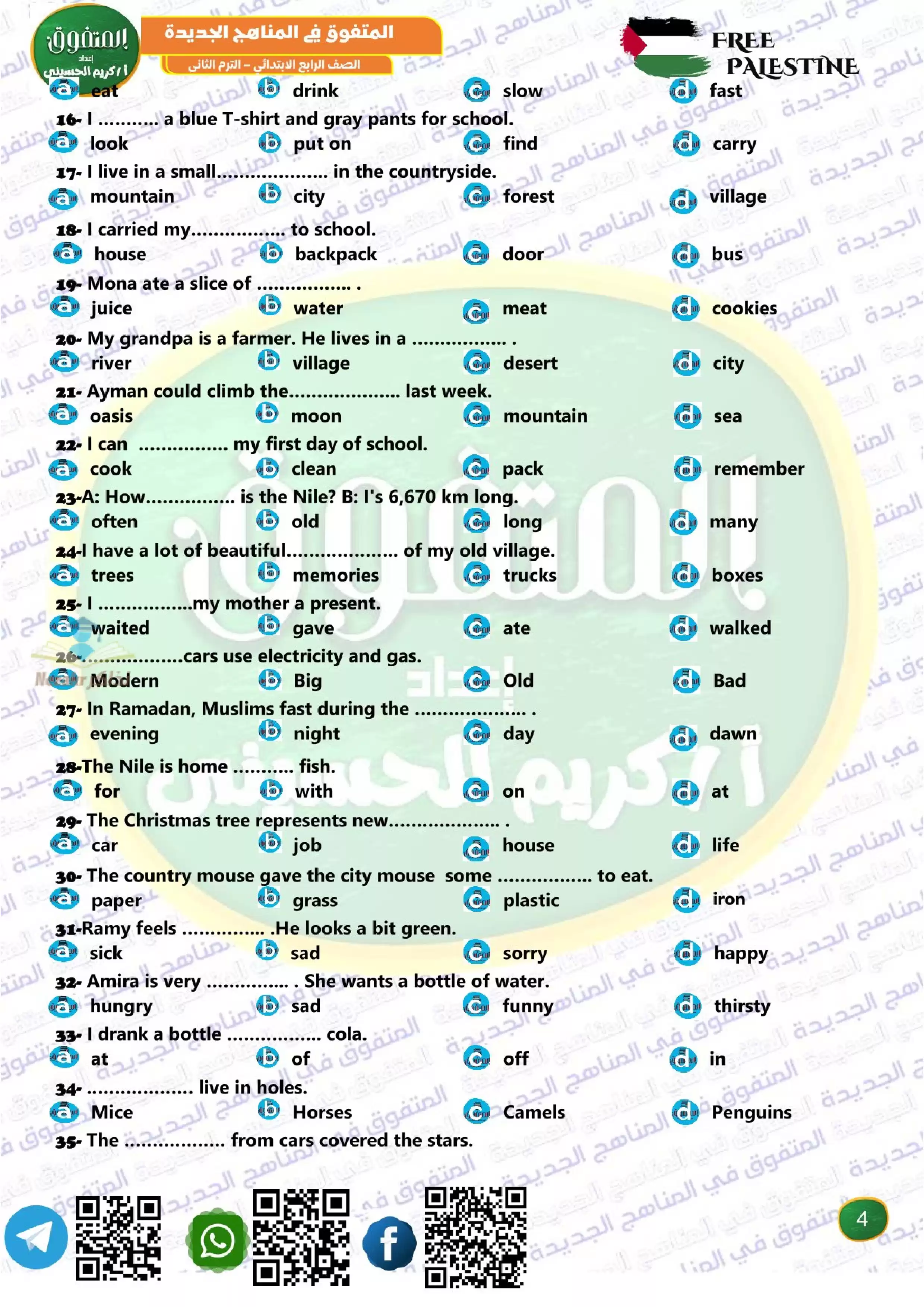 الصف الرابع الإبتدائي > اللغة الإنجليزية > بالاجابات .. مراجعة شهر فبراير من المتفوق في اللغة الإنجليزية كونكت 4 لرابعه ابتدائي الترم الثاني 2025 بصيغة PDF