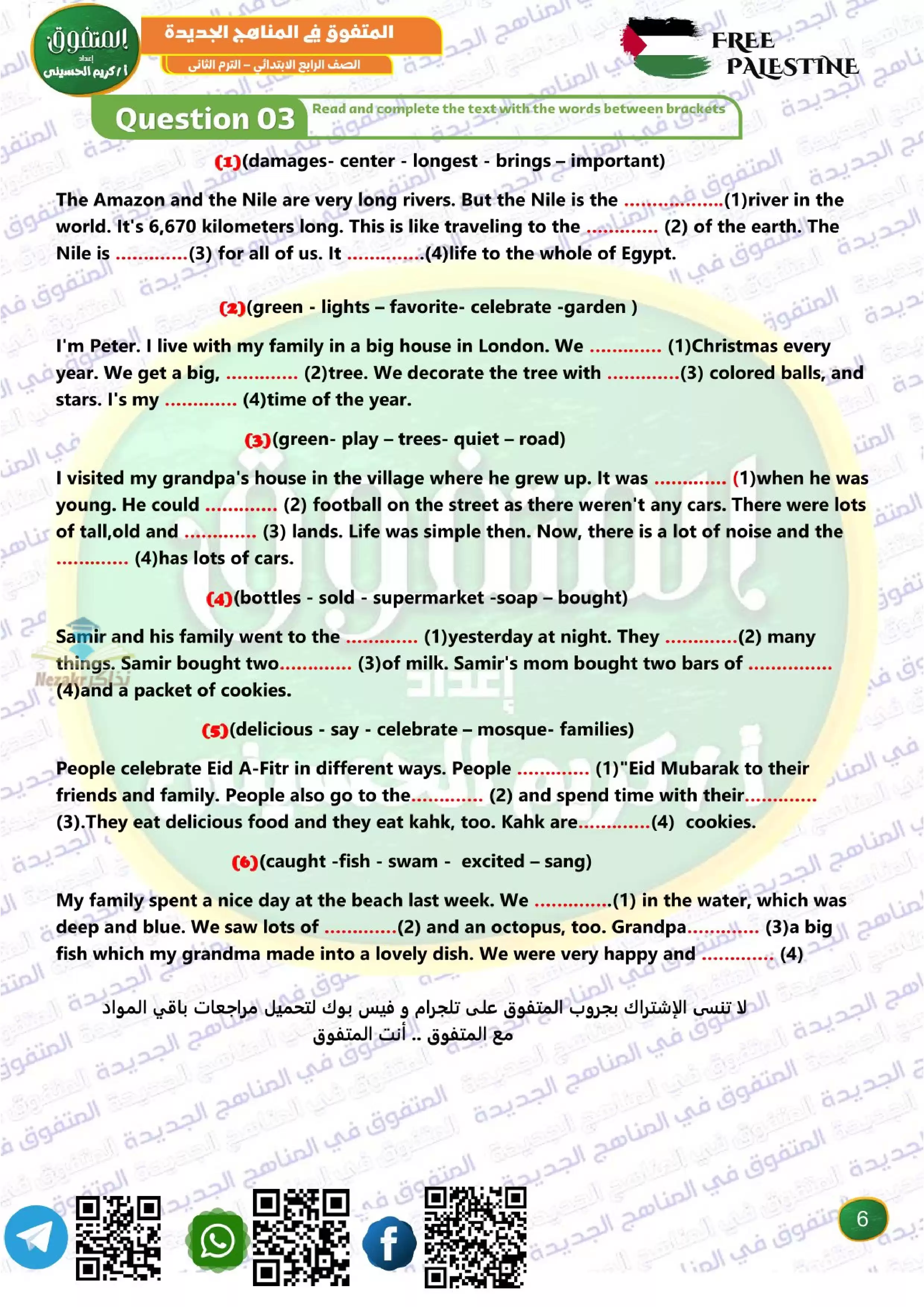 صفحة 6 من 18 صفحة من ملف: مراجعة المتفوق لشهر فبراير في اللغة الإنجليزية (Cennect 4) لرابعة ابتدائي من إعداد مستر كريم الحسيني - Nezakr