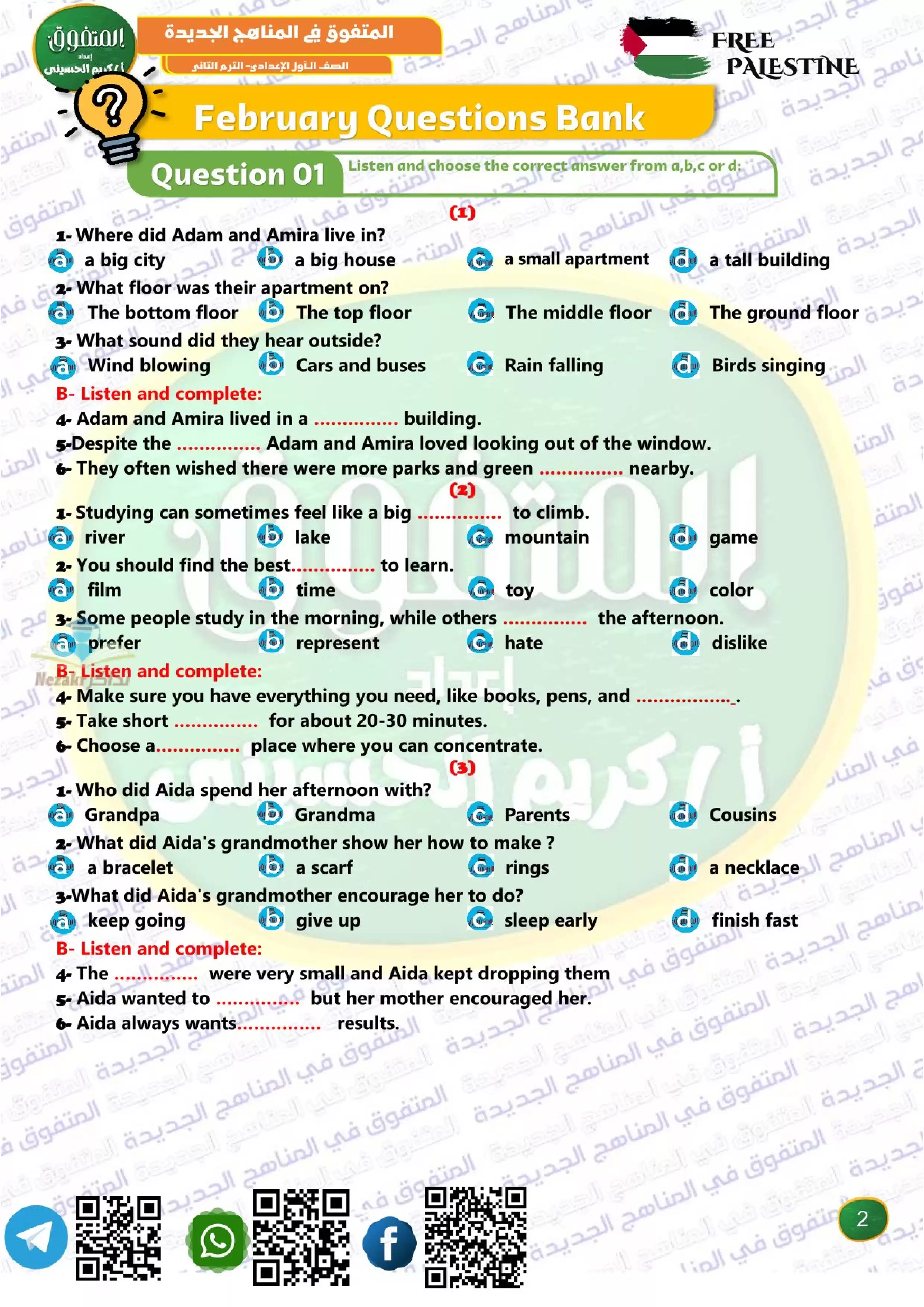محتوى ملف المتفوق في اللغة الإنجليزية مراجعة نهائية للصف الاول الاعدادي الترم الثاني مقرر شهر فبراير