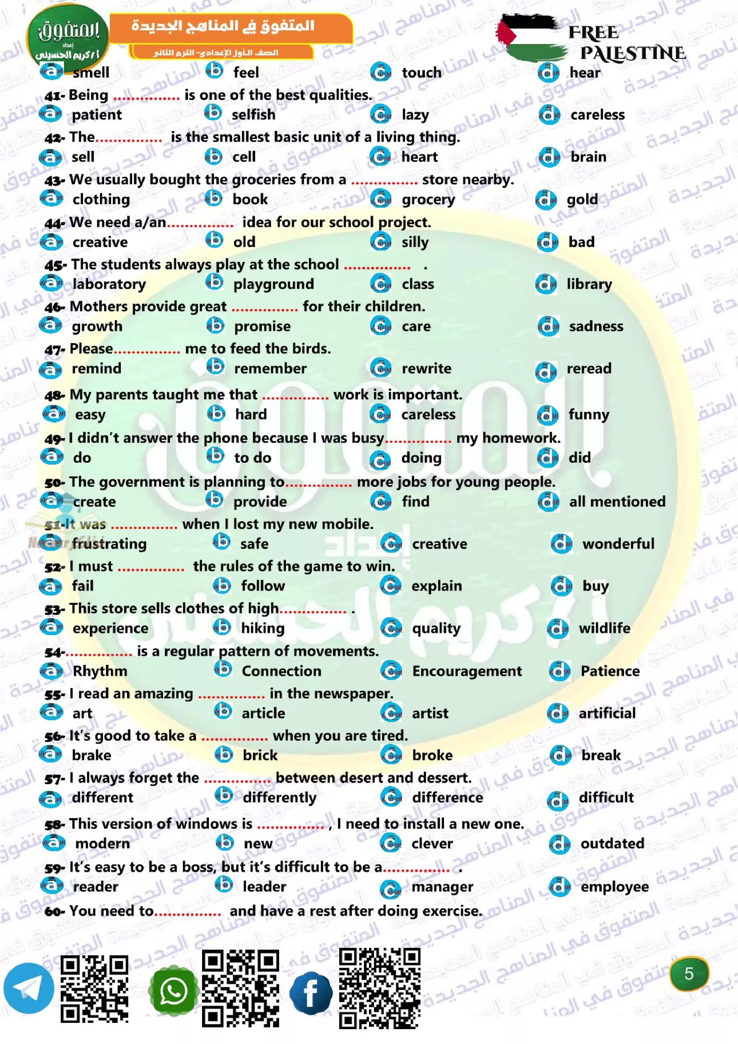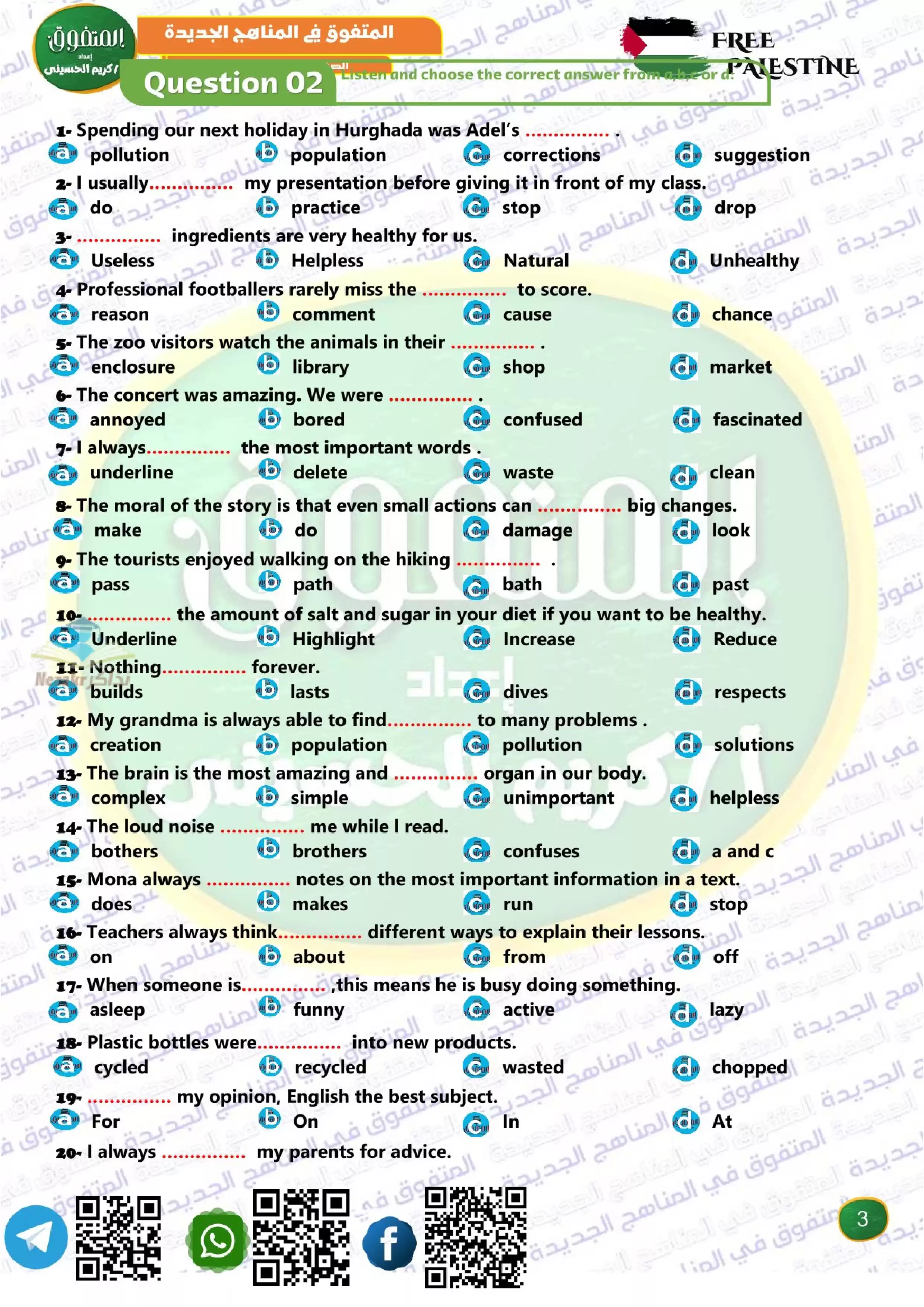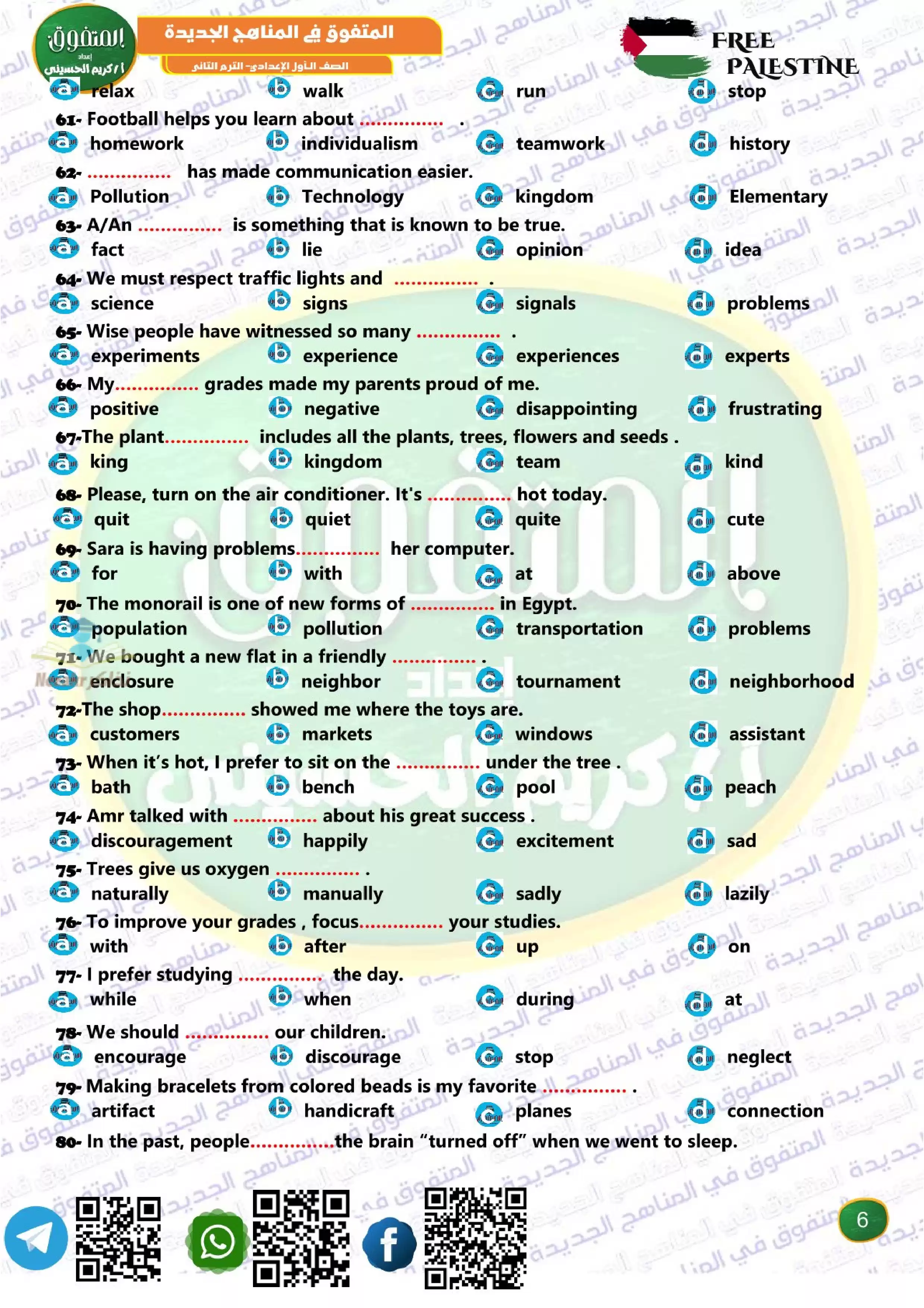 الصف الأول الإعدادي > اللغة الإنجليزية > بالاجابات .. مراجعة شهر فبراير من المتفوق في اللغة الإنجليزية نيو هالو لأولى اعدادي الترم الثاني 2025 بصيغة PDF